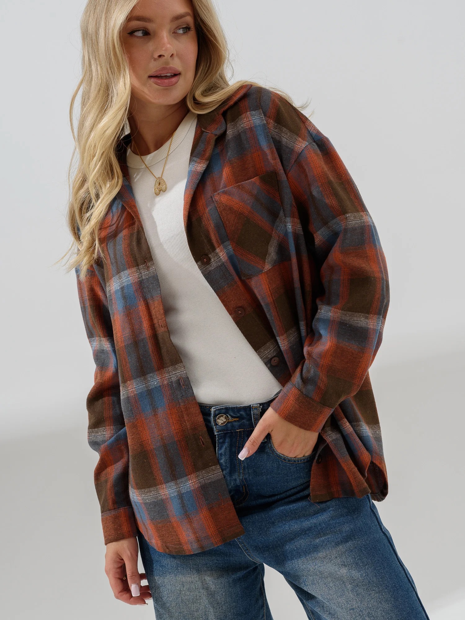 Женская рубашка "Имидж" 2288-Ф / Оранжевый с длинными рукавами, на пуговицах. Женская рубашка отшивается из теплой фланели.