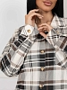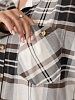 Женская рубашка из хлопка в клетку, с отложным воротником, втачным рукавом со шлицей и манжетой на пуговице, на полочке накладной карман. Манжета и карманы раскроены под 45 градусов. Трендовая рубашка дополнена декоративными костяными пуговицами.