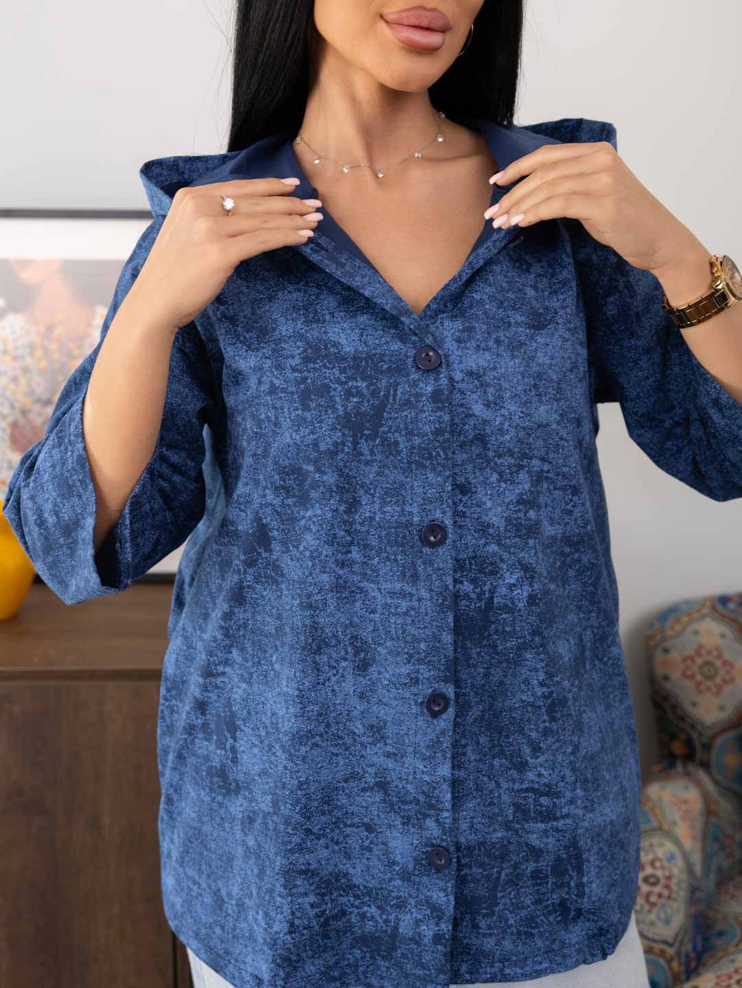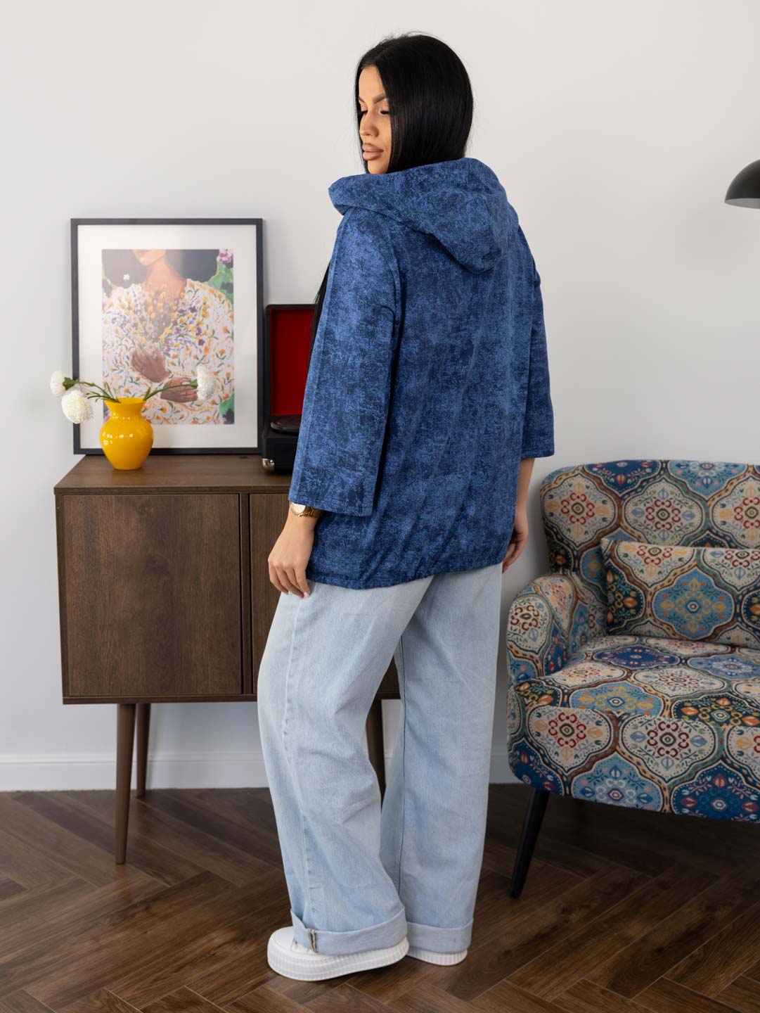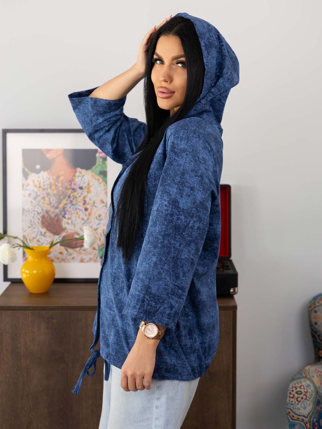 Рубашка с капюшоном из 100% хлопка на пуговицах и кулиске, с рукавом 3/4. Туника выполнена из набивной кулирки турецкого качества. Рост модели 165см.