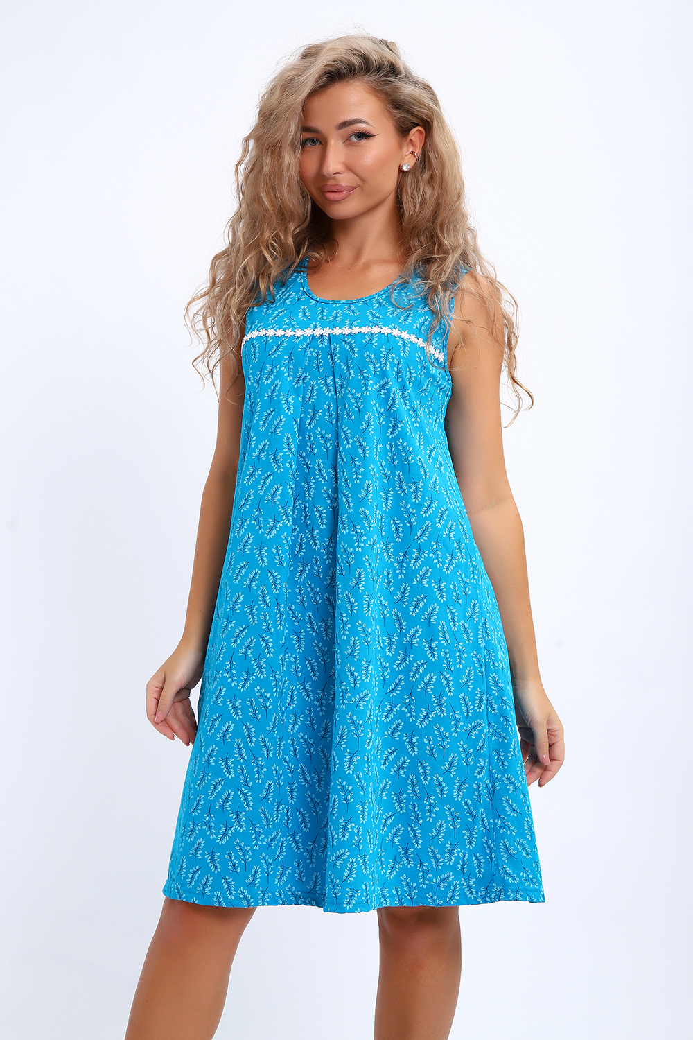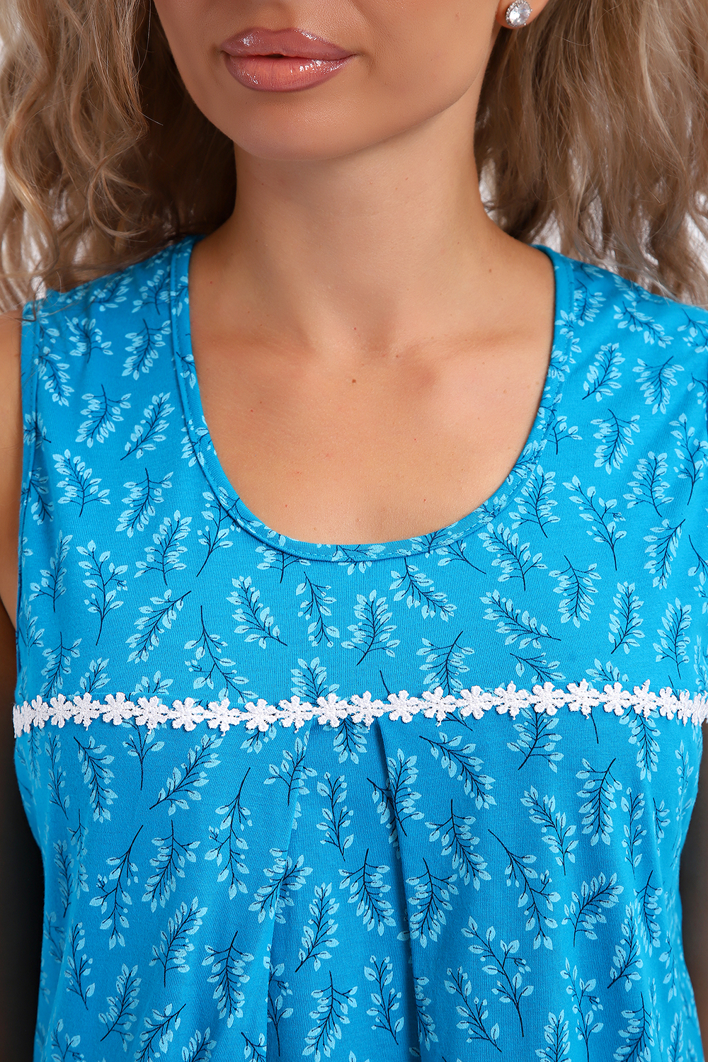 Сорочка маечного фасона с кокеткой. По кокетке нашиты декоративные ромашки. Юбка под кокеткой со встречной складкой. Подходит для беременных.