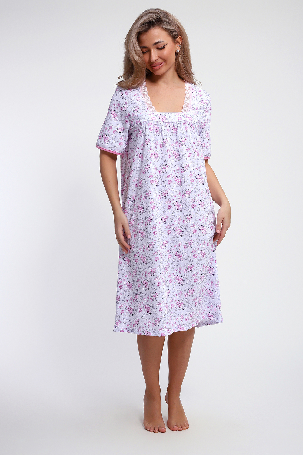 Сорочка хлопковая кулирка, белоземелька, декорирована эластичным кружевом по горловине.