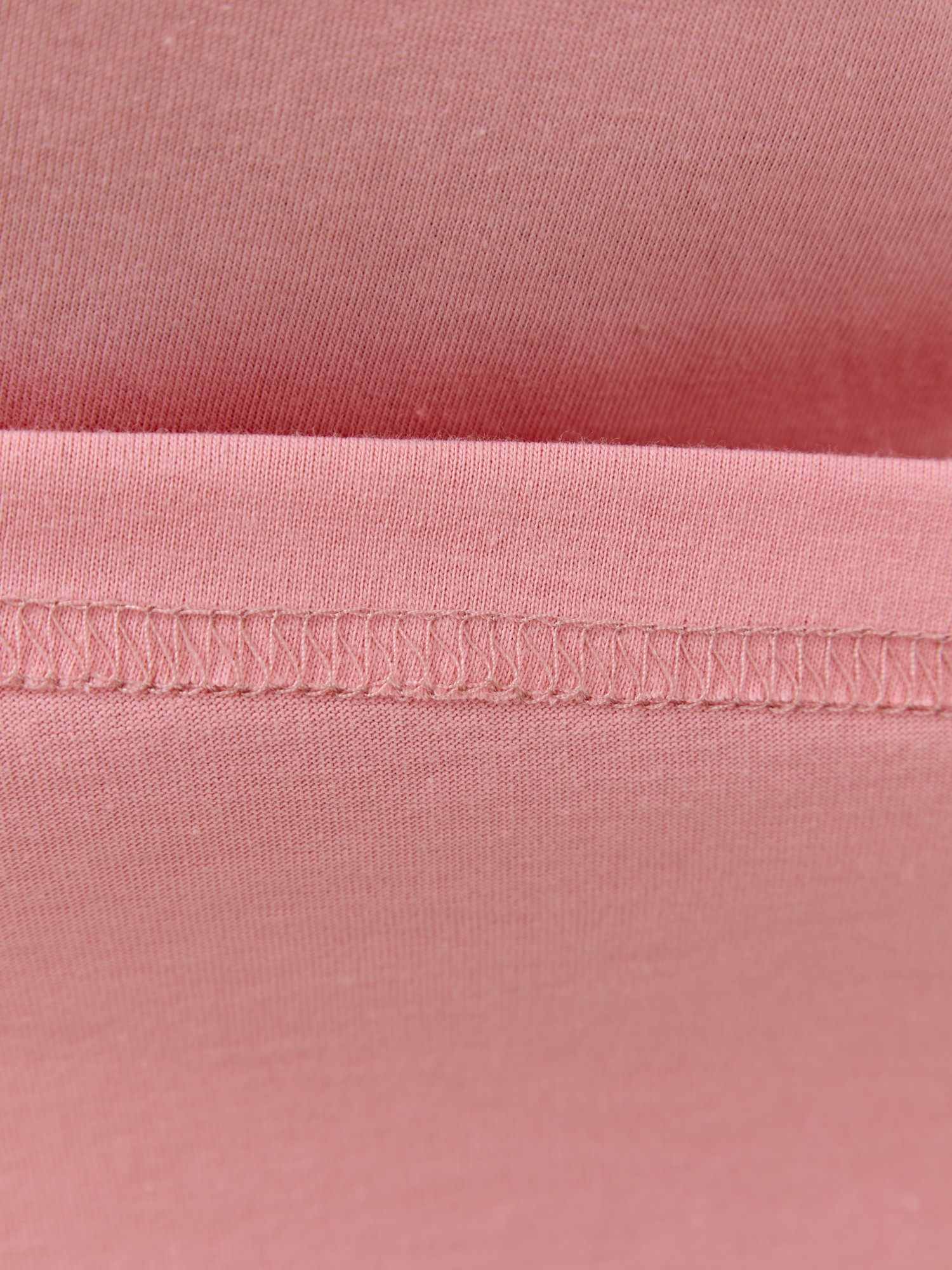 Сорочка женская из гладкокрашеного трикотажного полотна «кулирка», слегка расширенная книзу, без рукавов, с горловиной V-образной формы, окантованной основным материалом. Проймы и горловина обработаны декоративной строчкой «кроше».