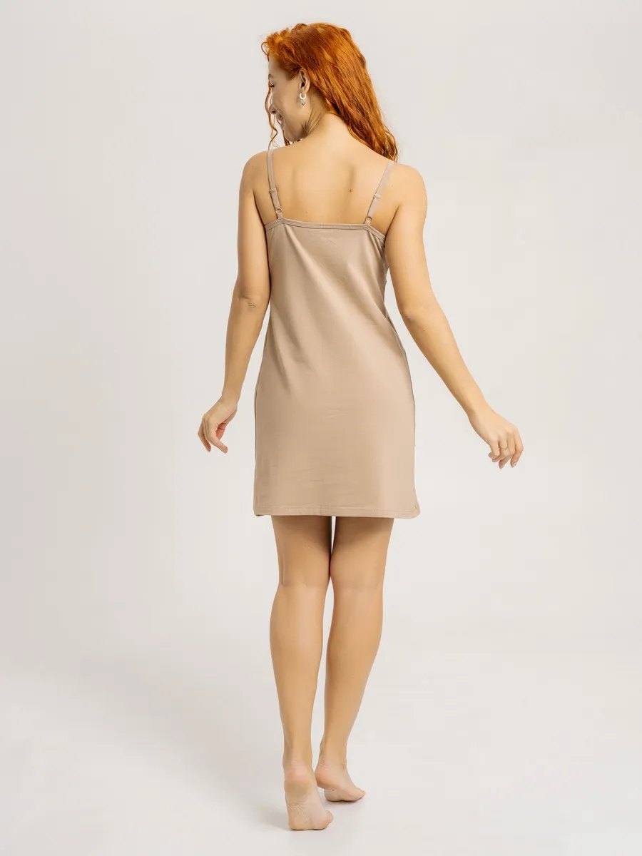 Сорочка из однотонной хлопковой ткани на бретелях из декоративной резинки с регуляторами. Оптимальная длина изделия, при которой будет максимально комфортно. Невероятно привлекательно смотрится декоративная отделка кружевом. Такая сорочка ни в коем случае не останется без внимания. Она прекрасно подойдёт и для женщин находящихся в положении, так как верх изделия разработан для максимального комфорта во время кормления грудью.