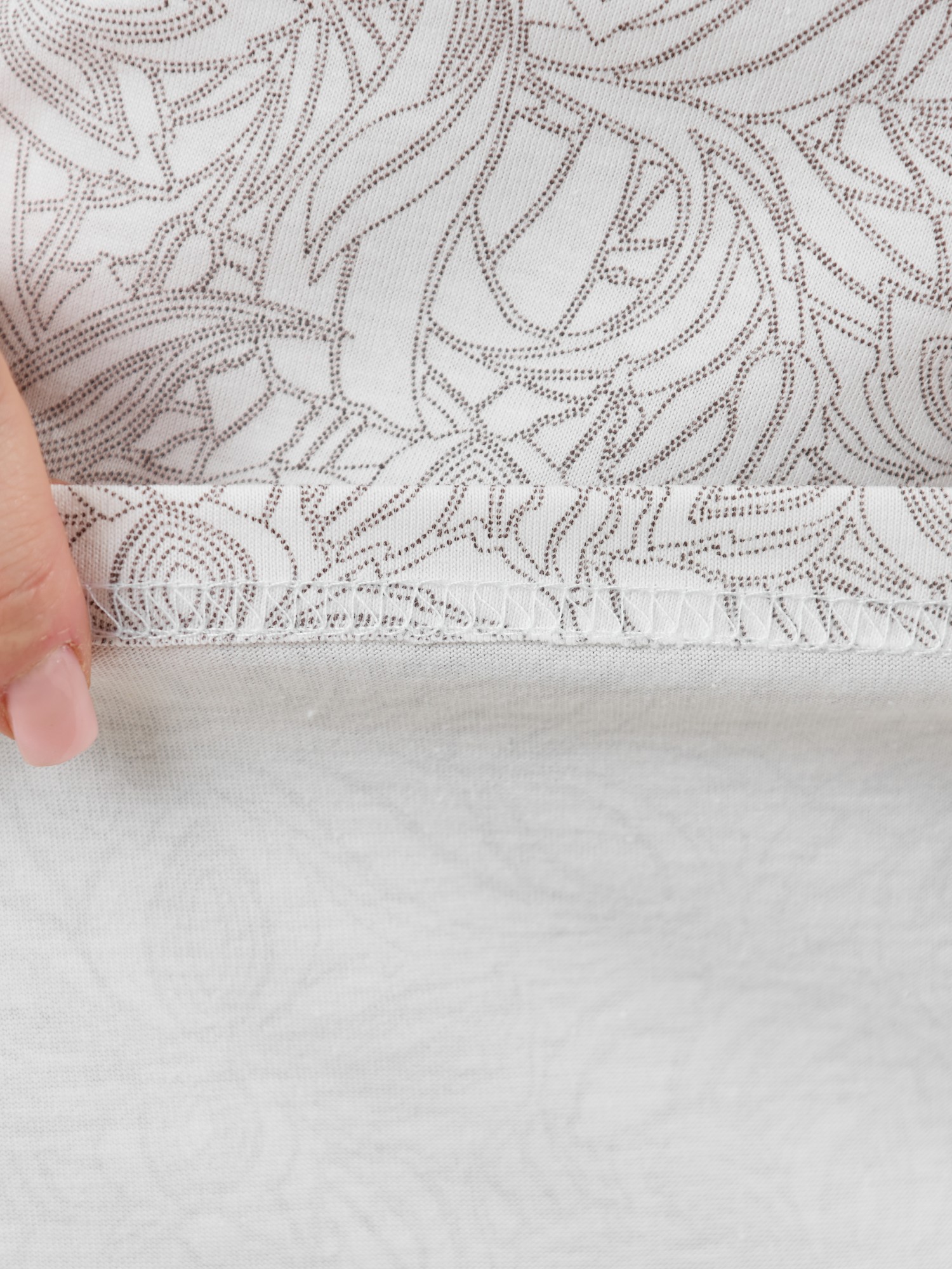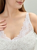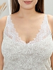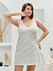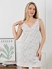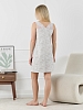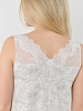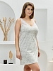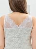Сорочка из трикотажного полотна «кулирка», без рукавов, слегка расширенная книзу. Кружевные детали-кокетки на полочке и спинке образуют V-образные вырезы горловины спереди и сзади. Кружевные детали кокеток соединены с основным окантовочным швом. Проймы – окантованы.