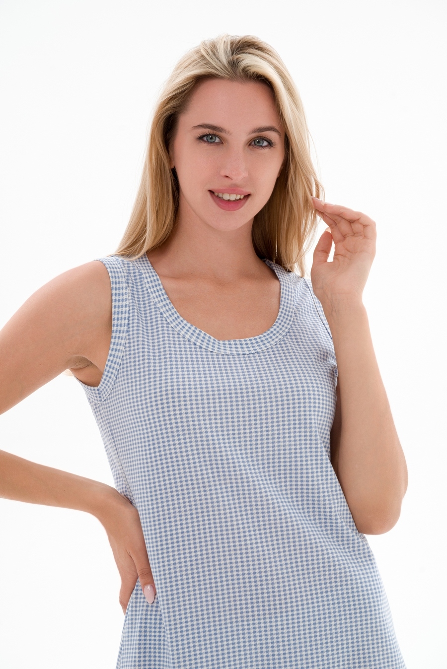 Женская сорочка без рукавов из кулирки — это модель домашней одежды, изготовленная из тонкого трикотажного полотна, которое состоит из 100% хлопка. Кулирка хорошо тянется, пропускает воздух и не вызывает аллергии. Такие сорочки подходят для сна и отдыха.
