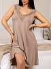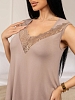 Ночная сорочка А-силуэта из вискозы, с V-образным вырезом украшенная кружевом, пройма и горловина сзади обработаны окантовкой с 1 иглу.