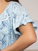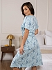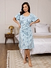 Ночная женская сорочка из набивной кулирки, с отделкой по кокетке из хлопкового кружева, рукавом реглан, длиной чуть ниже колена. Рост модели 165.