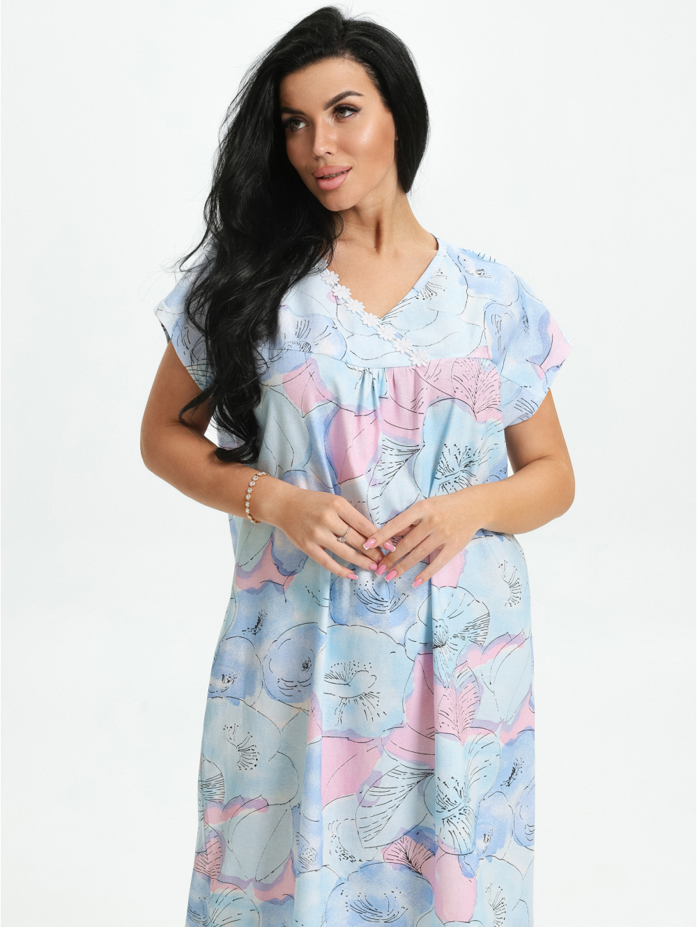 Сорочка ПЫШЕЧКА выполнена в свободном и классическом стиле. Модель комфортна и эстетична, прекрасно подойдет для красивых женщин с пышными формами. Сорочка с кокеткой на полочке и V-образным вырезом, который подойдет девушкам с любым типом фигуры, потому что он визуально вытягивает линию шеи. Наша сорочка обеспечит Вам комфорт во время сна. Данная модель имеет размерный ряд до 74 размера.