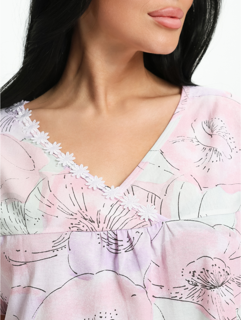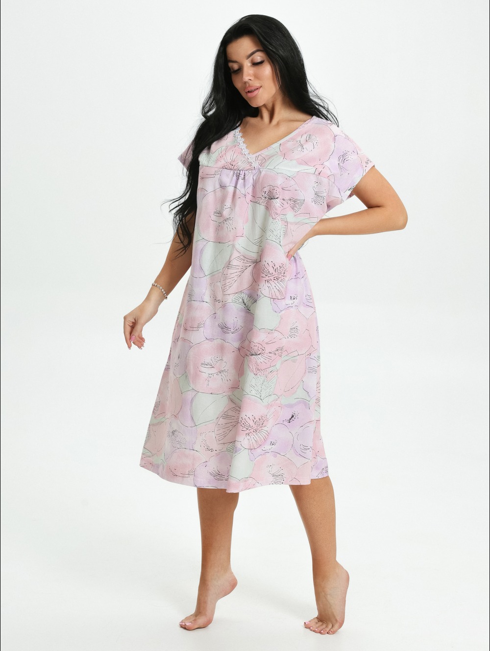 Сорочка ПЫШЕЧКА выполнена в свободном и классическом стиле. Модель комфортна и эстетична, прекрасно подойдет для красивых женщин с пышными формами. Сорочка с кокеткой на полочке и V-образным вырезом, который подойдет девушкам с любым типом фигуры, потому что он визуально вытягивает линию шеи. Наша сорочка обеспечит Вам комфорт во время сна. Данная модель имеет размерный ряд до 74 размера.