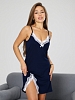 Женская ночная сорочка из плотной вискозы, бретели регулируемые. Разрез и линия декольте декорированы кружевом и бантиками