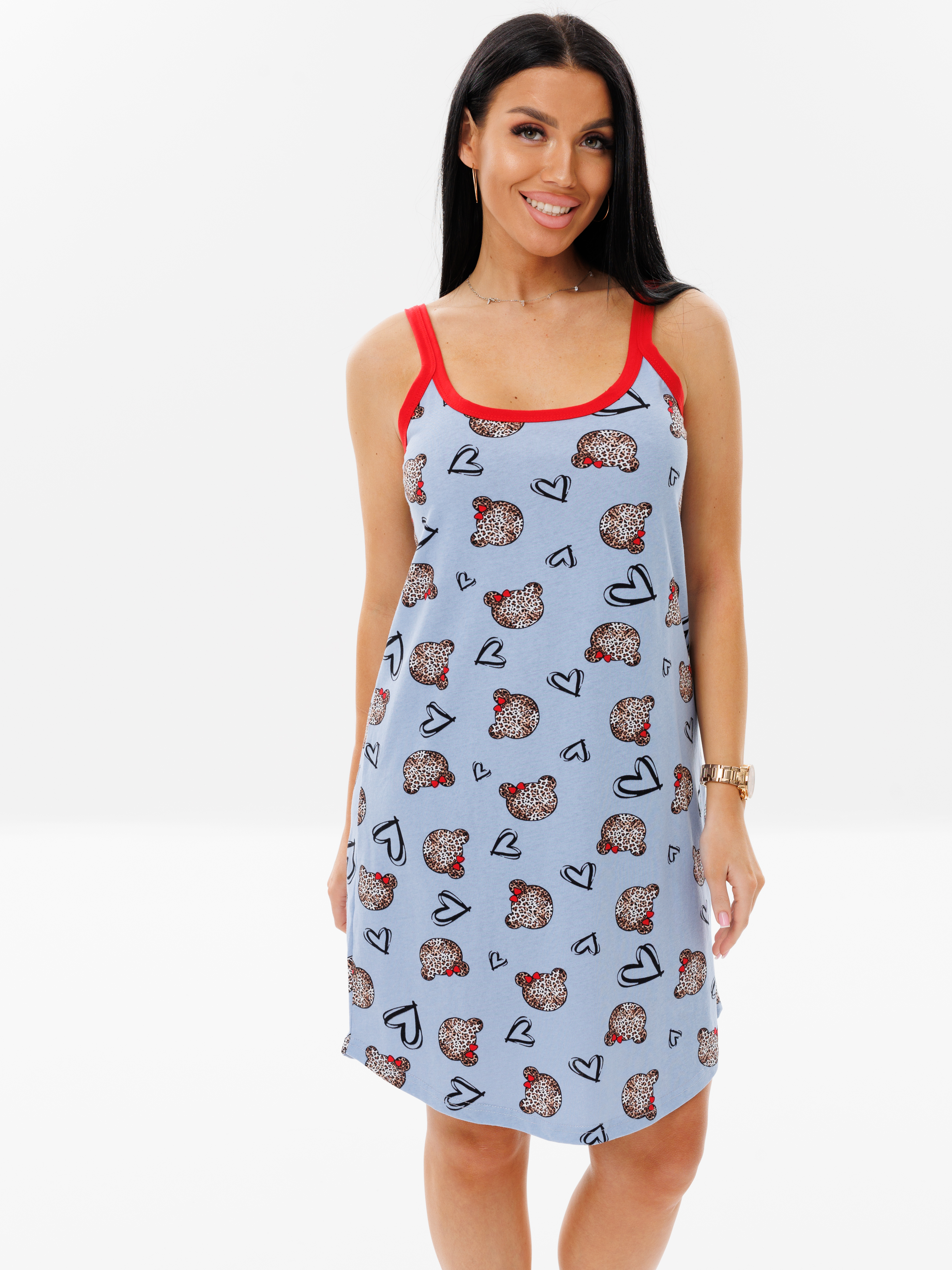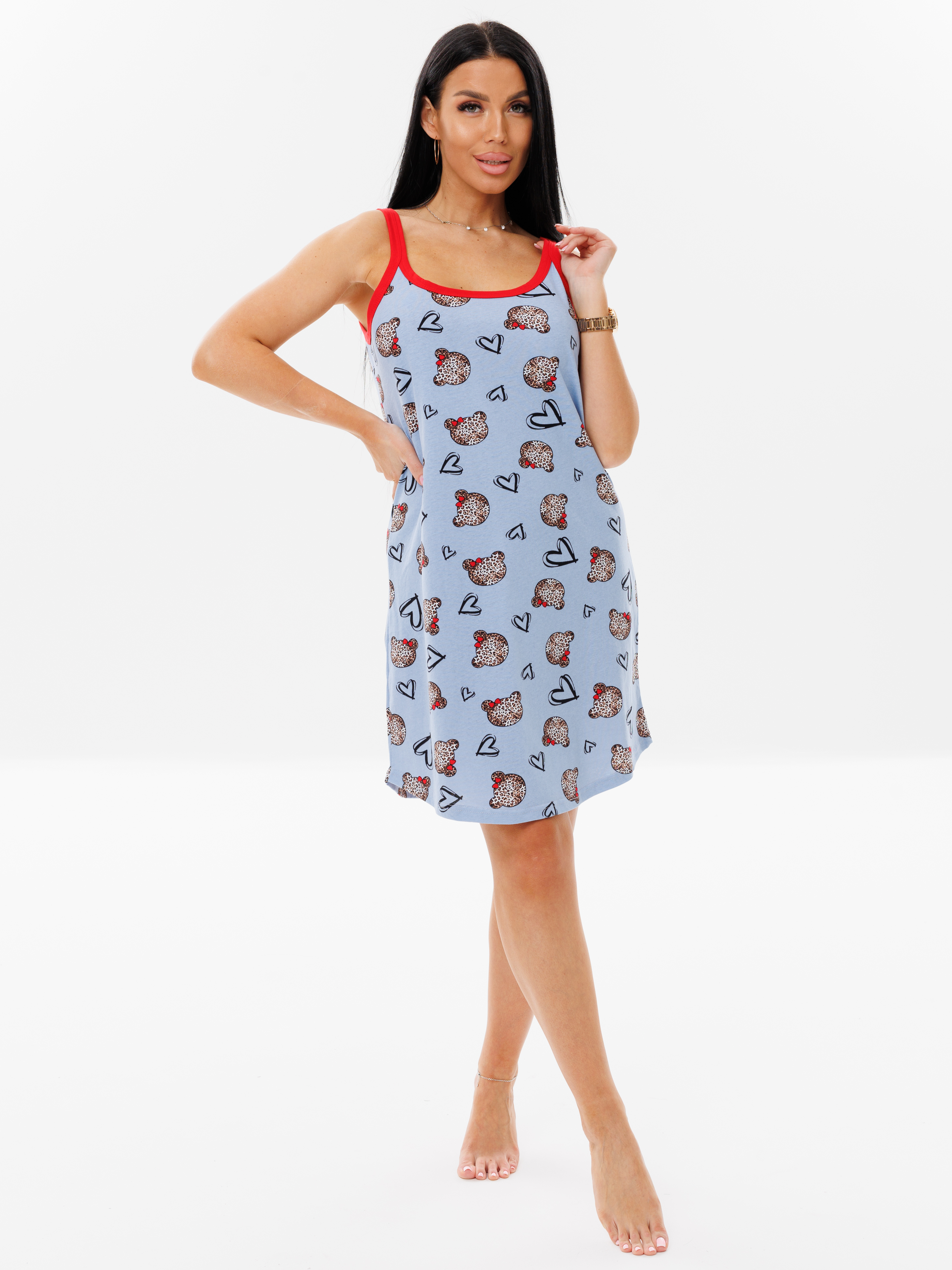 Женская сорочка Сор-104(К) / Серо-голубой (сердечки)