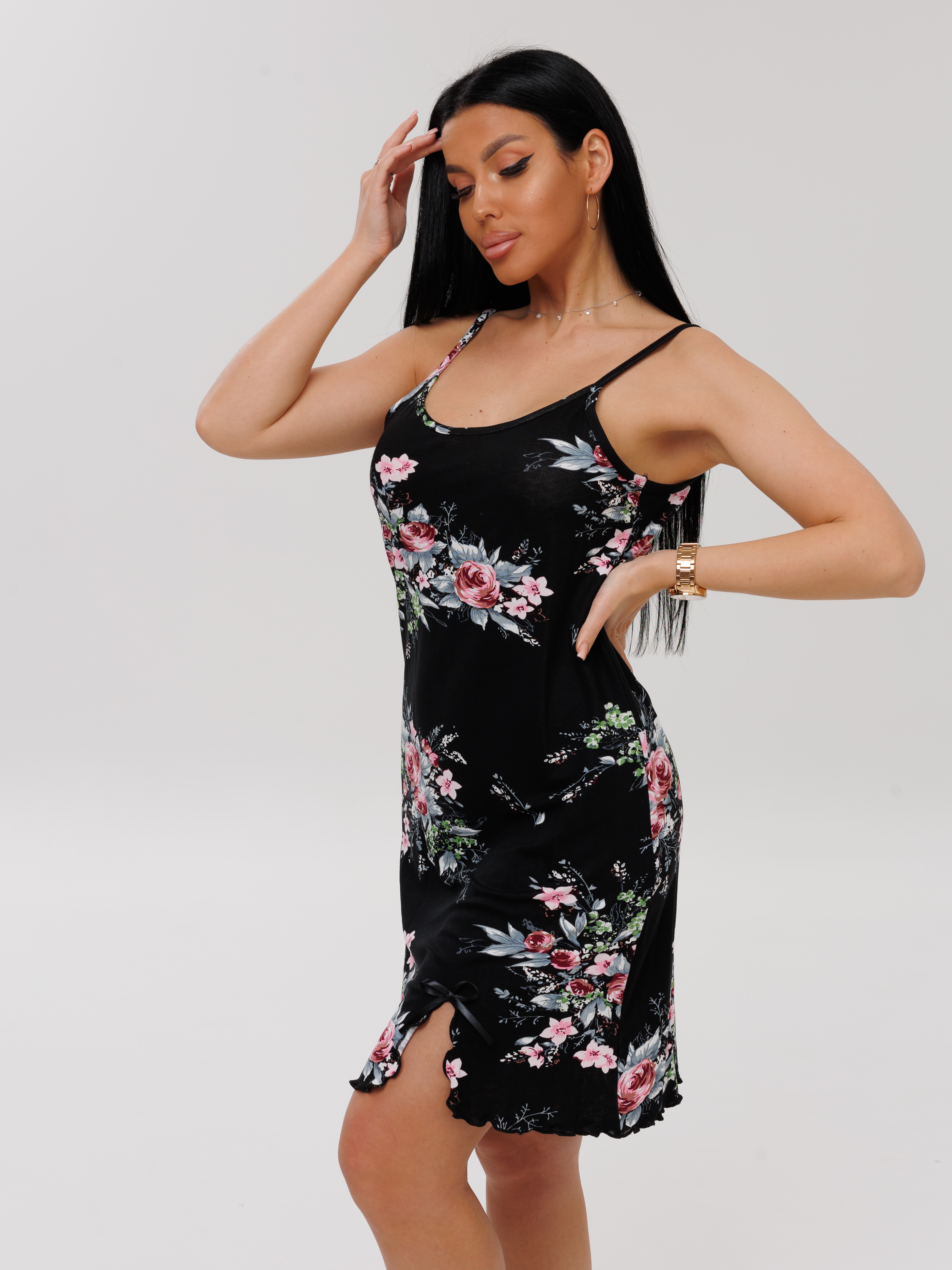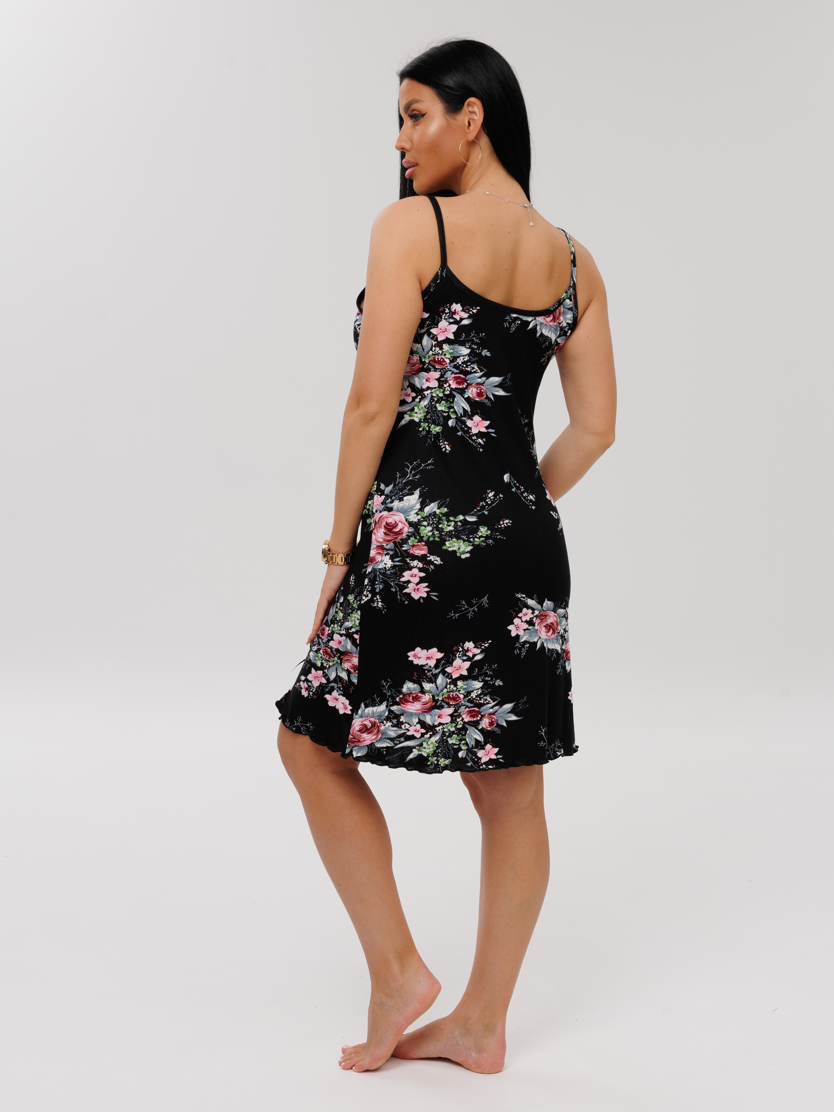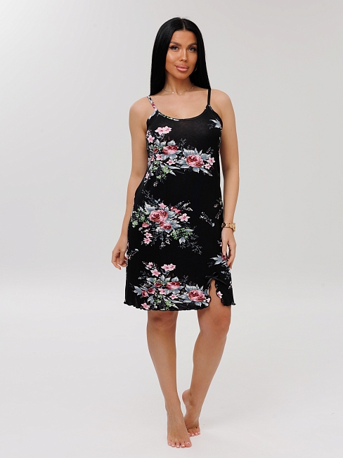 Женская сорочка Сор-105(Вис) / Черный (цветы)