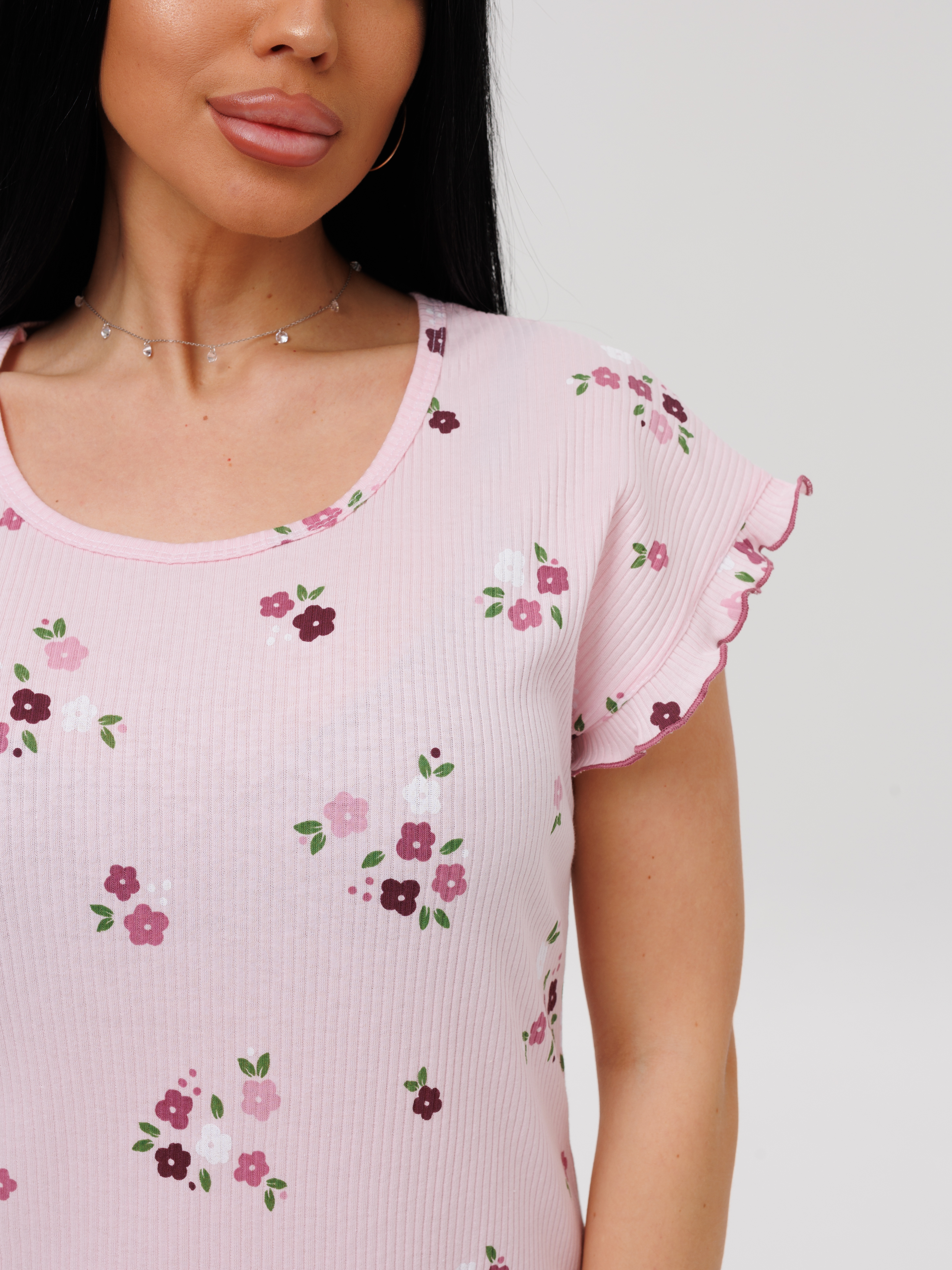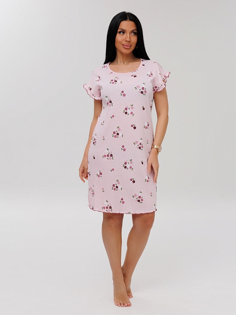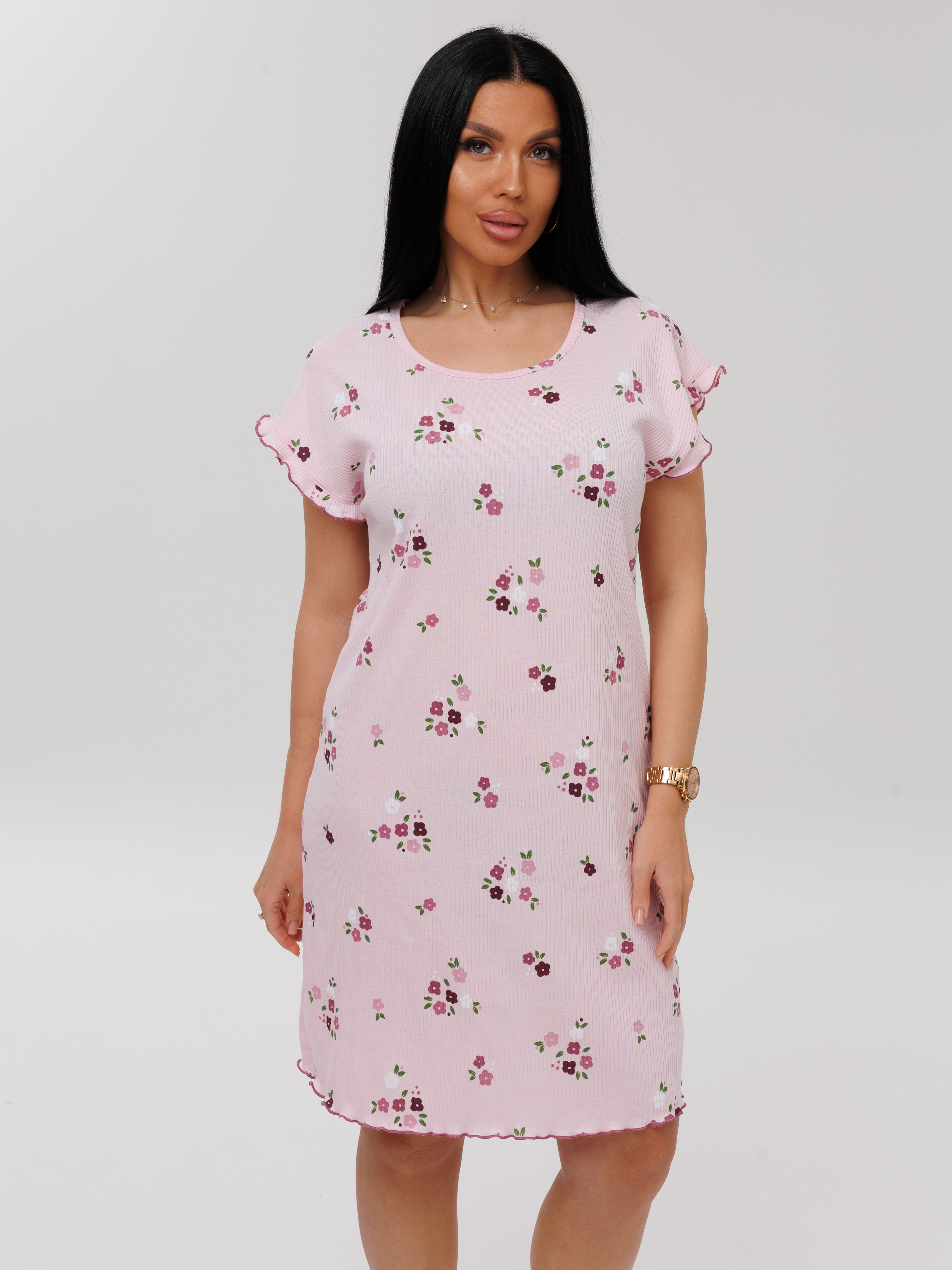 Женская сорочка Сор-107(Каш) / Пудровый (цветы)