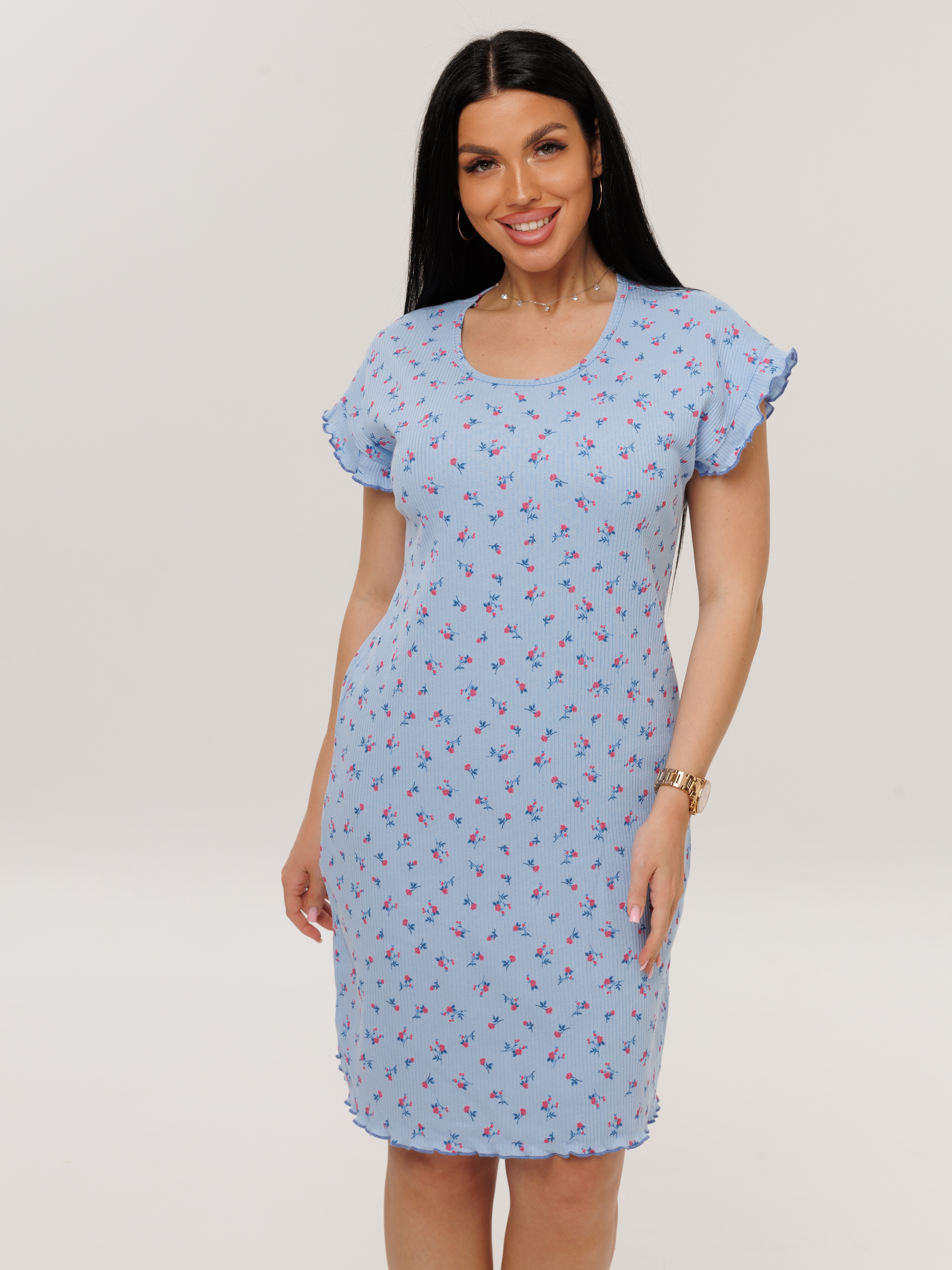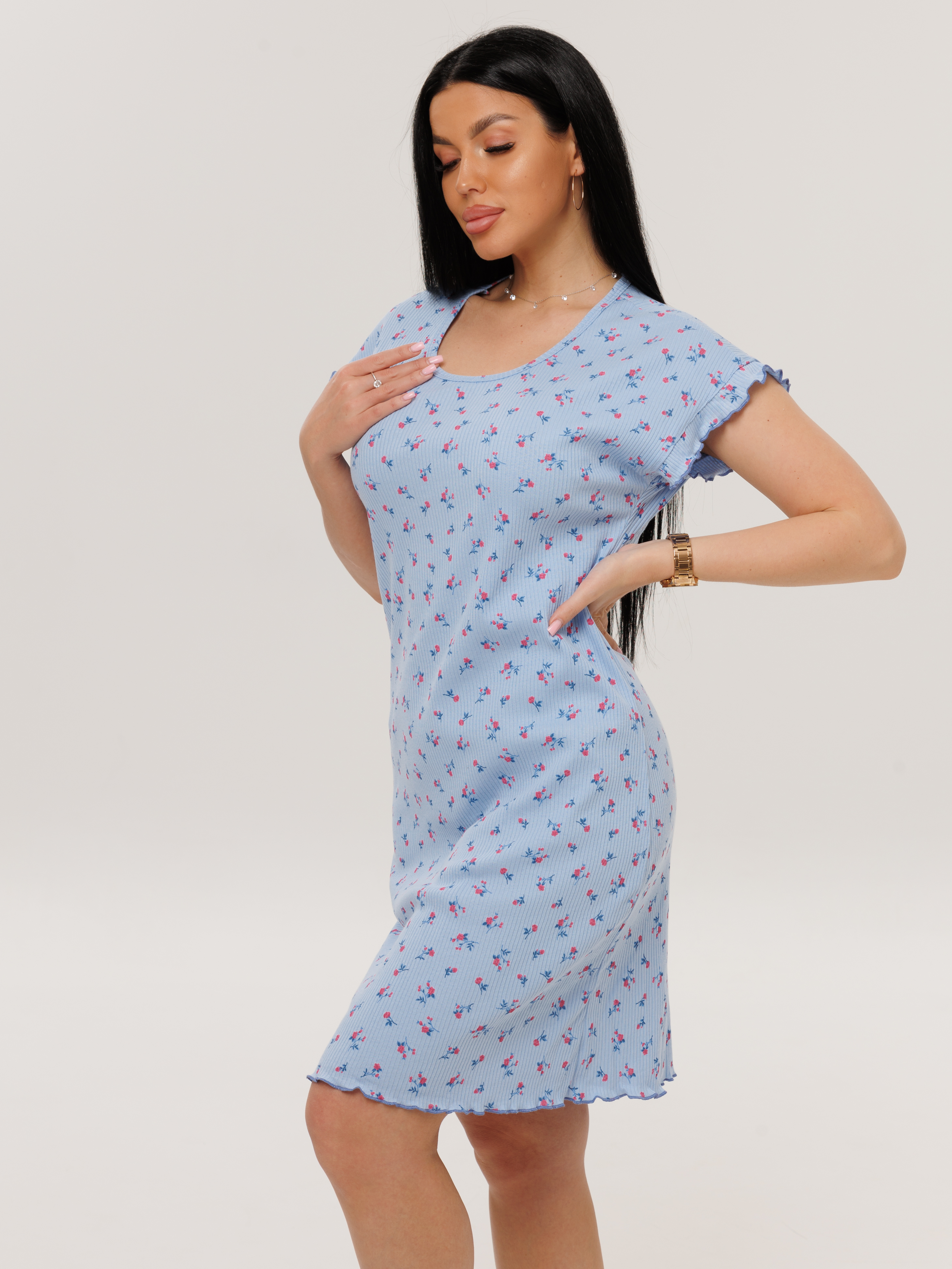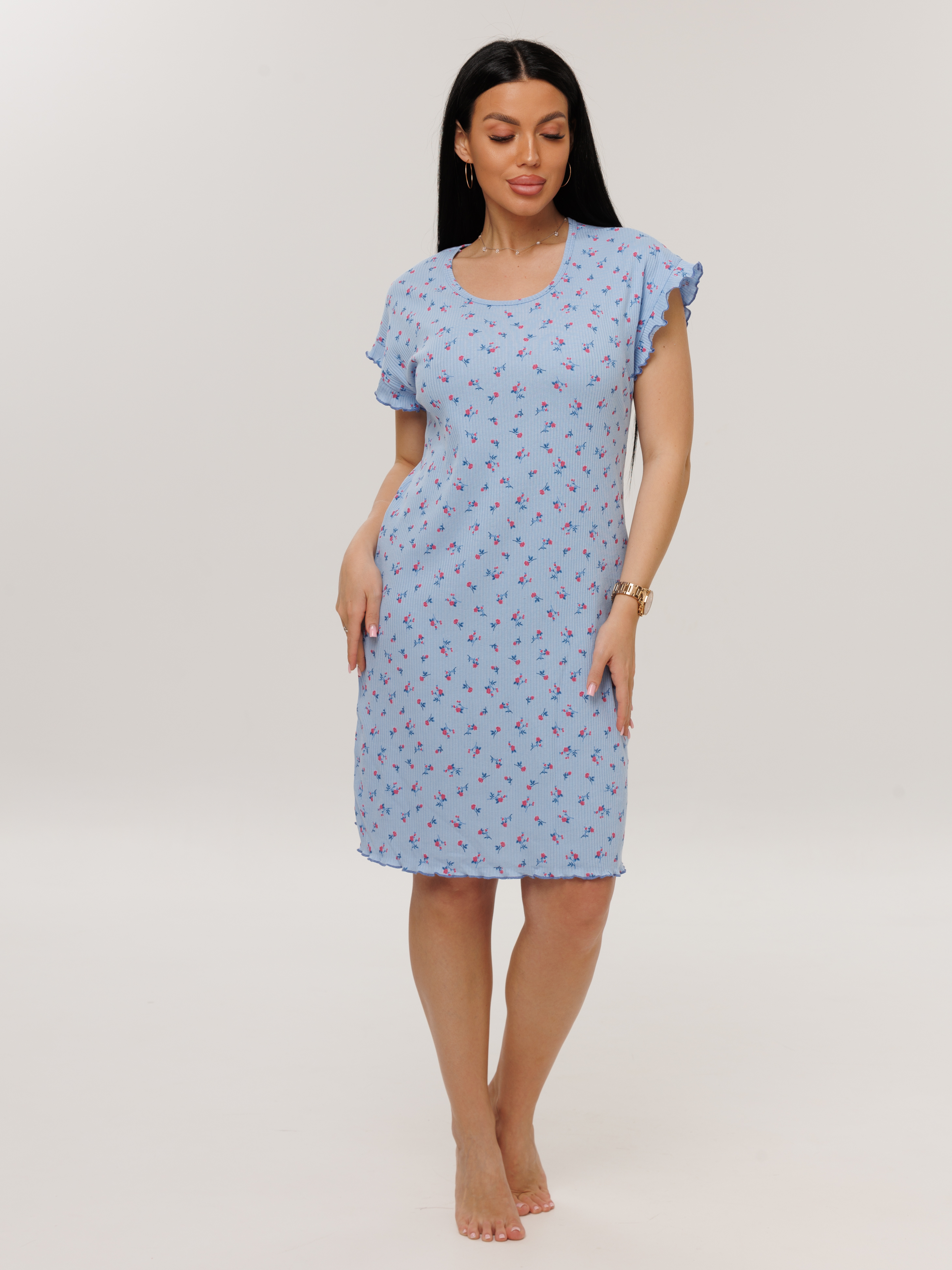 Женская сорочка Сор-107(Каш) / Светло-синий (мелкие цветы)