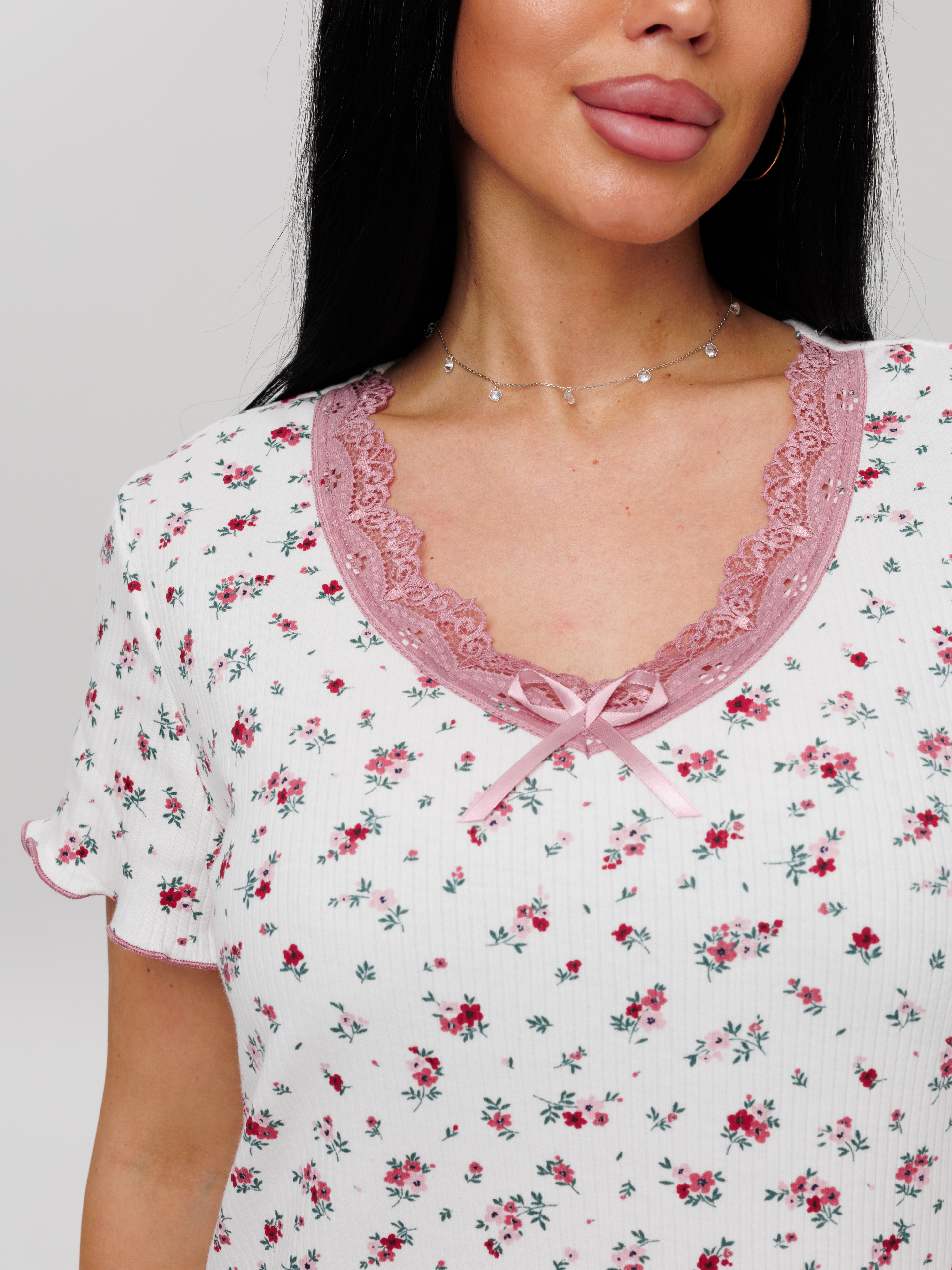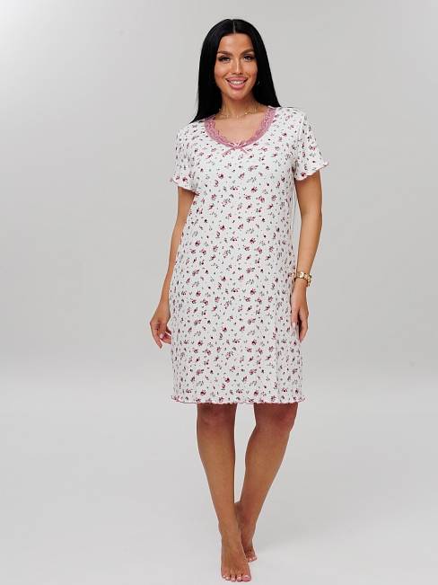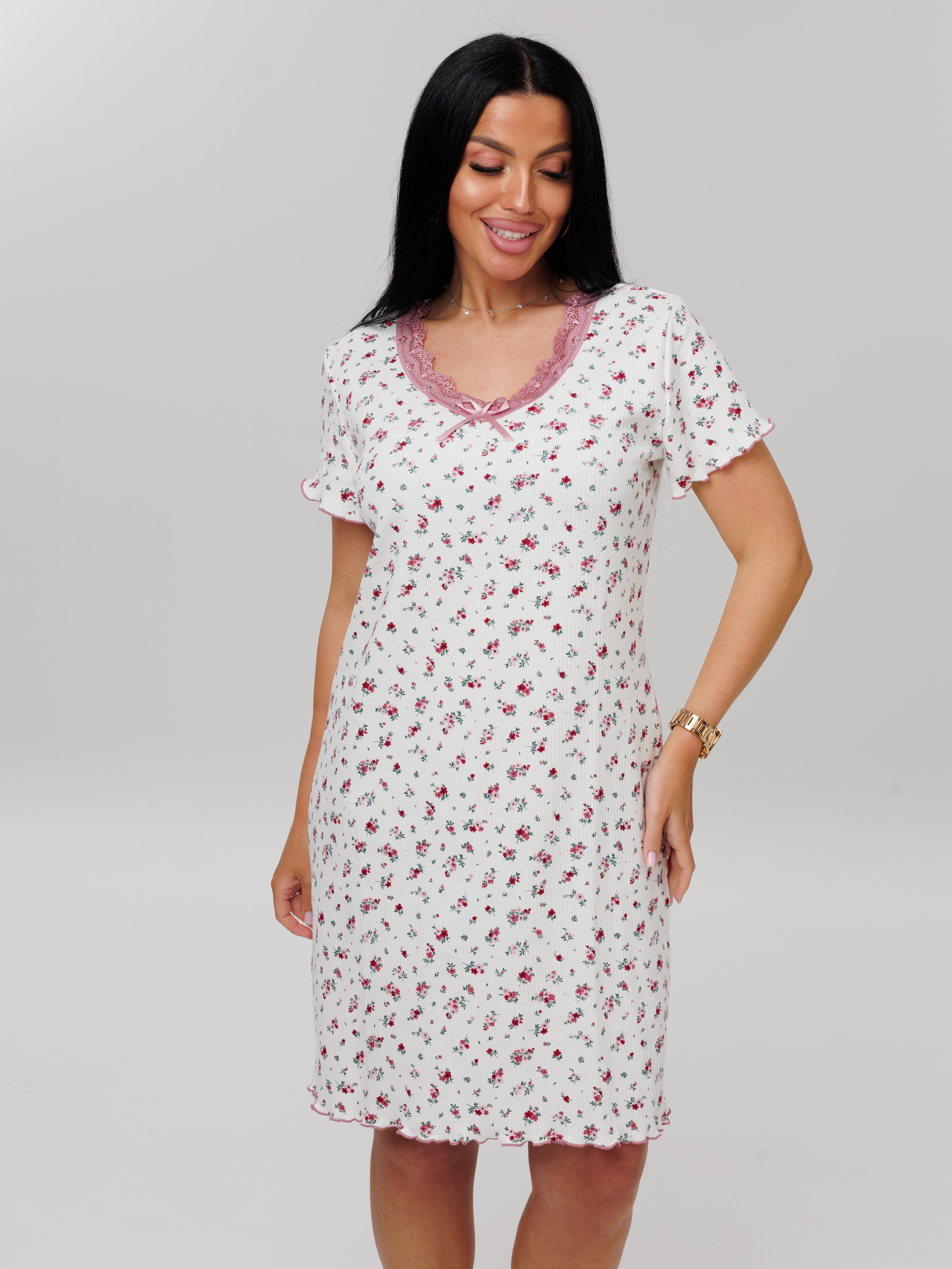 Женская сорочка Сор-108(И) / Молочный (цветы)