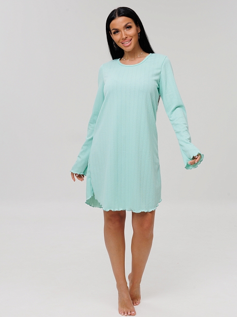 Ночные сорочки предназначены для комфортного сна и домашнего отдыха. Женская сорочка Сор-109(Трк) с длинными рукавами, имеет свободный покрой и нежные пастельные оттенки.