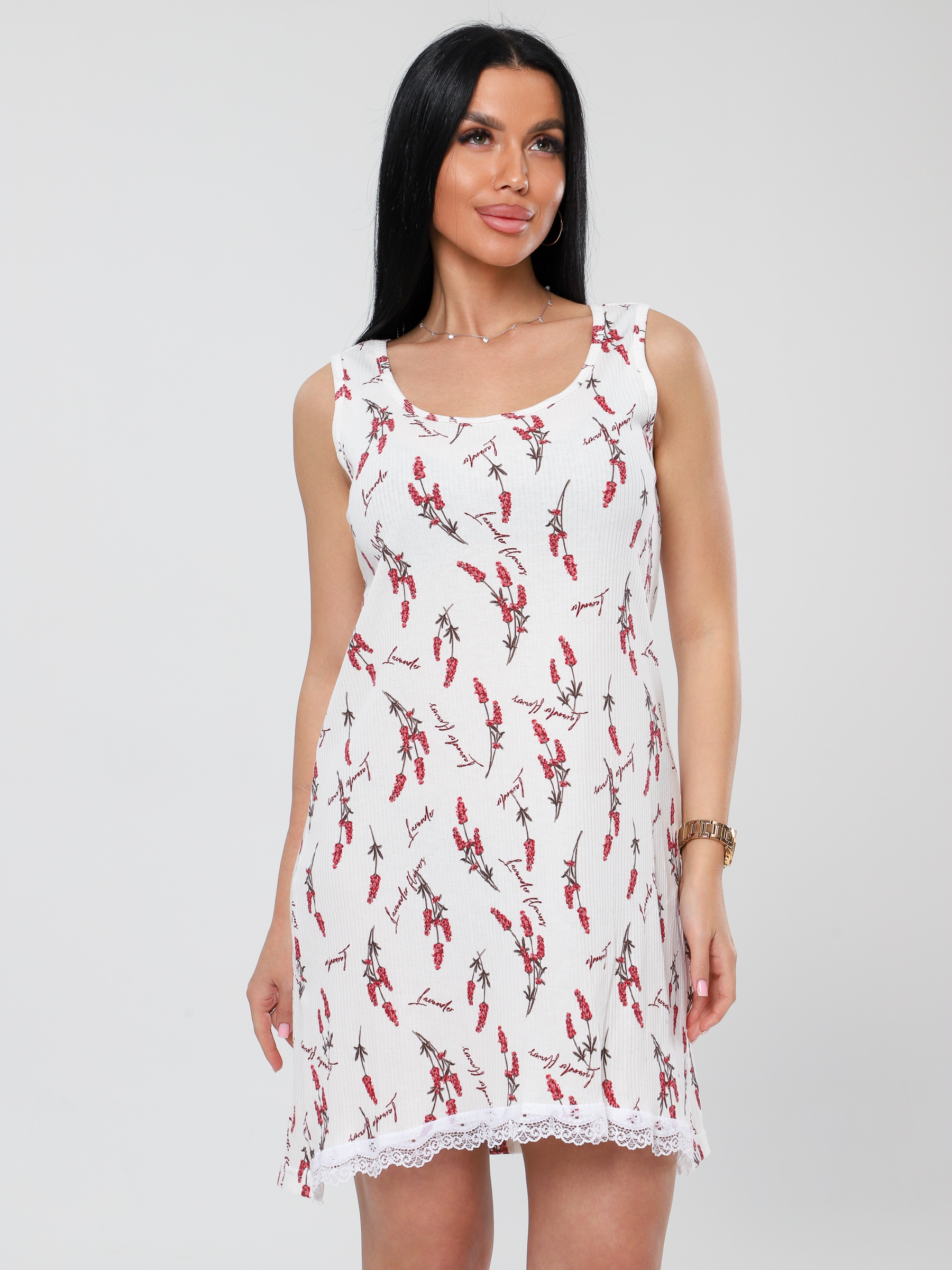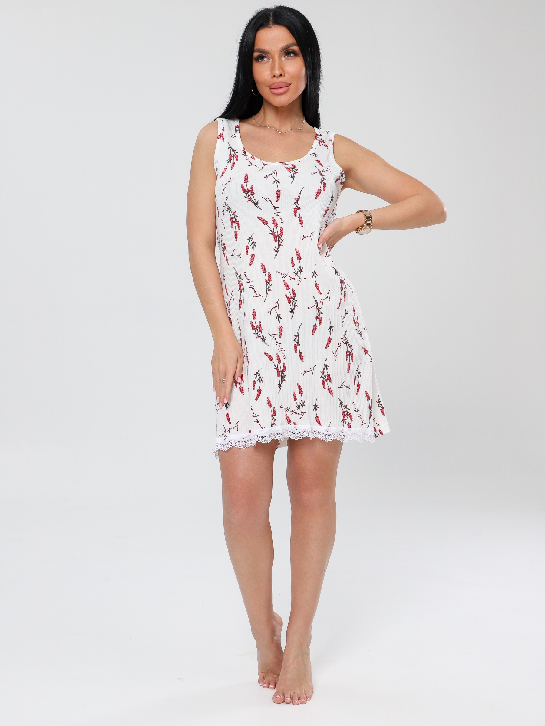 Женская сорочка Сор-110(Каш) / Белый (красные цветы)