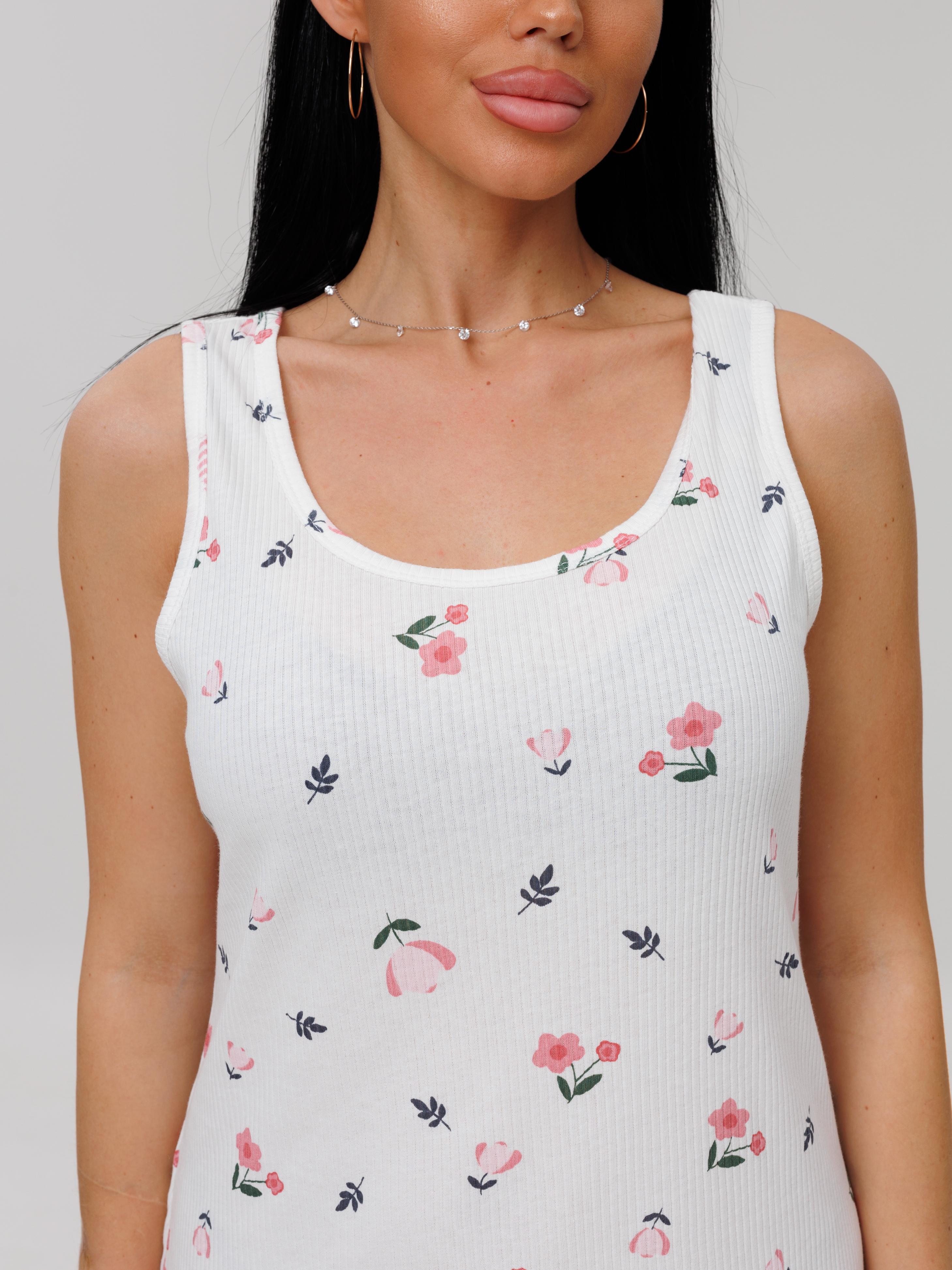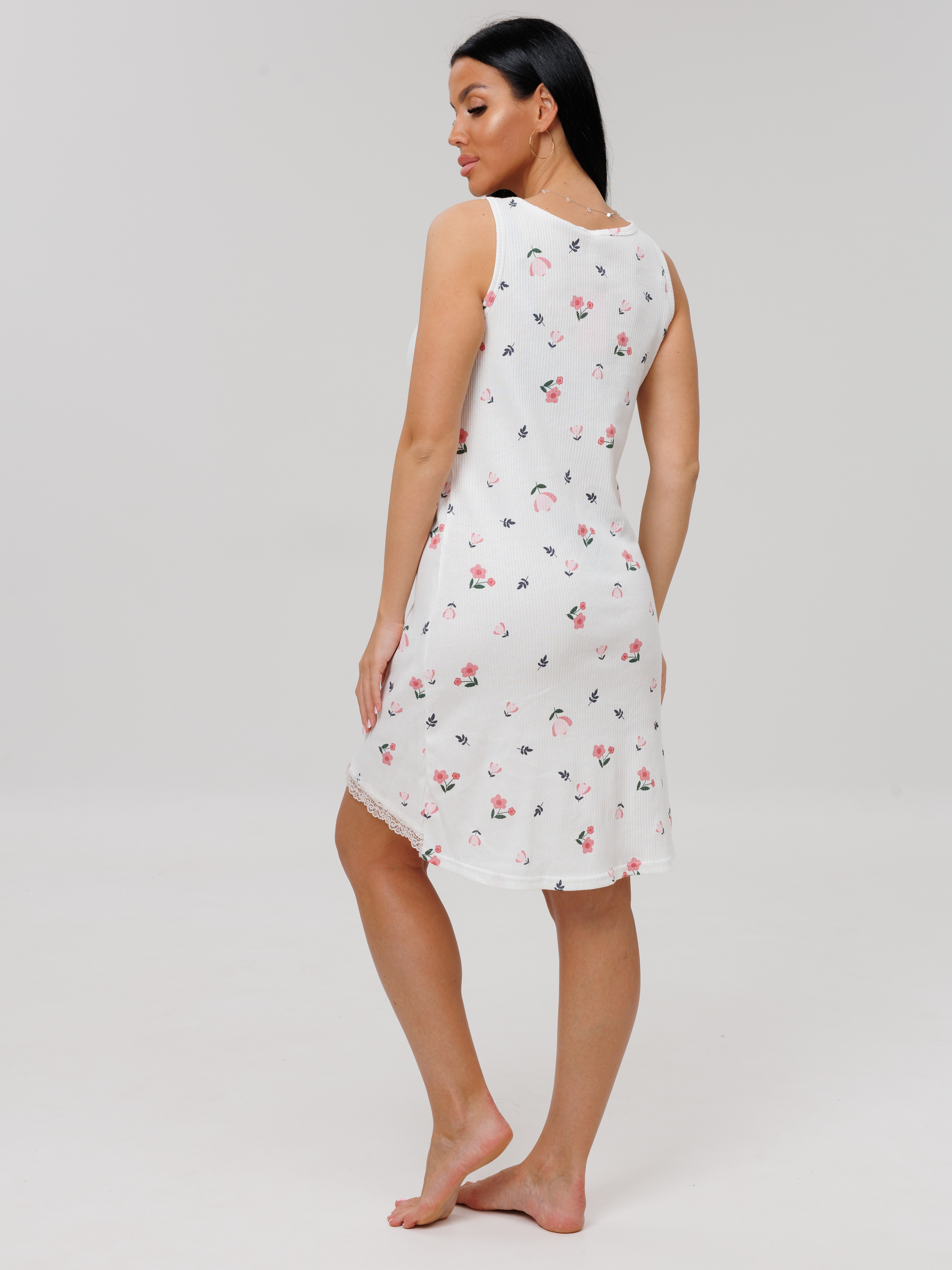 Женская сорочка Сор-110(Каш) / Белый (розовые цветы)
