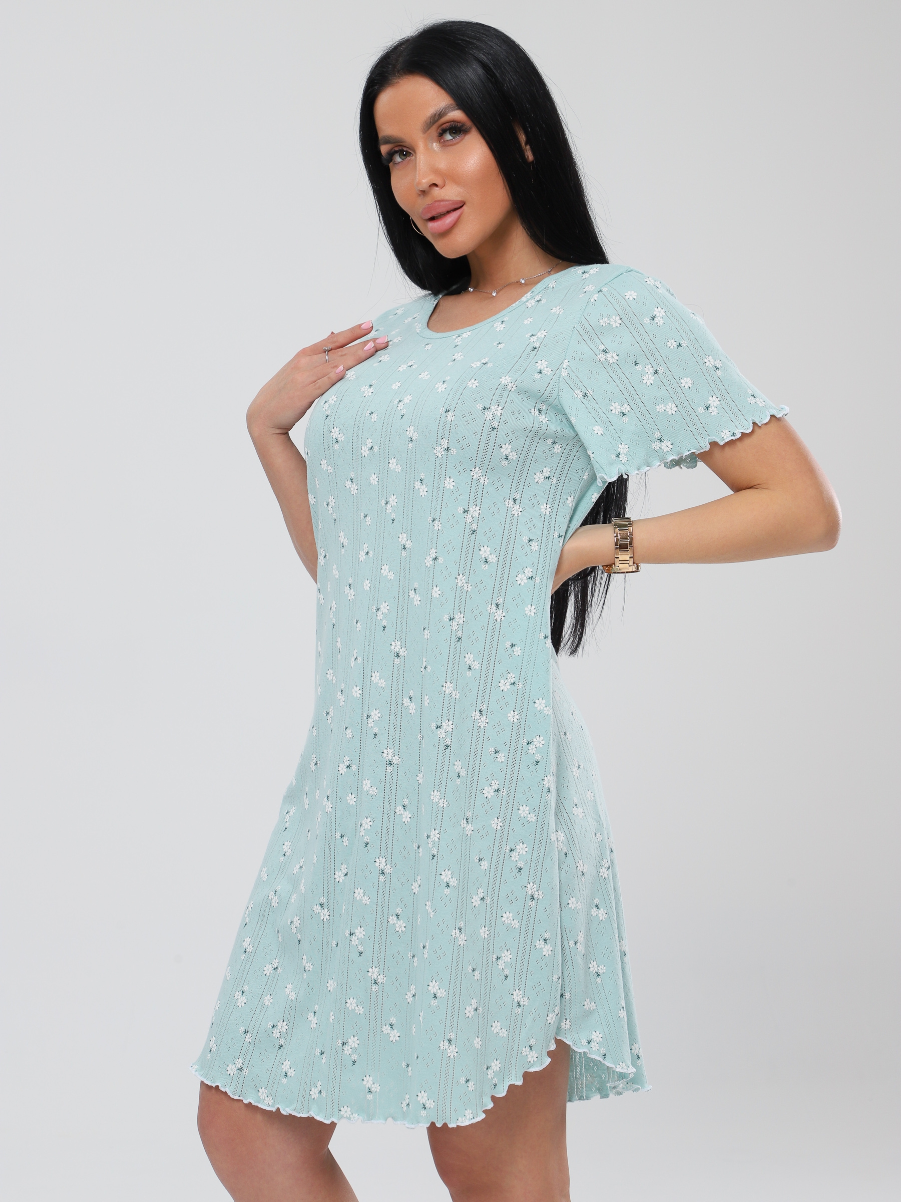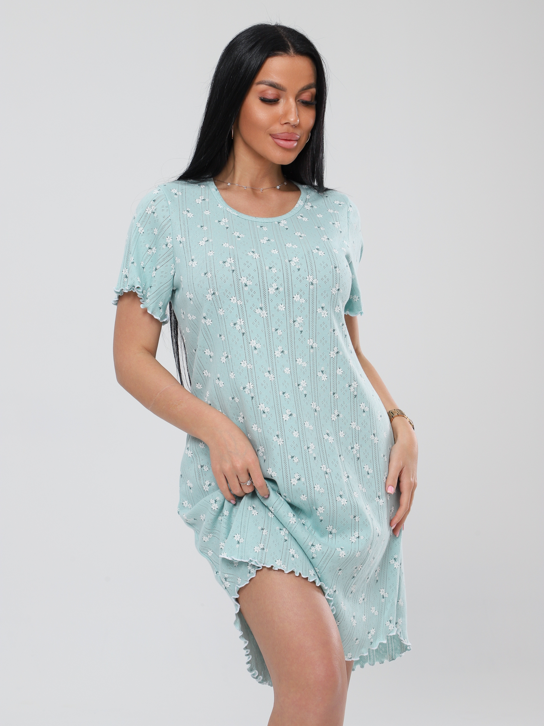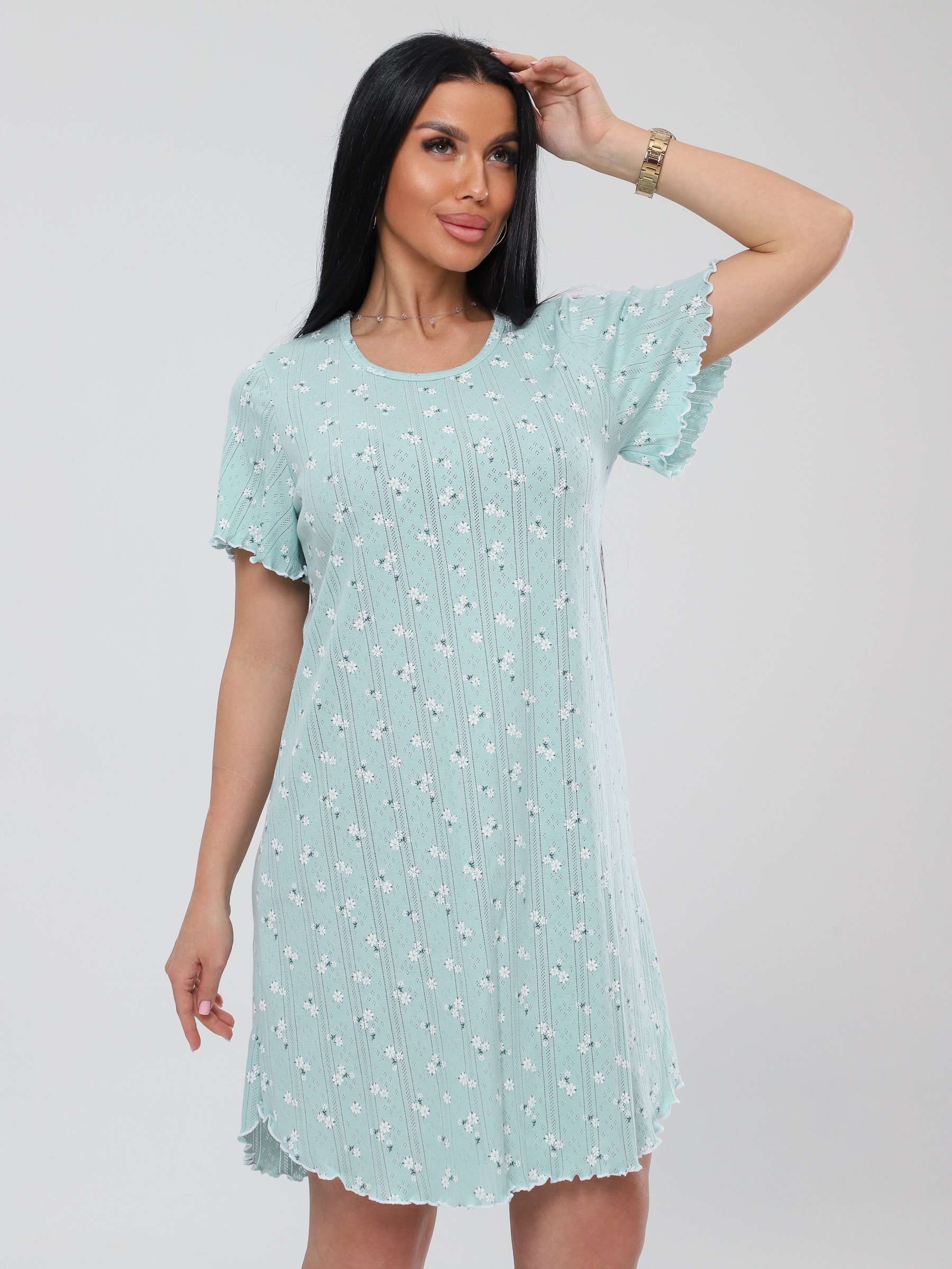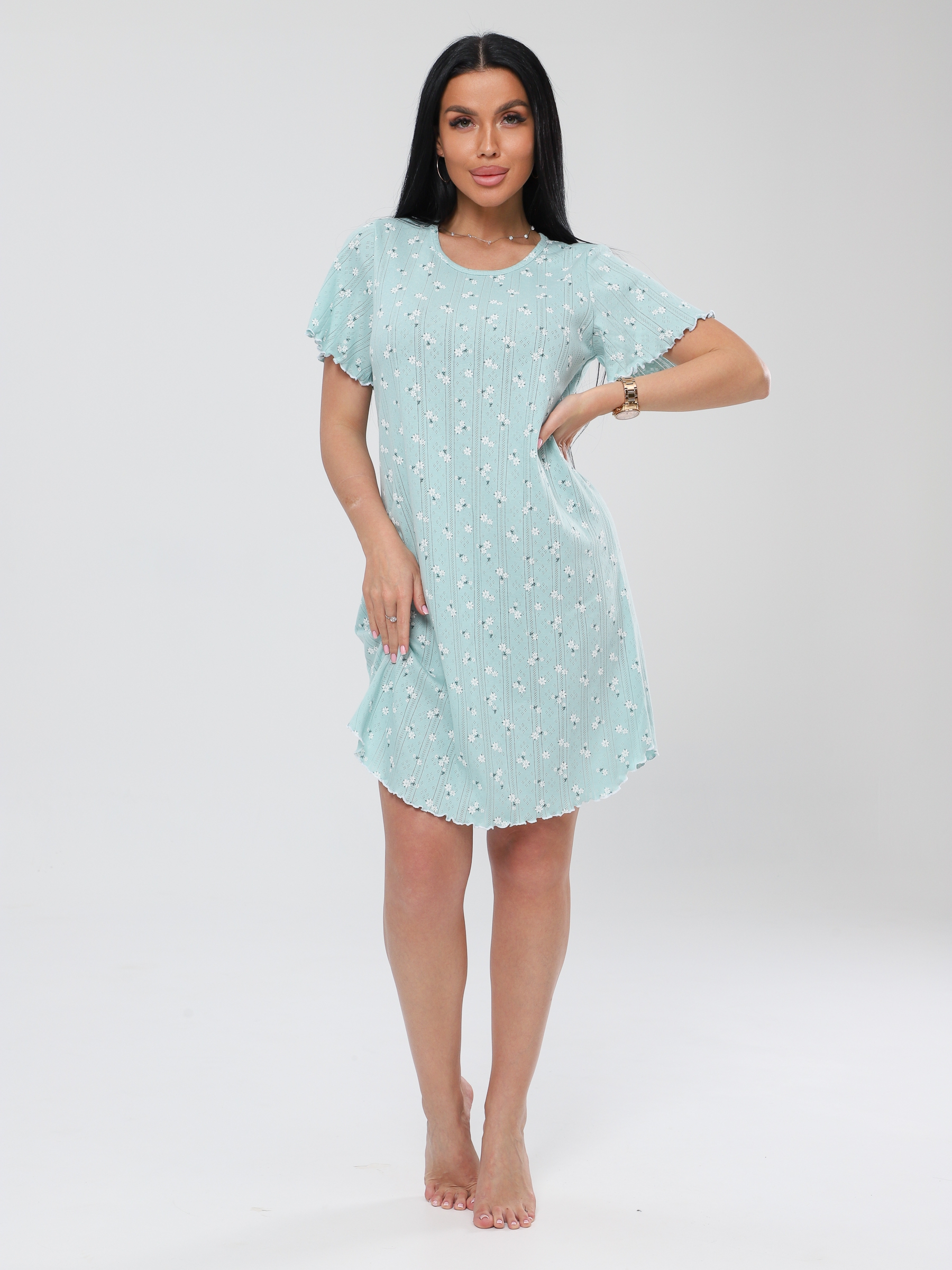 Женская сорочка Сор-111(Риб) / Бирюзовый (цветы)