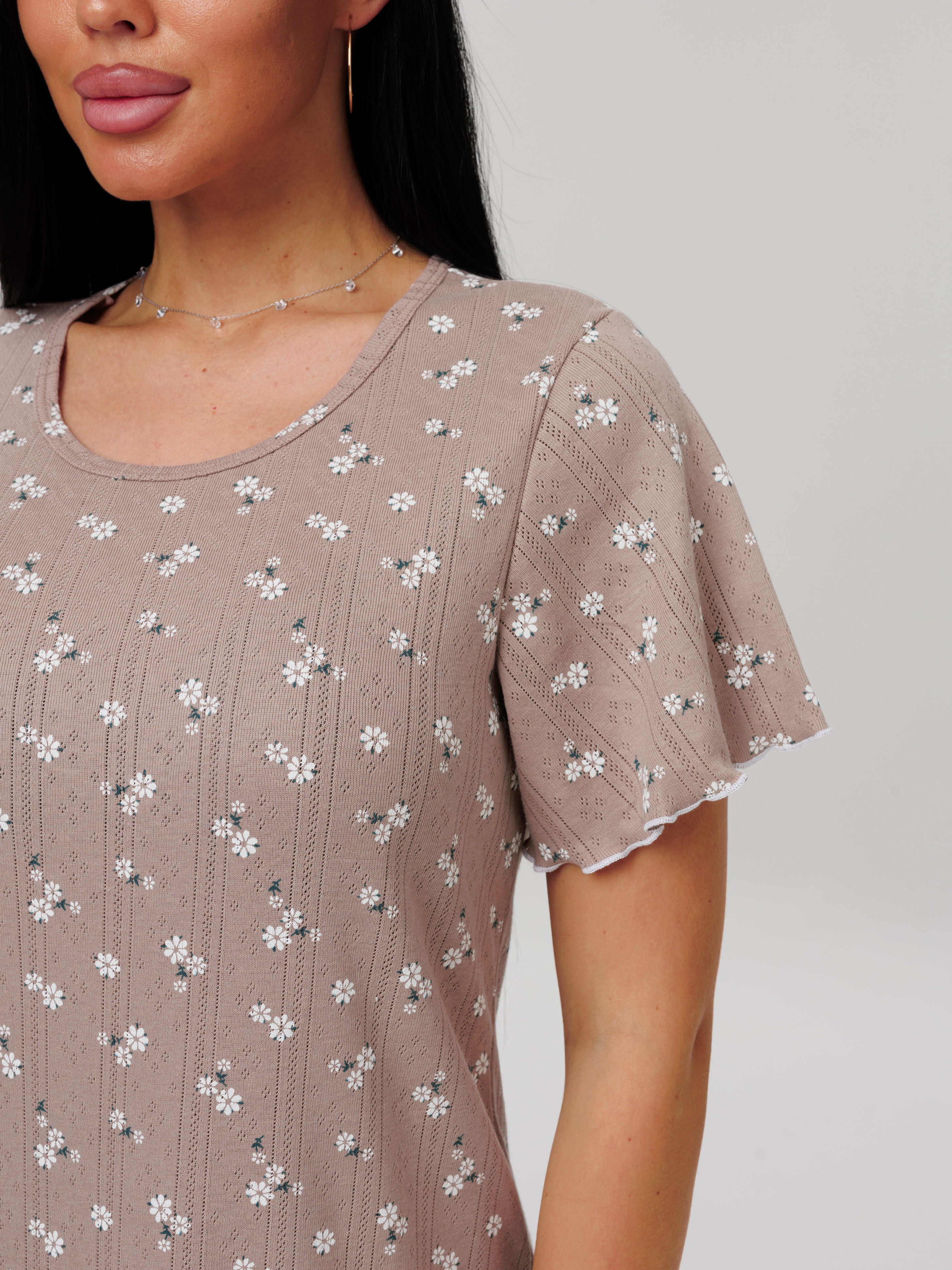 Женская сорочка Сор-111(Риб) / Какао (цветы)
