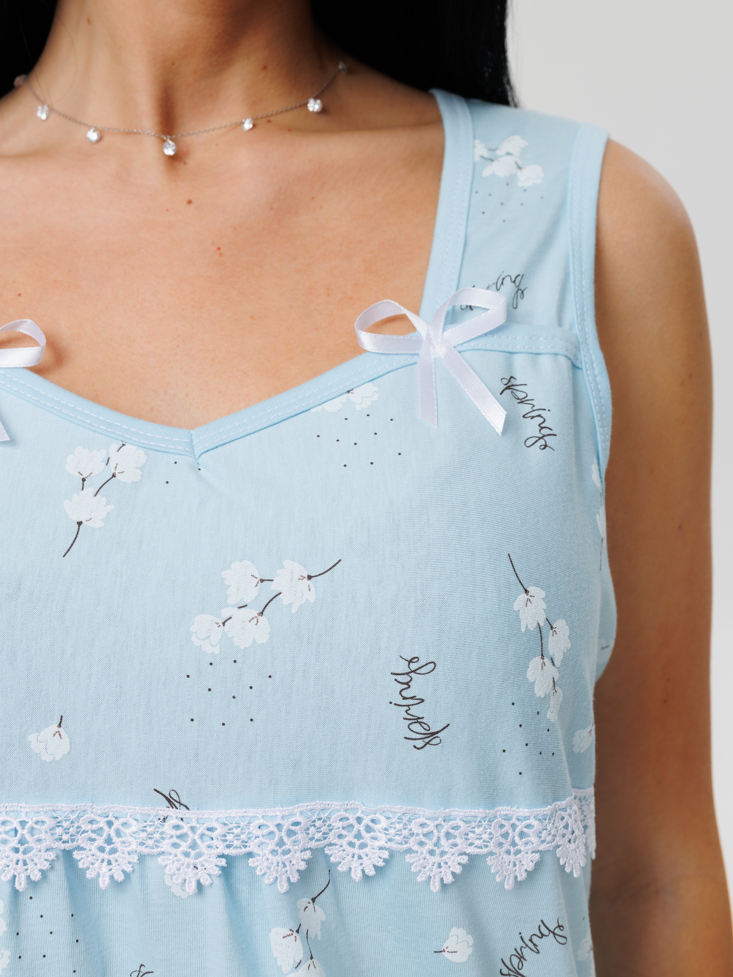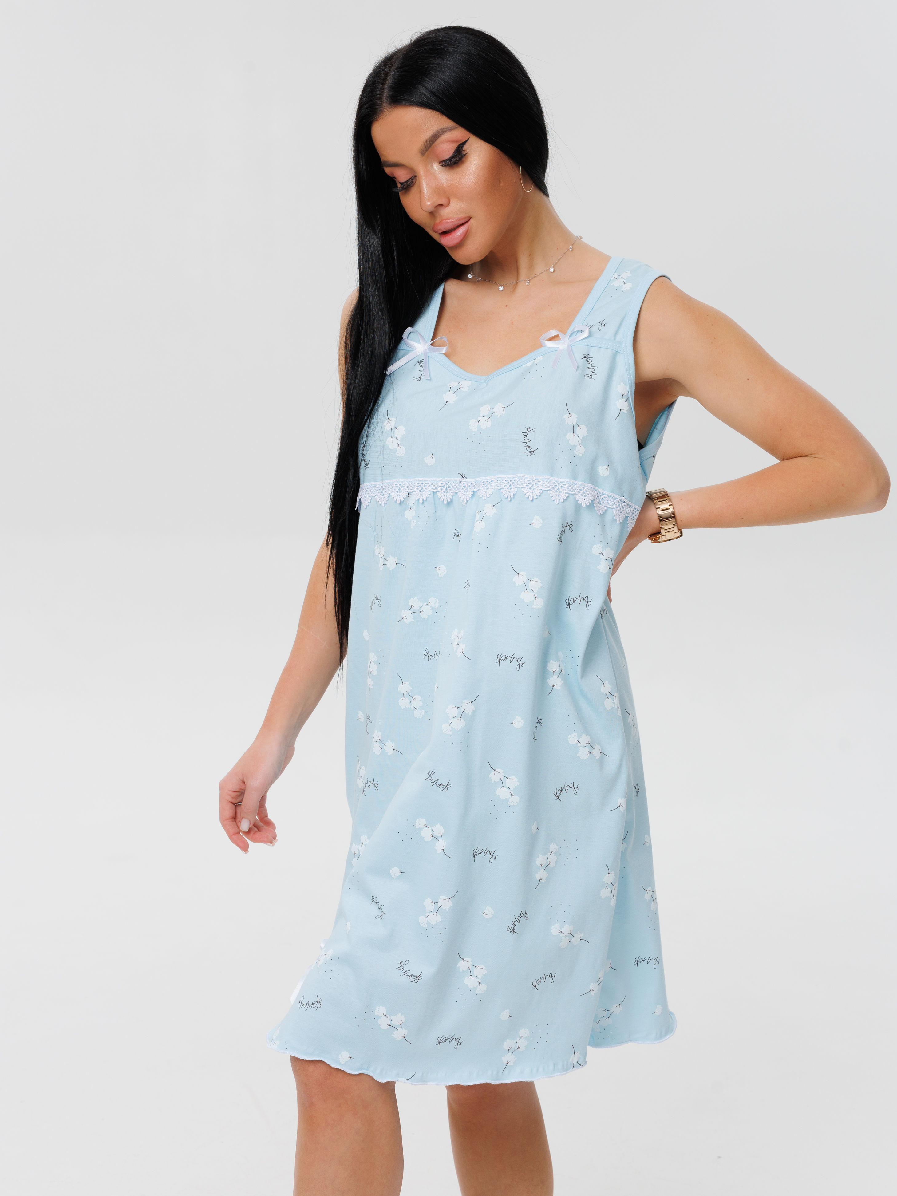 Женская сорочка Сор-15(К) / Нежно голубой (цветы)