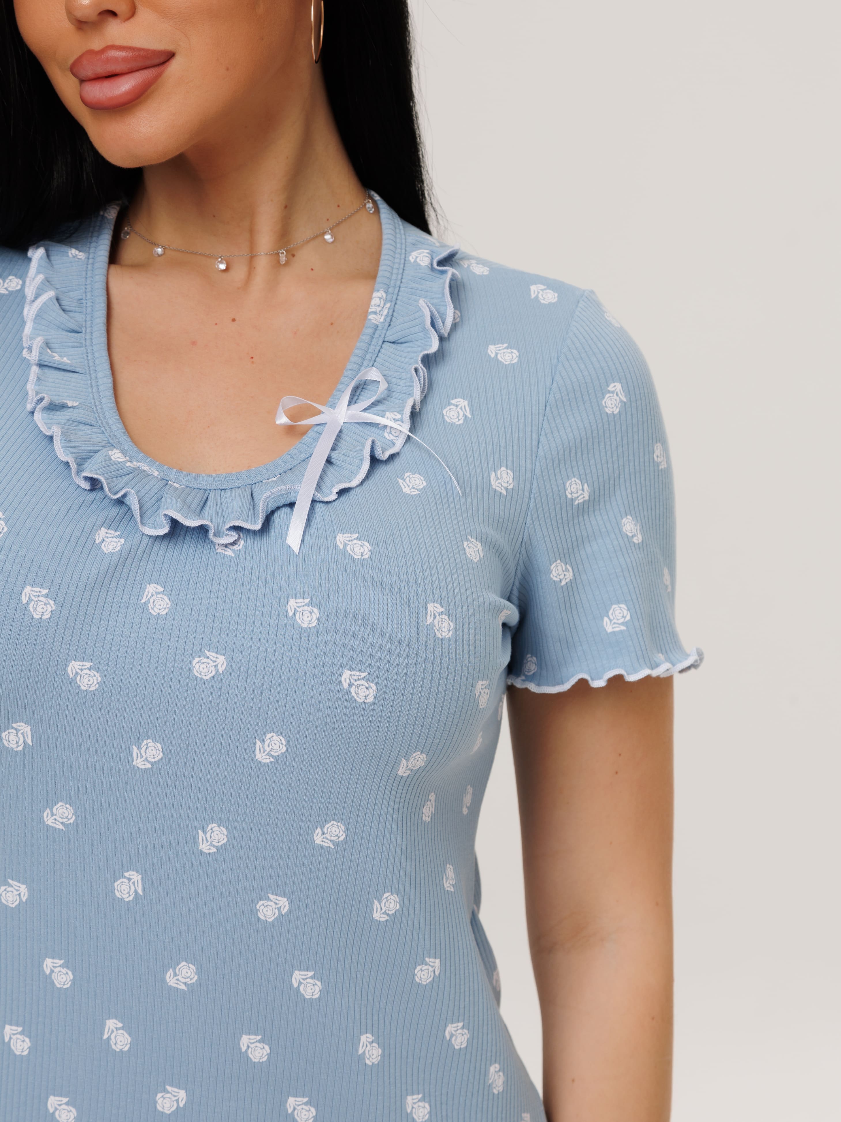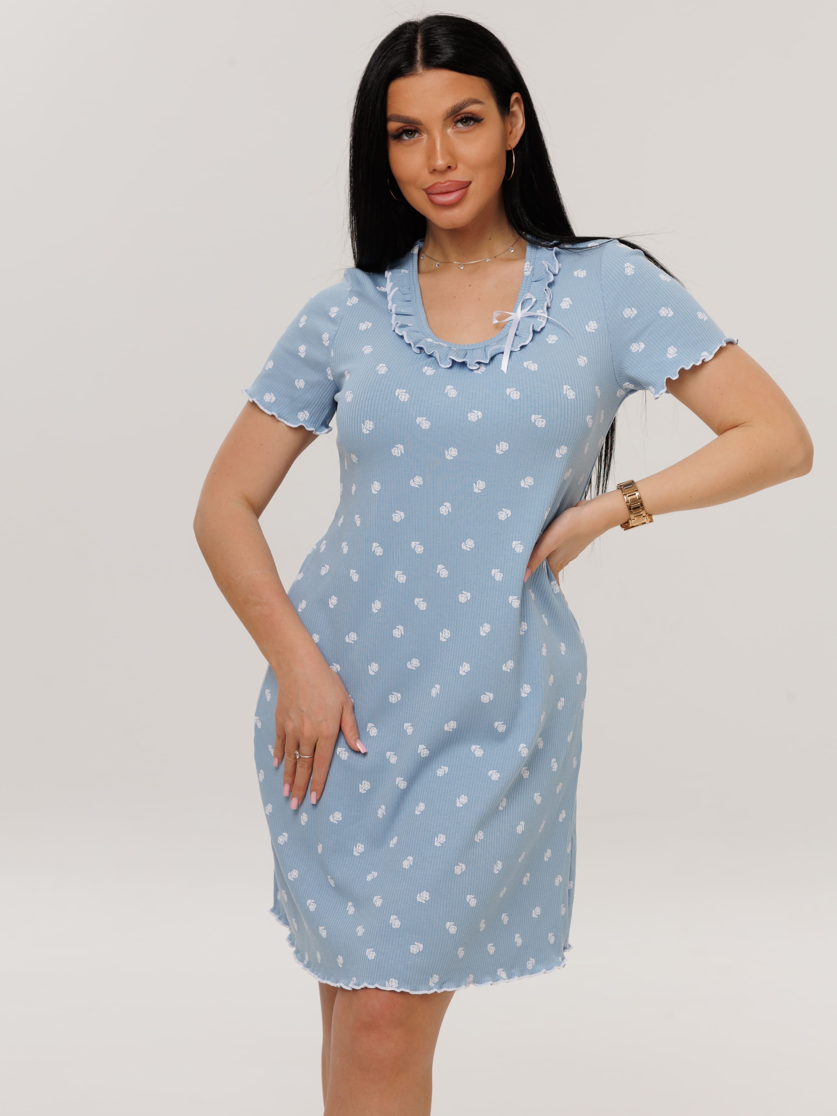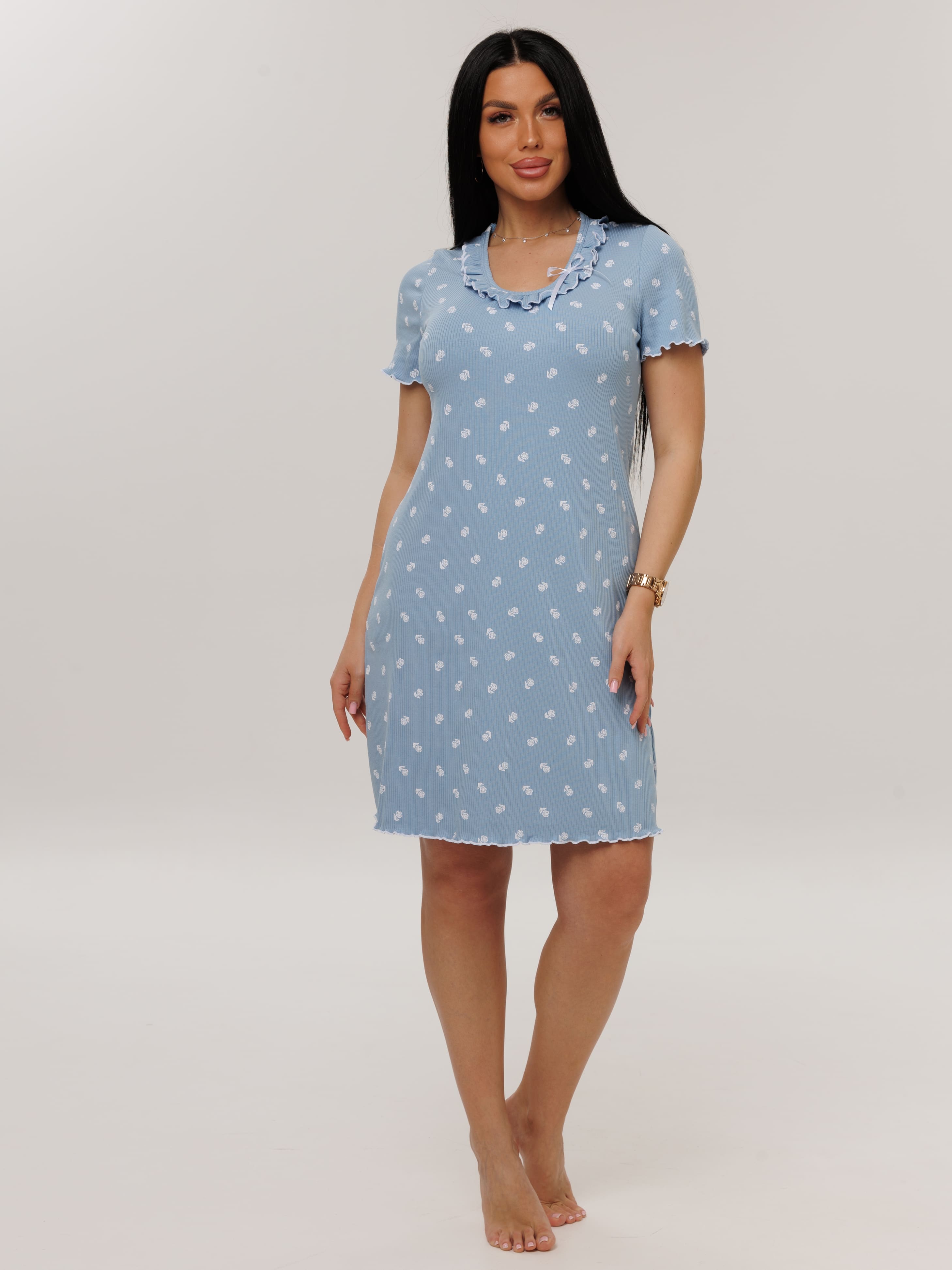 Женская сорочка Сор-35(Л) / Светло-синий (цветы)