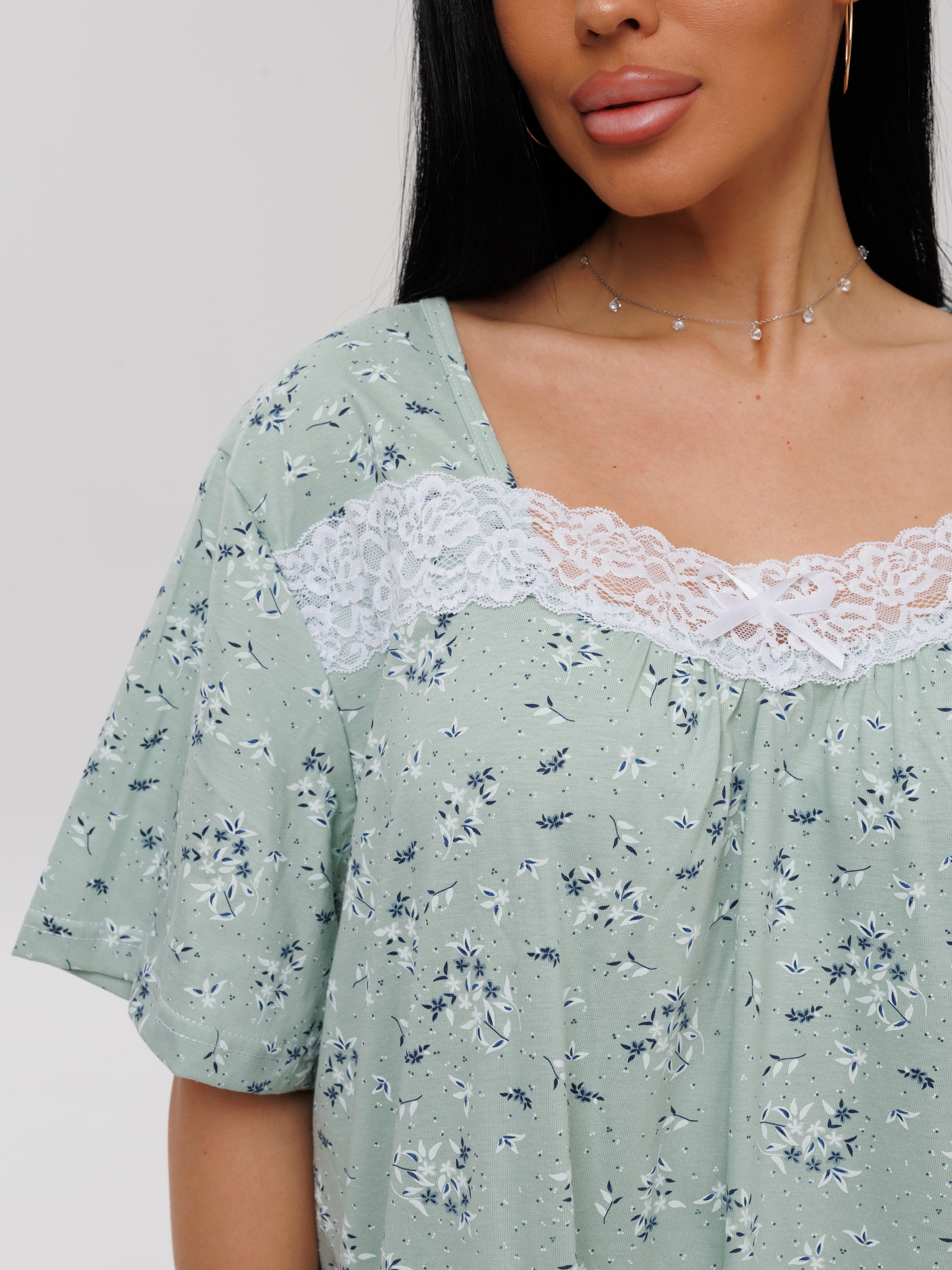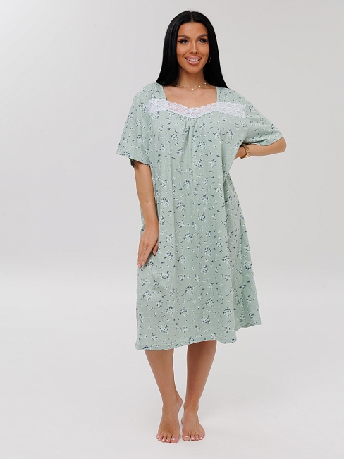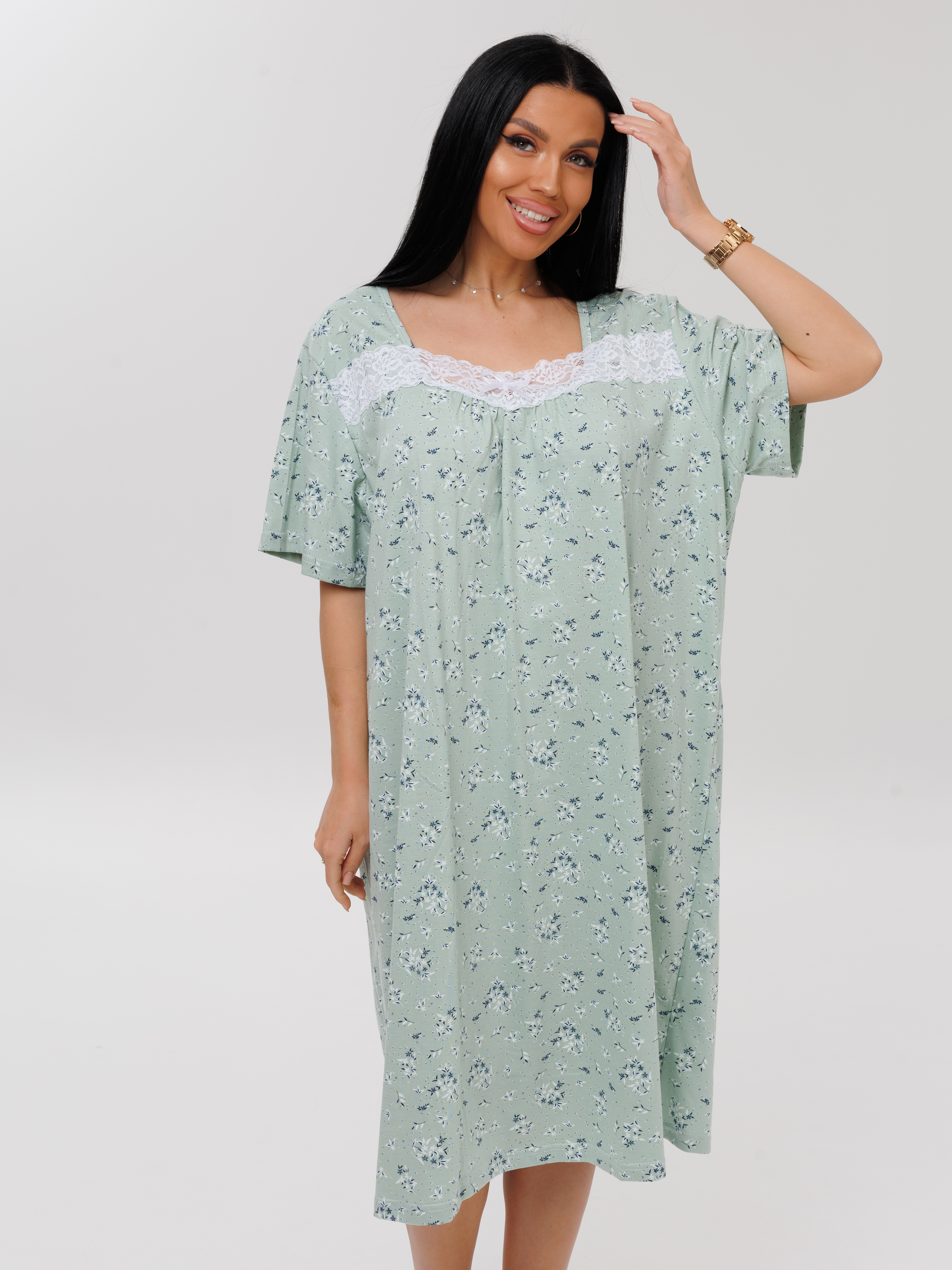 Женская сорочка Сор-38(К) / Серо-зеленый (цветы)