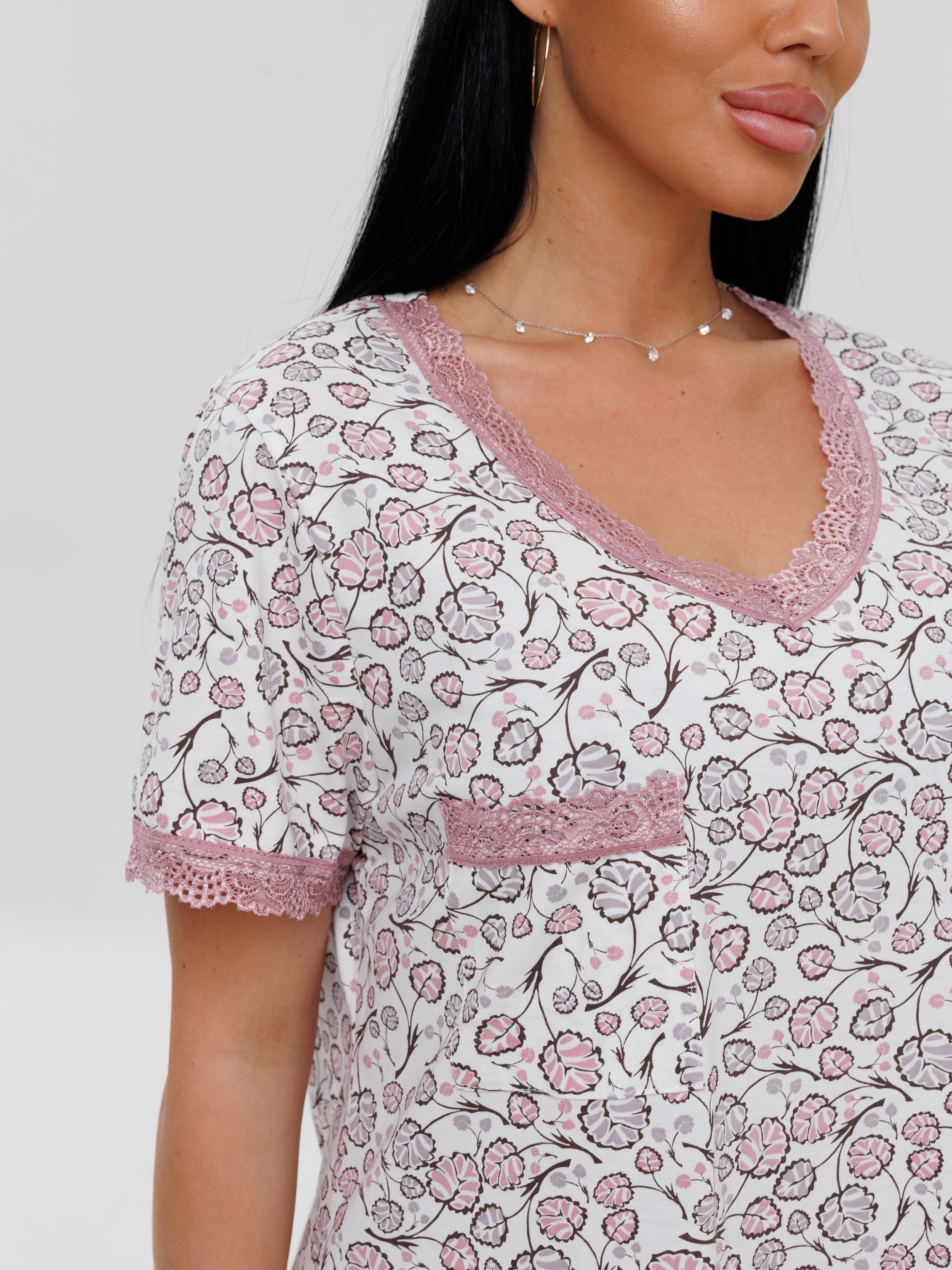 Женская сорочка Сор-41(К) / Розовый (листья)