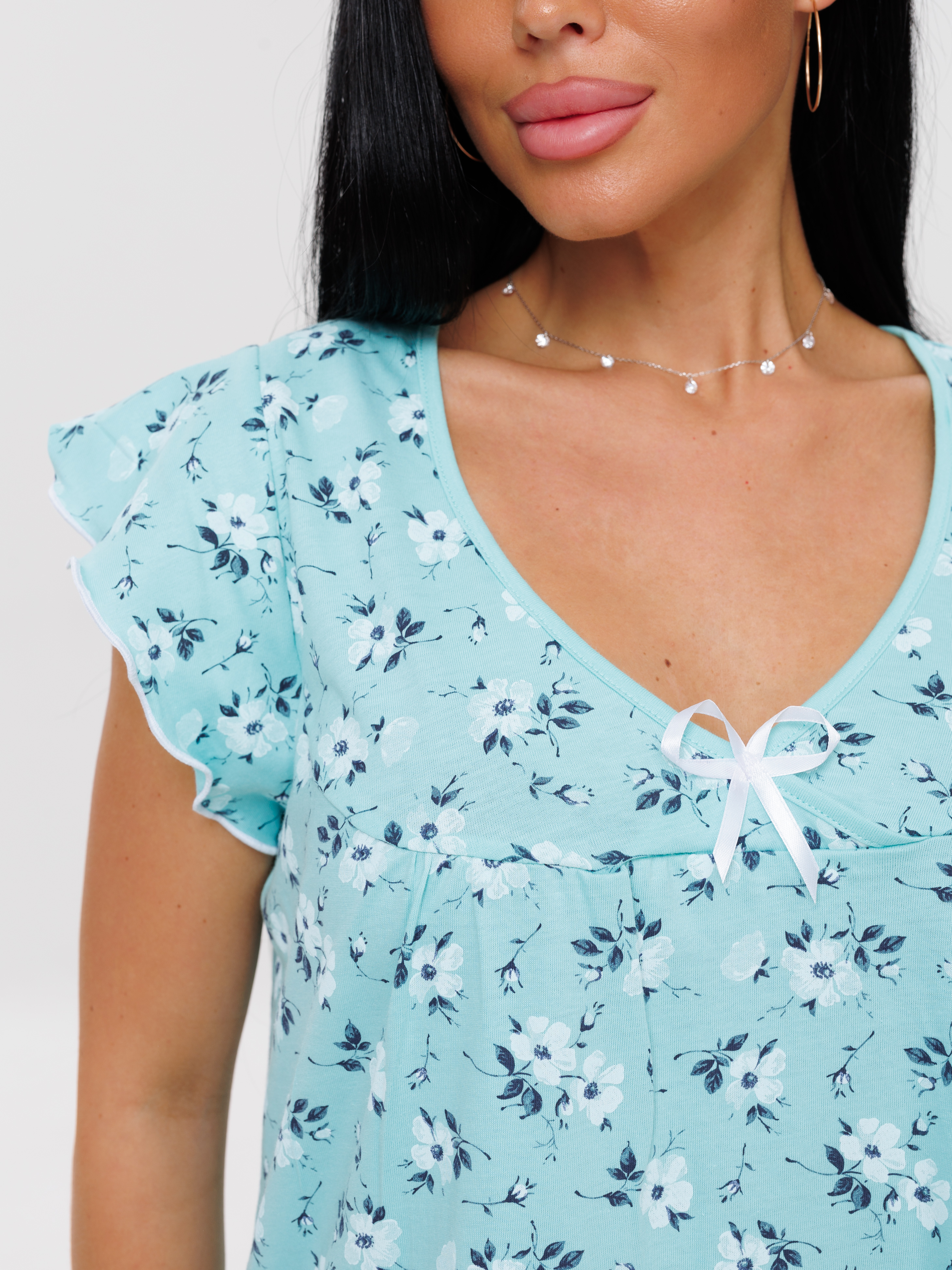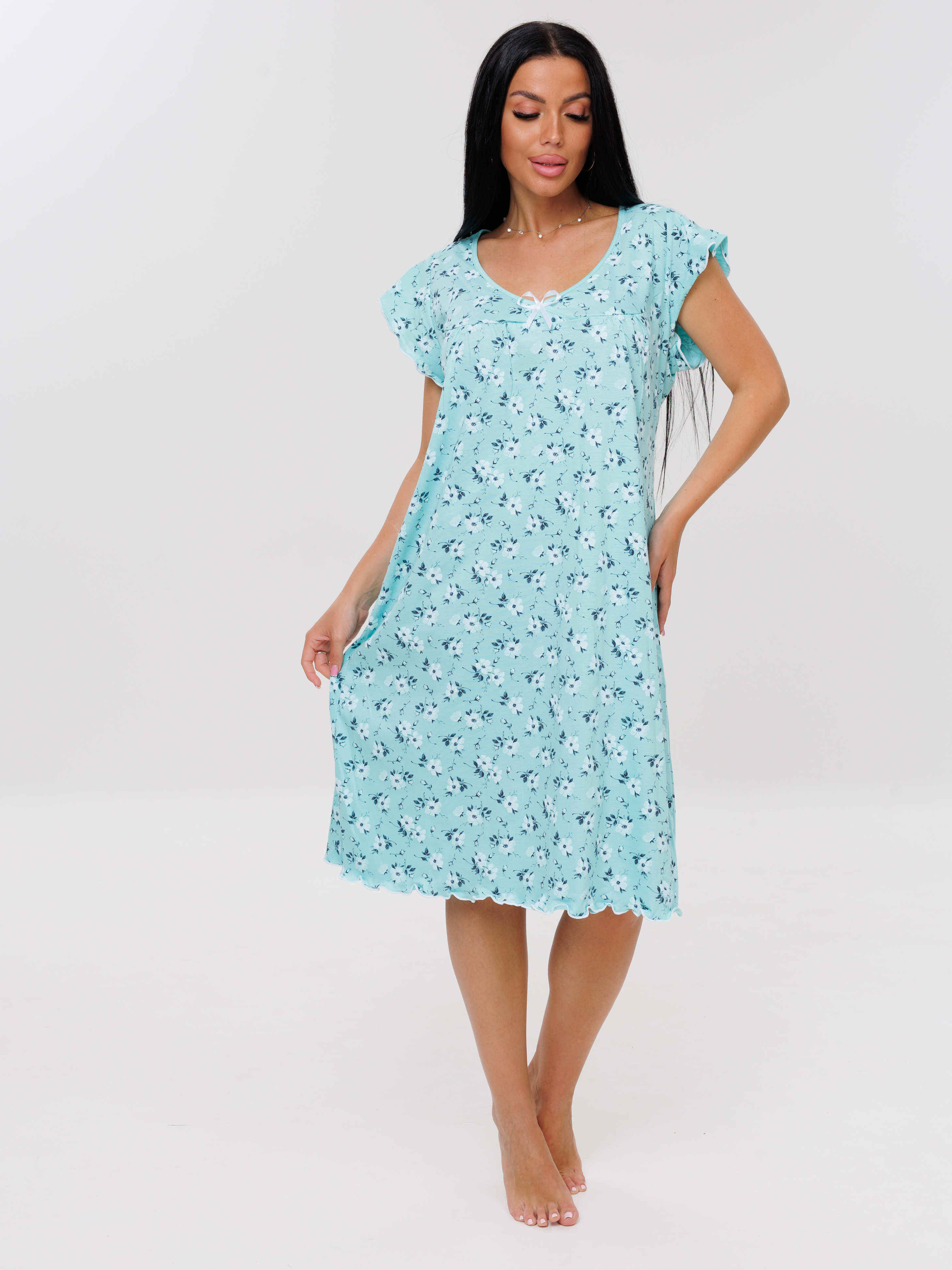 Женская сорочка Сор-71(К) / Бирюзовый (цветы)