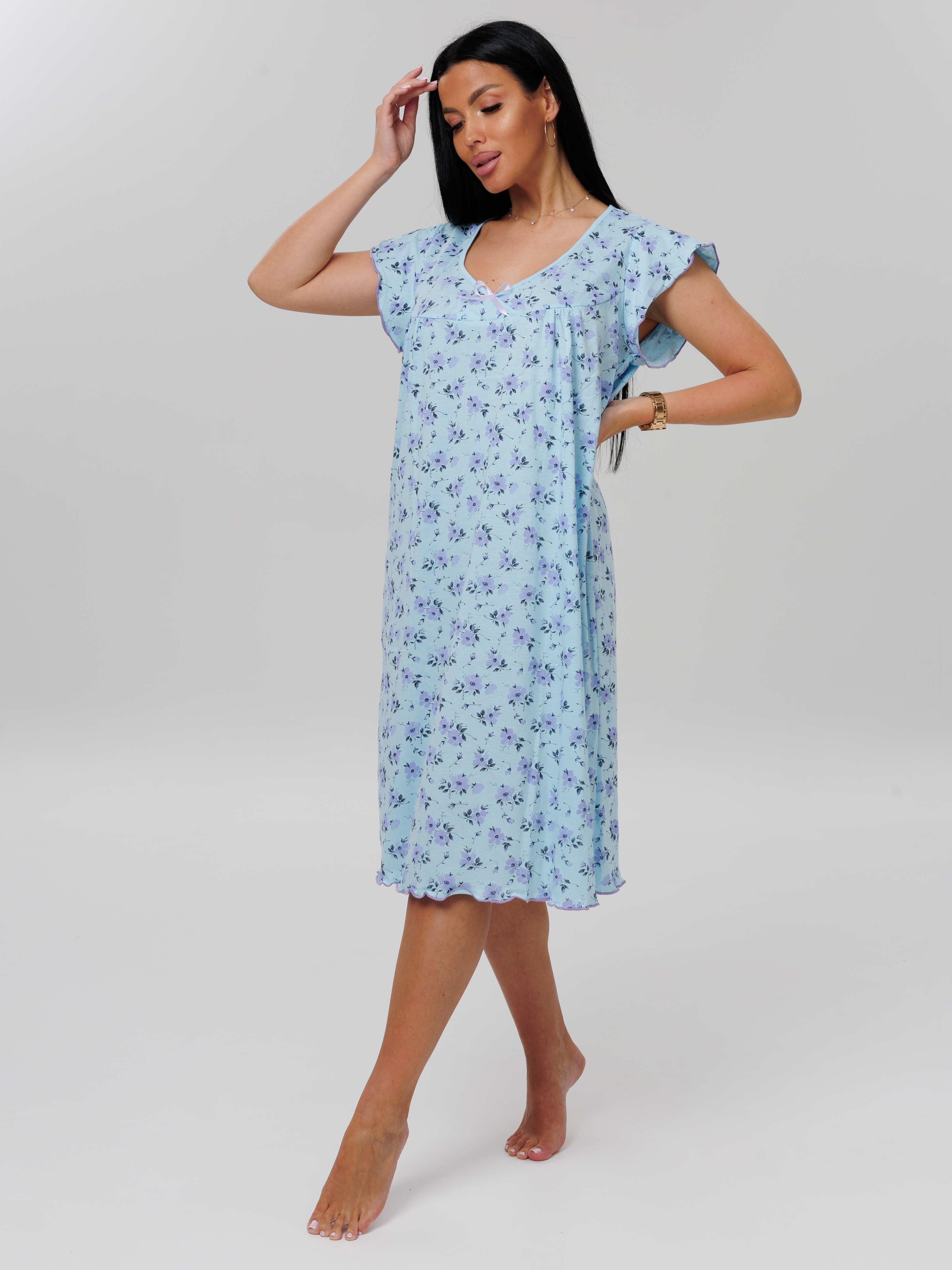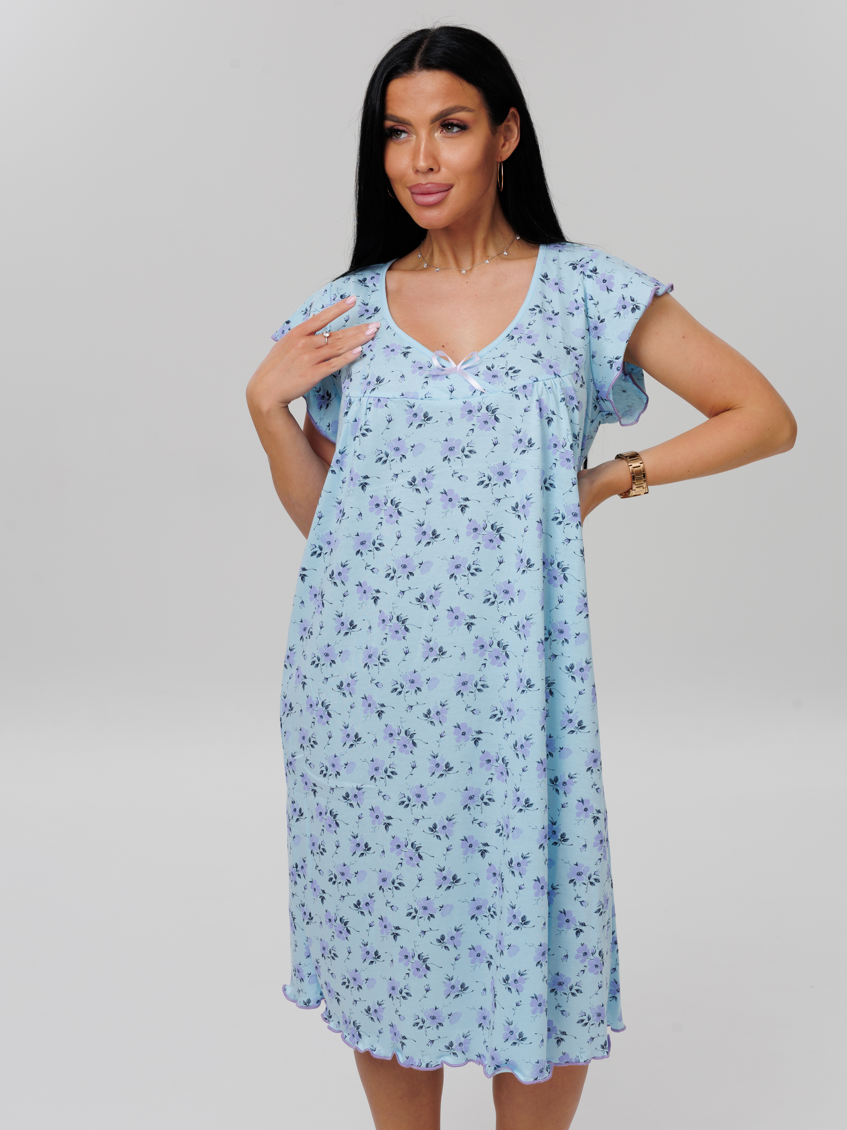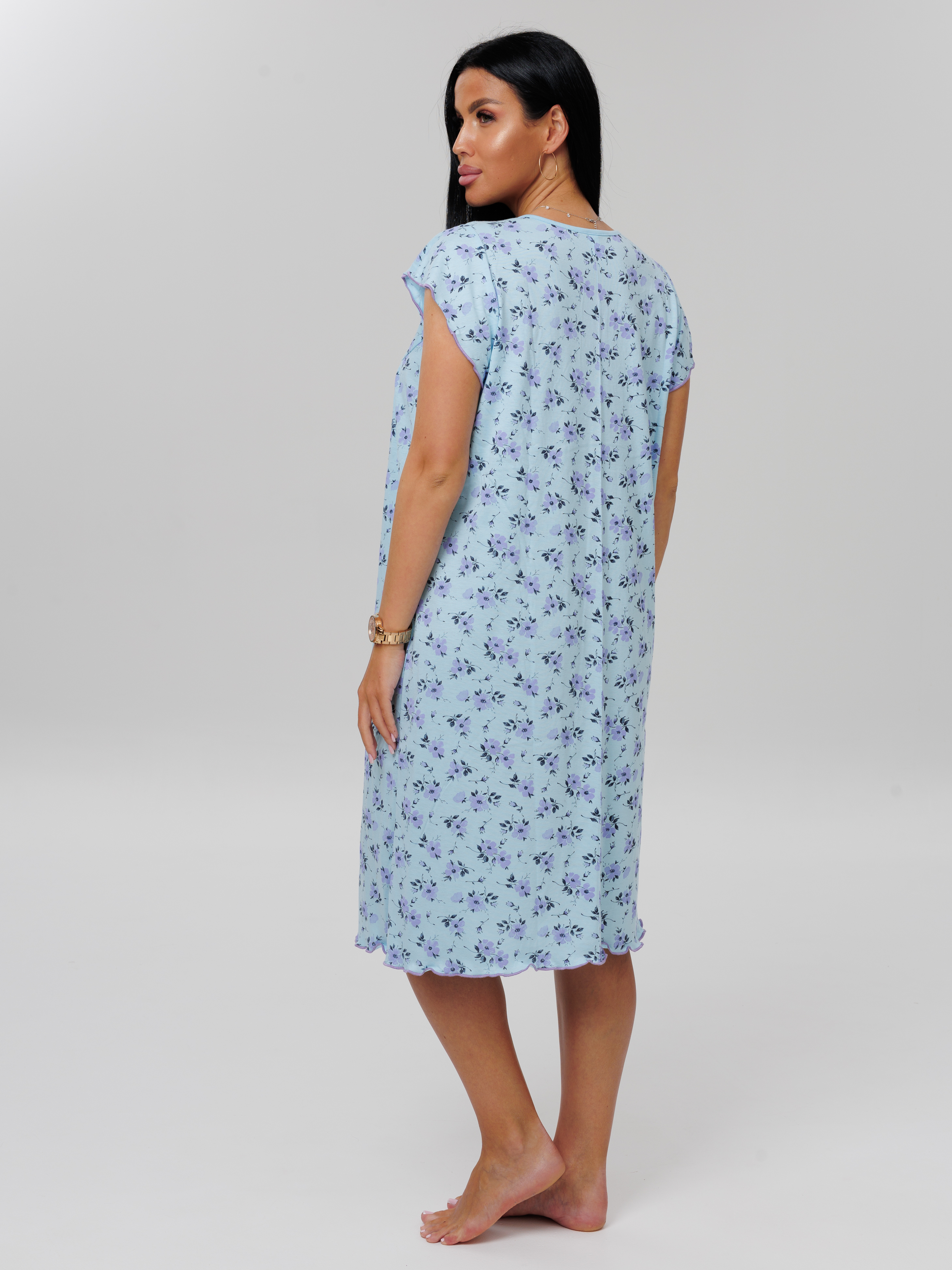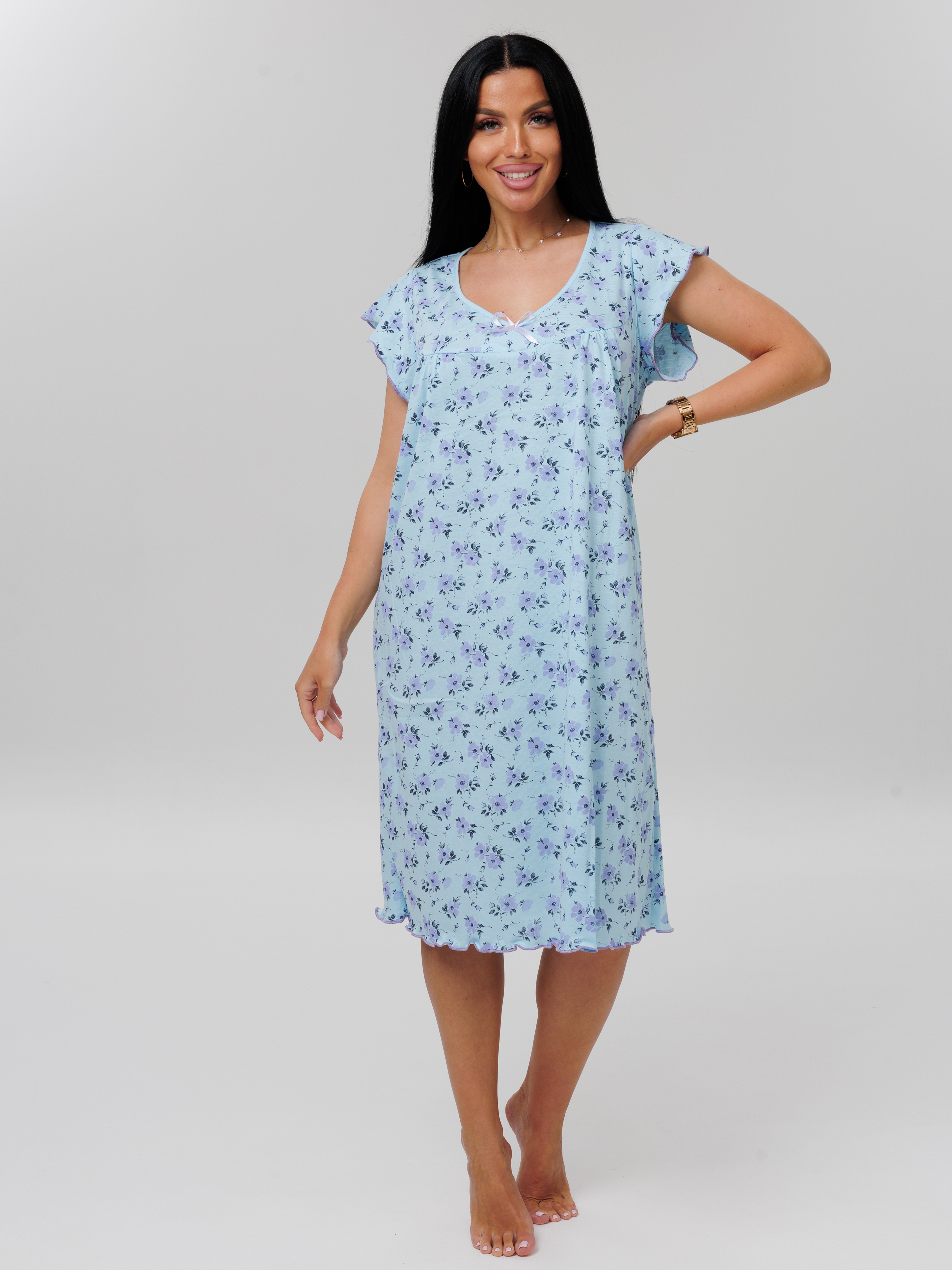 Женская сорочка Сор-71(К) / Голубой (сиреневые цветы)