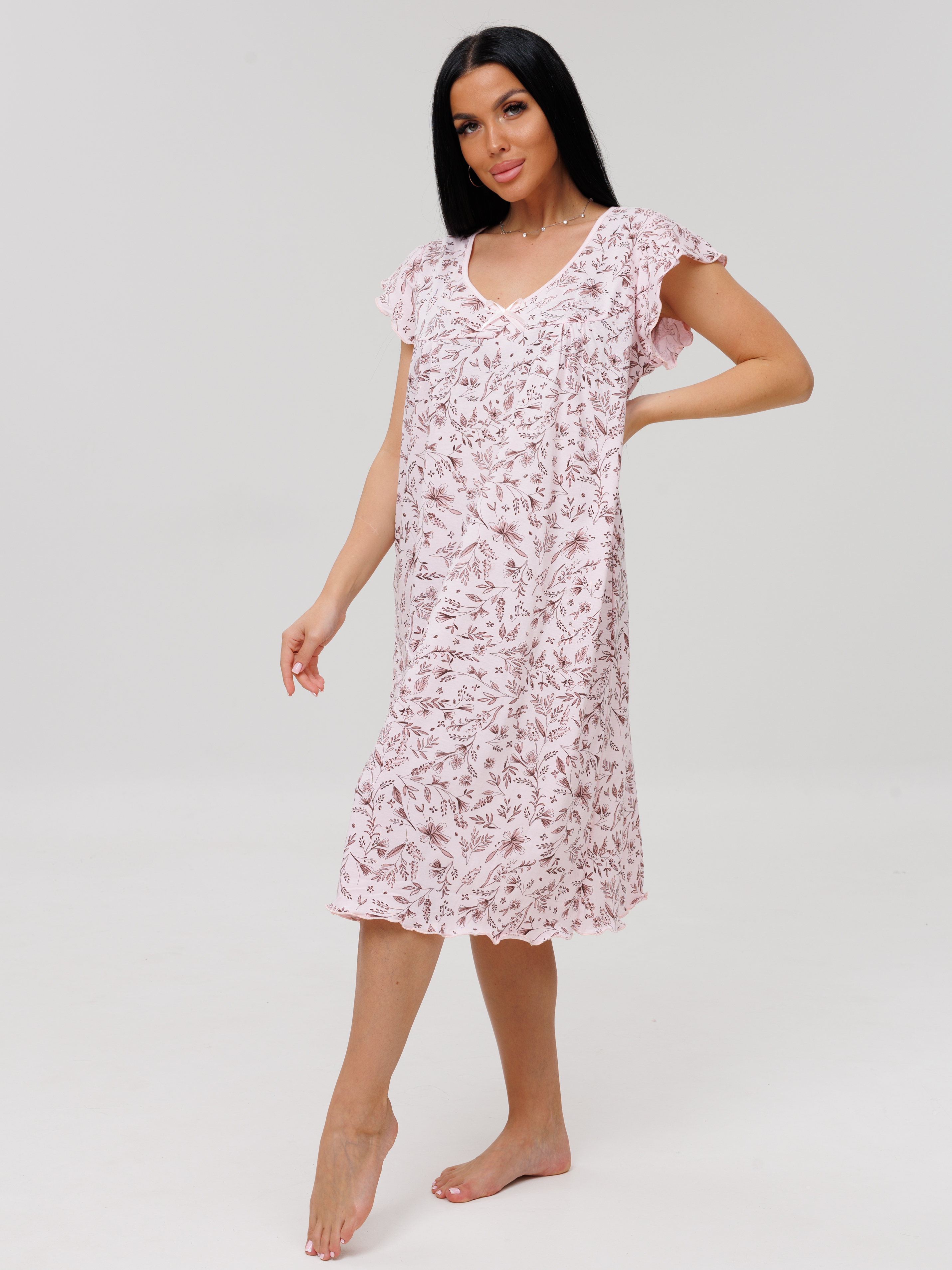 Женская сорочка Сор-71(К) / Пудровый (цветы)