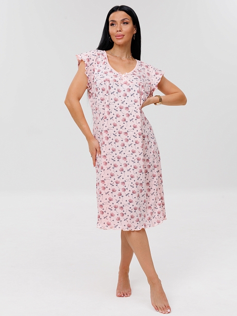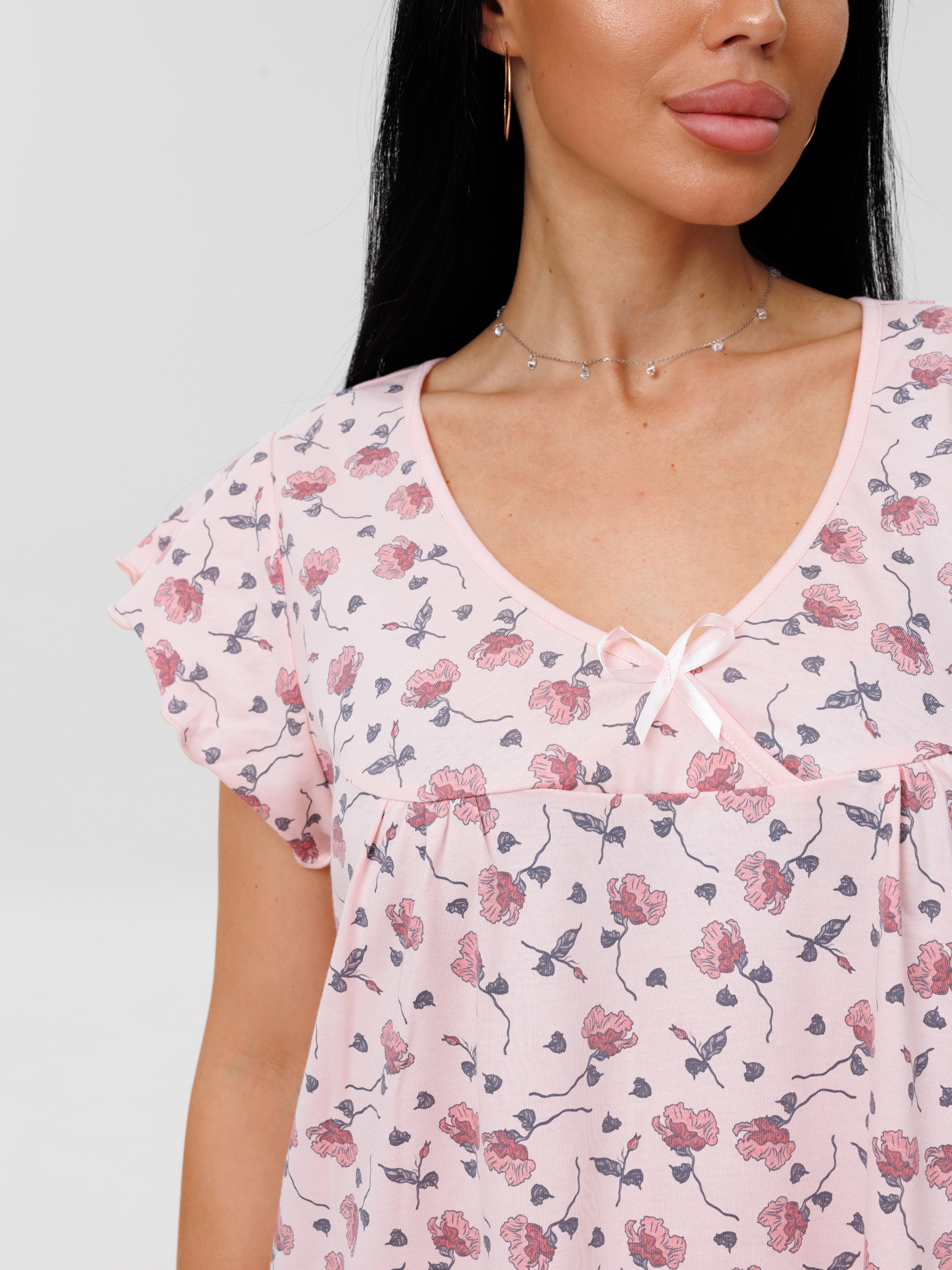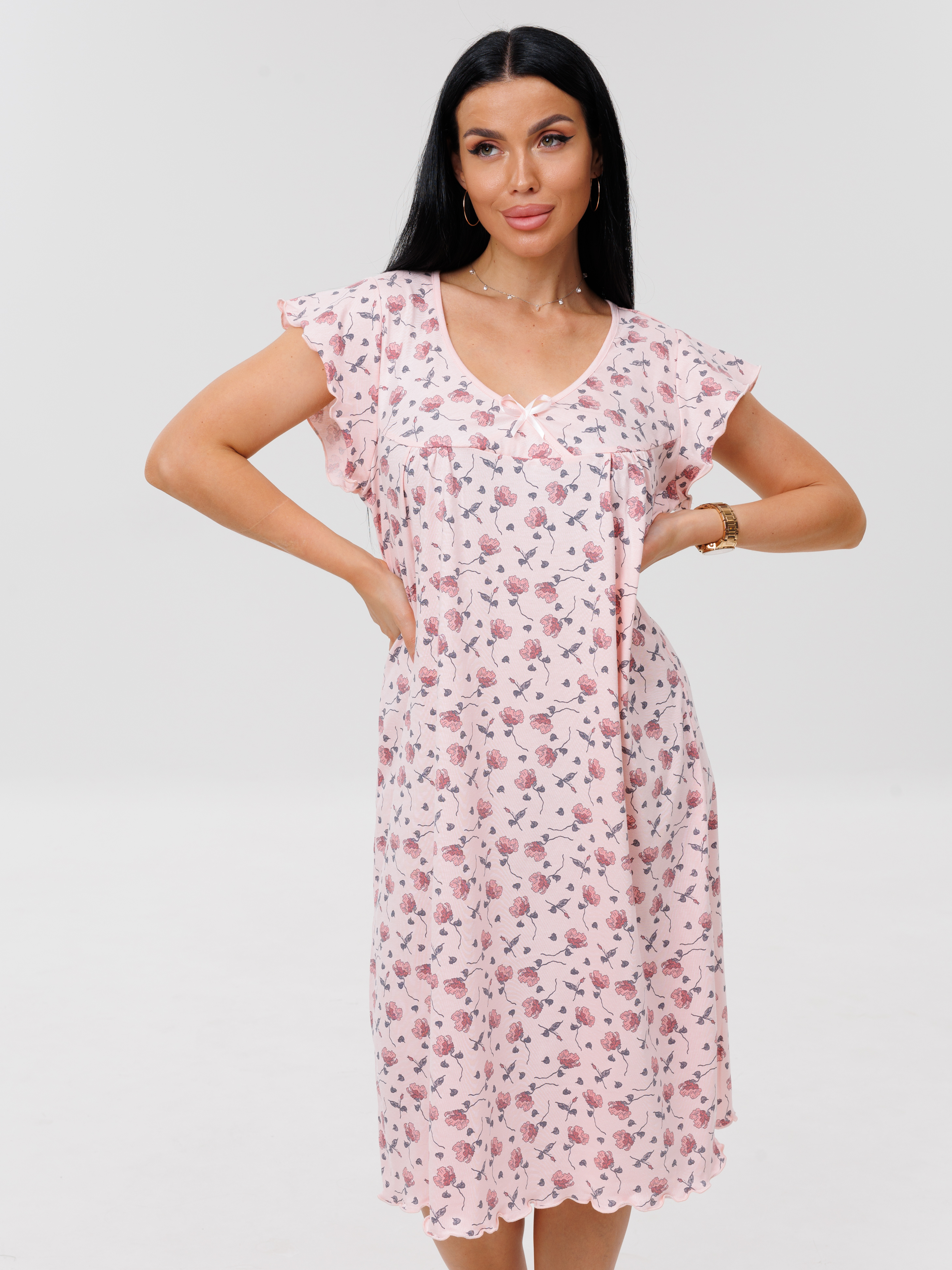 Женская сорочка Сор-71(К) / Розовый (красные цветы)
