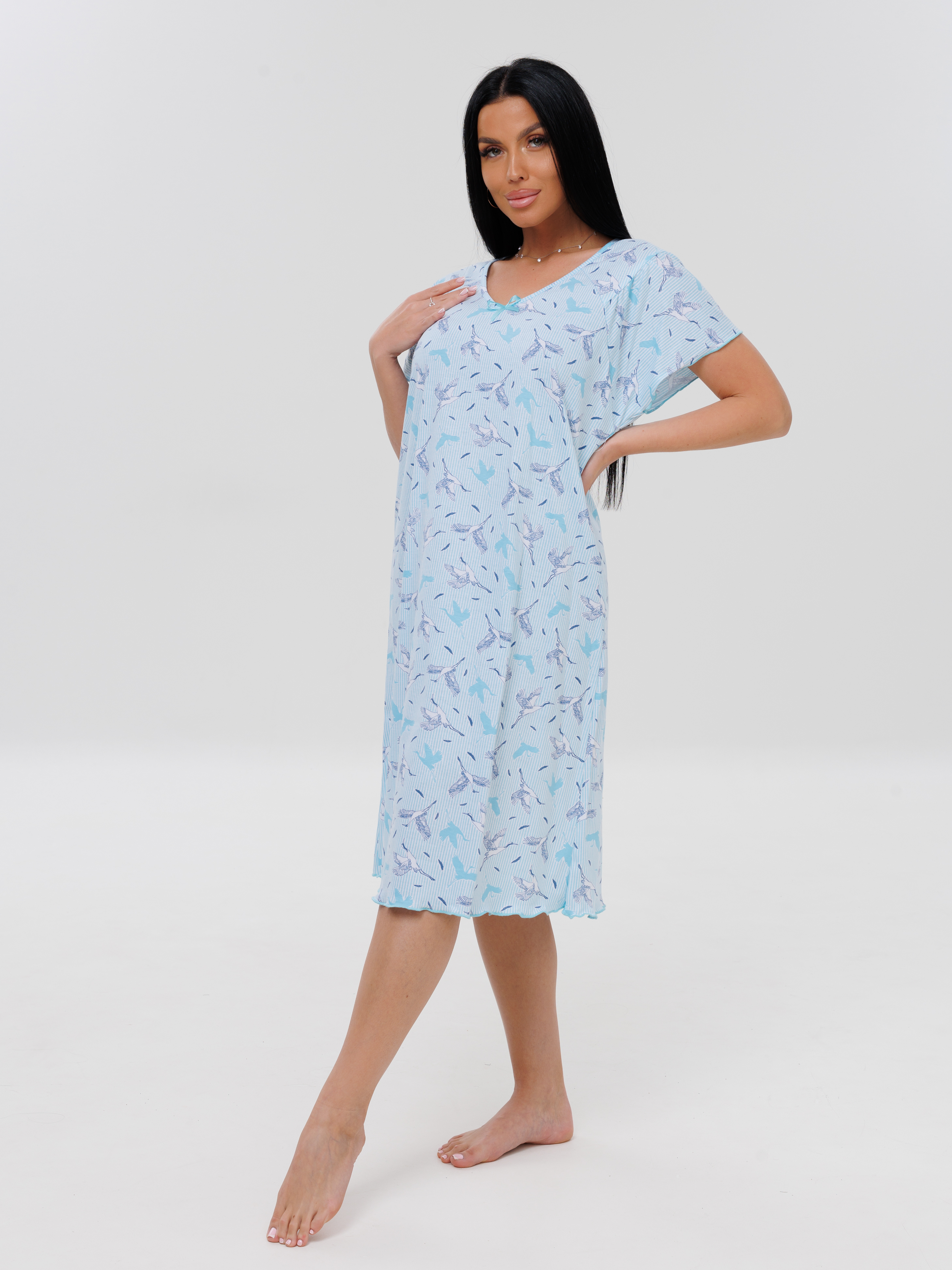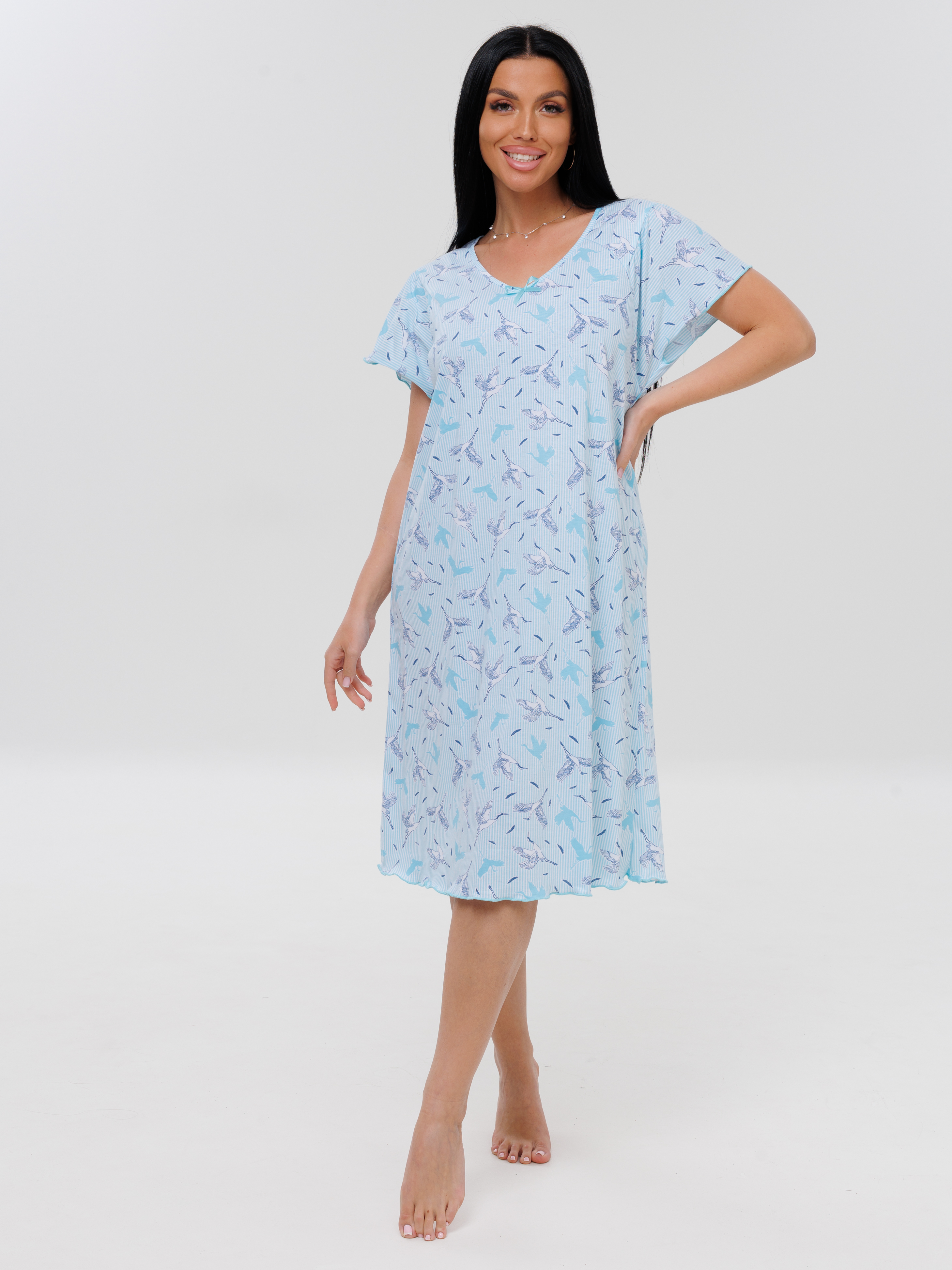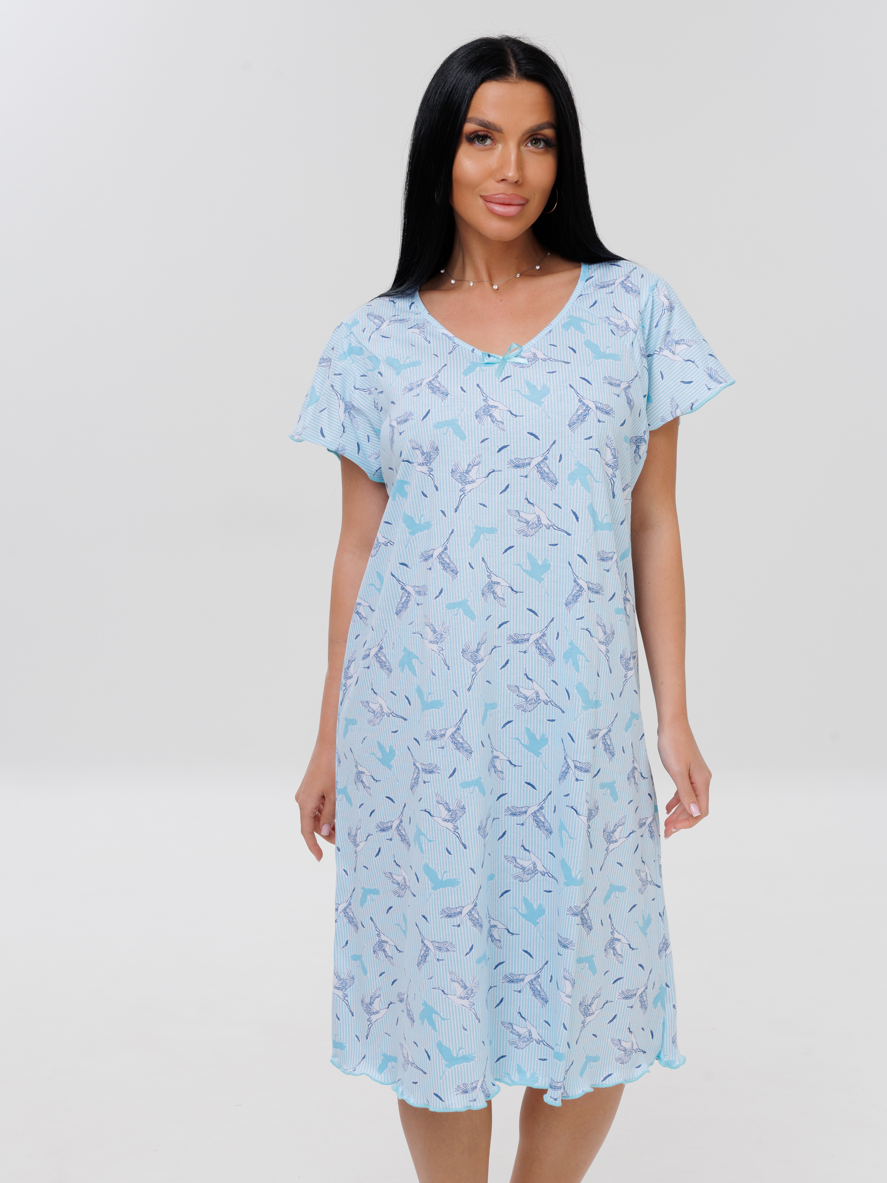 Женская сорочка Сор-73(К) / Голубой (птички)