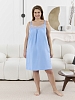 Сорочка женская из гладкокрашеного трикотажного полотна «кулирка», свободного кроя, на бретелях, выполненных из широкой окантовки из основного материала. Нижняя основная деталь полочки присборена по шву стачивания с кружевной кокеткой.