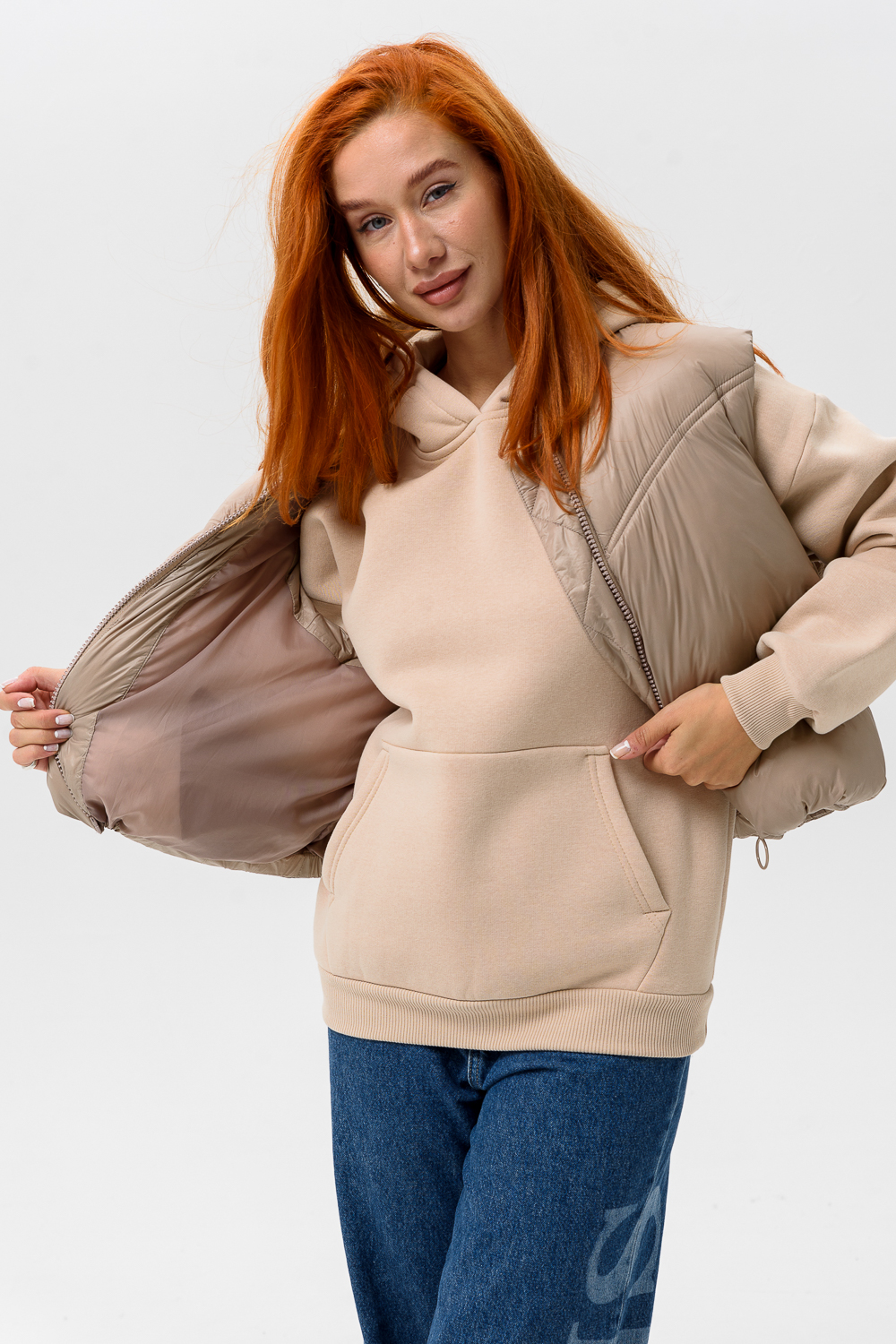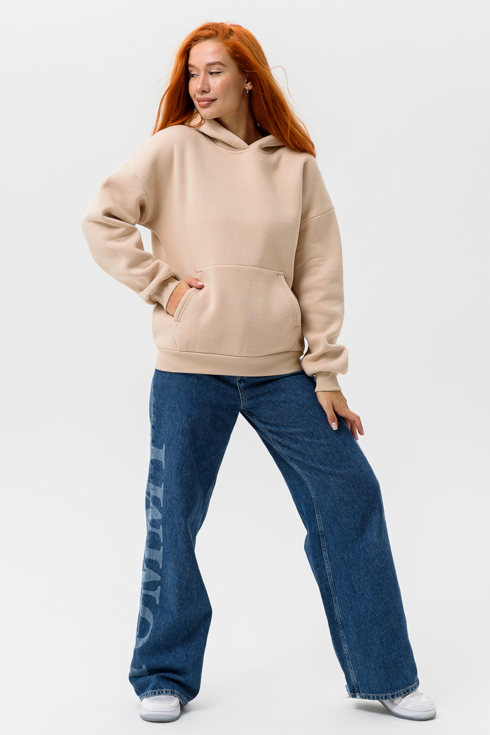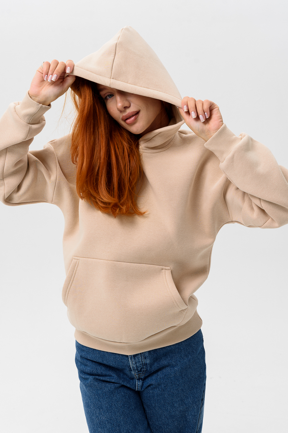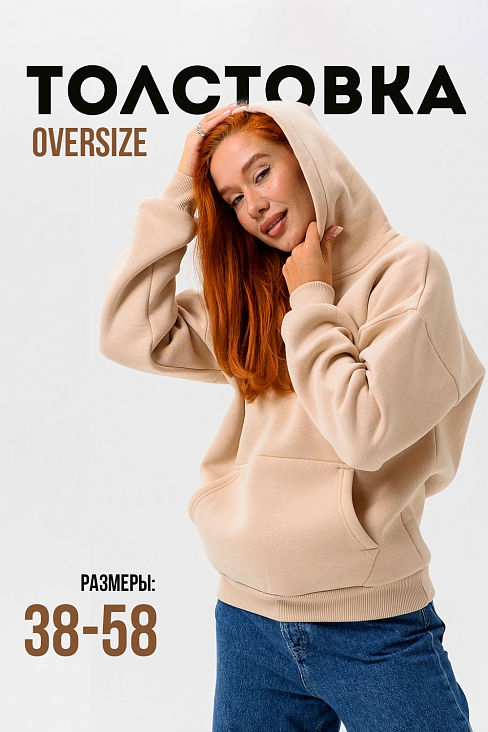 Женская толстовка 14428 оверсайз / бежевый