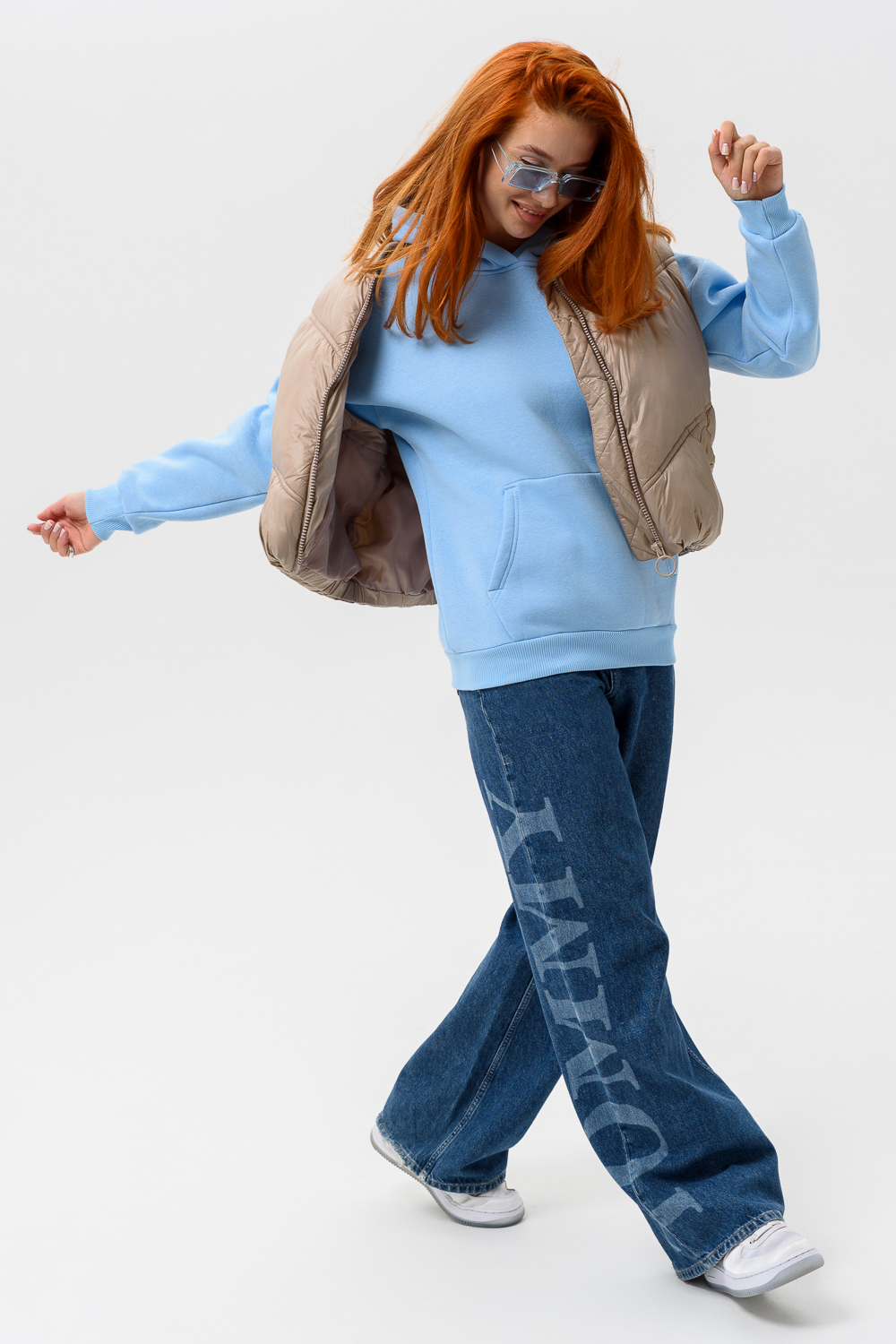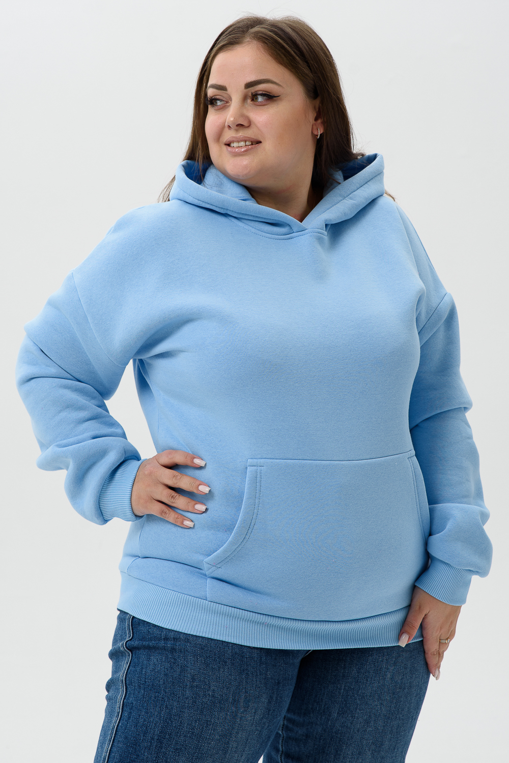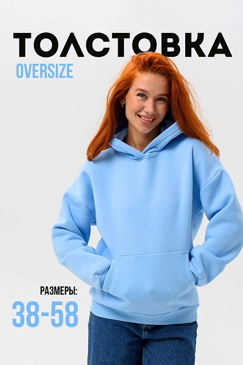 Женская толстовка 14428 оверсайз / голубой