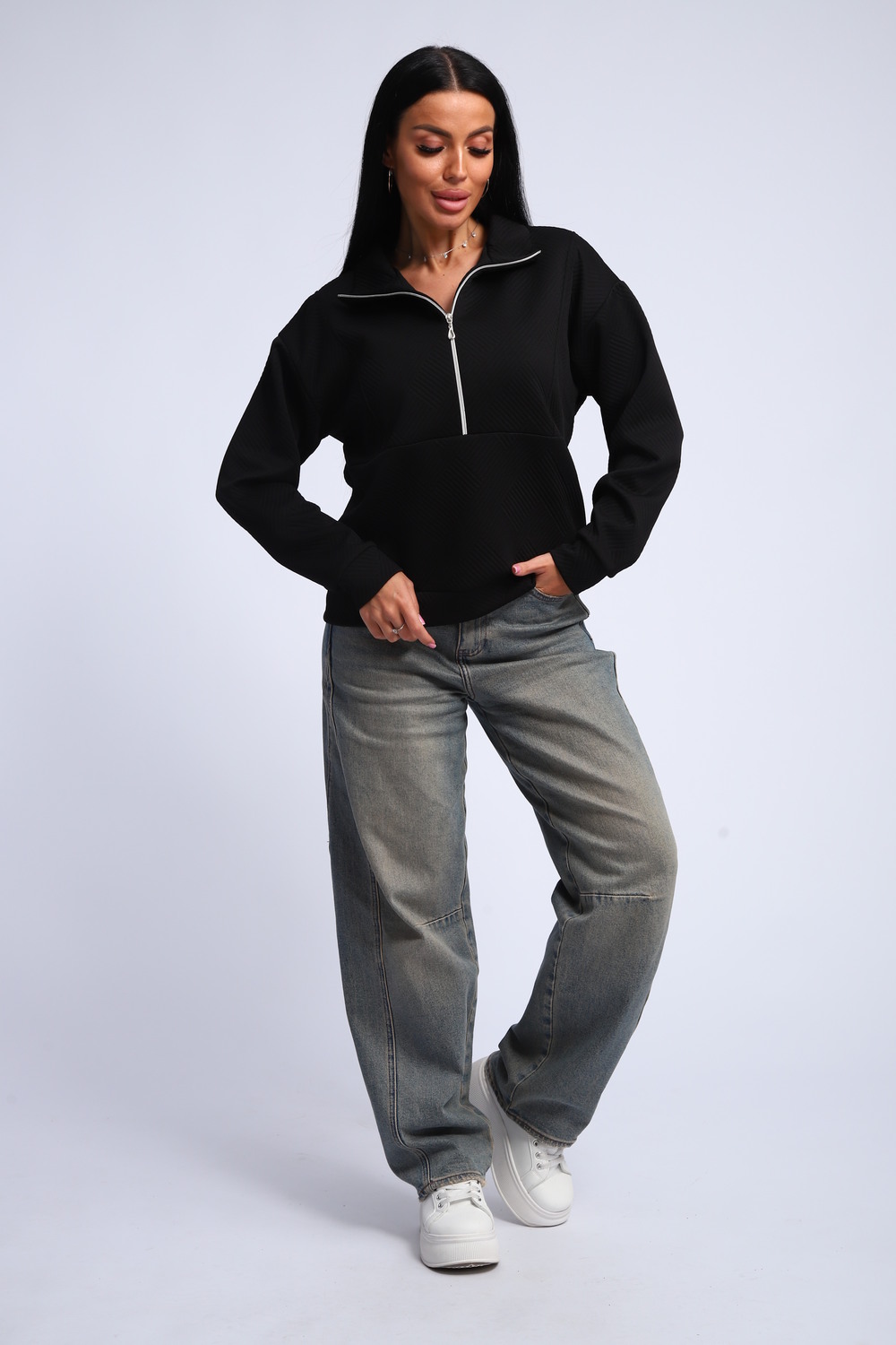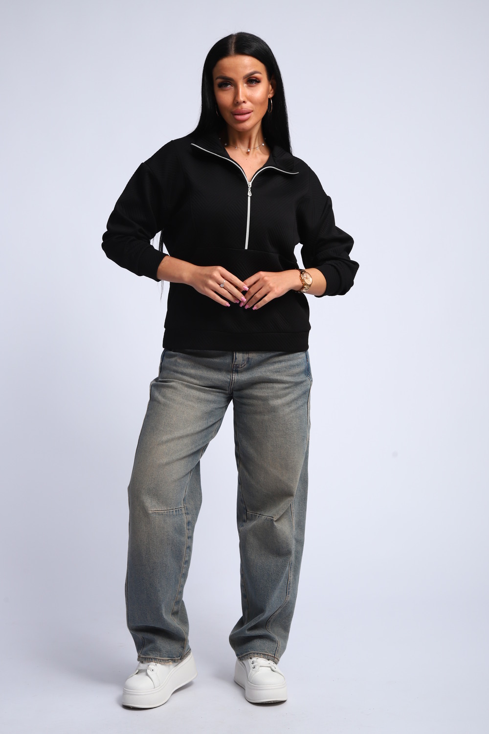 Ищете уютную и стильную женскую толстовку? Наша толстовка из мягкого и теплого футера идеальный выбор! Оригинальный рисунок на ткани делает ее уникальной и неповторимой. Удобный воротник-стойка на молнии защитит от ветра, а манжеты внизу изделия обеспечат комфортную посадку.