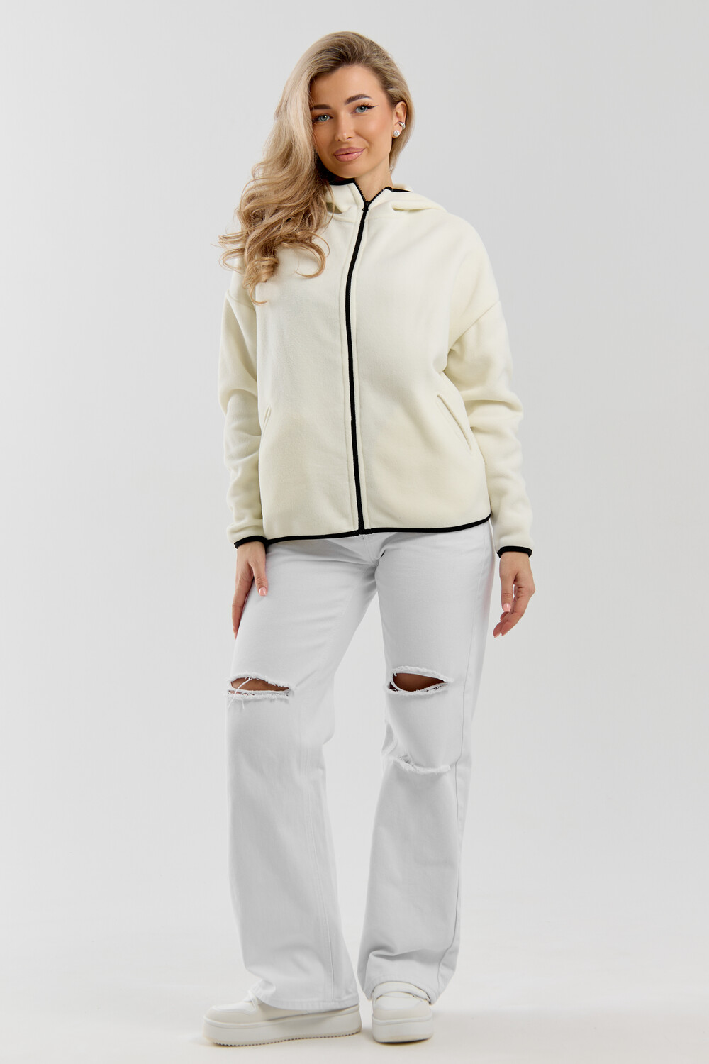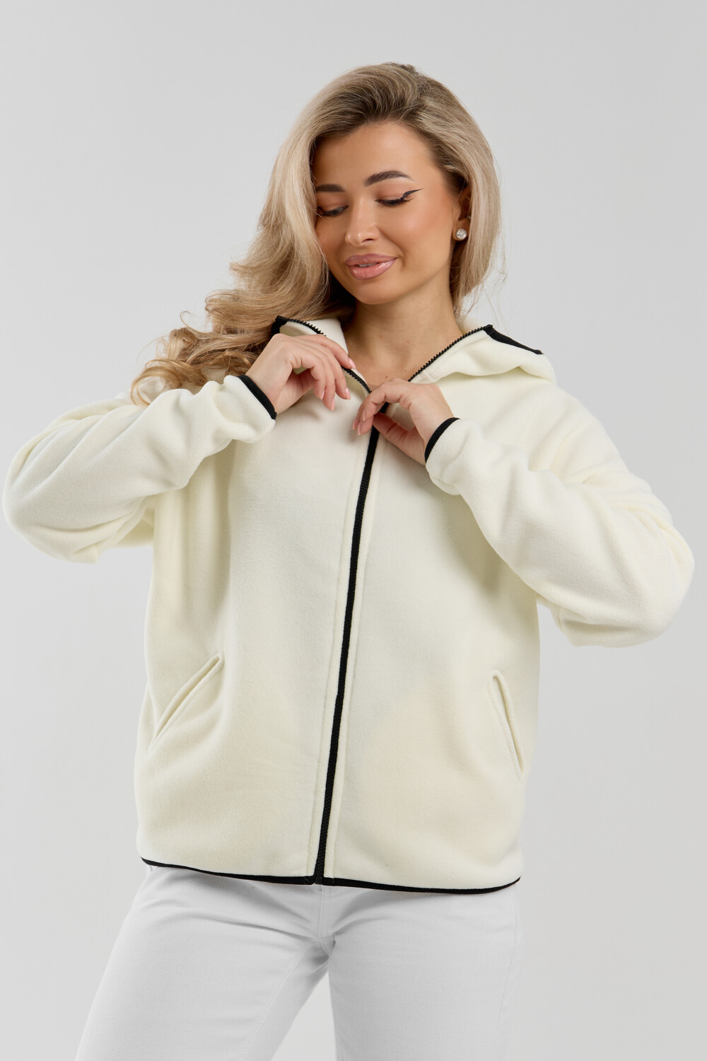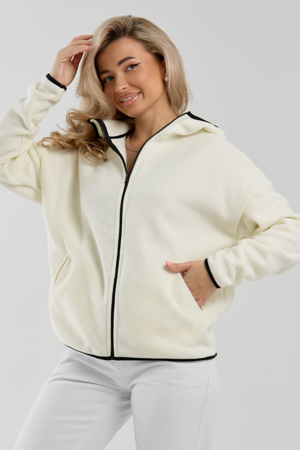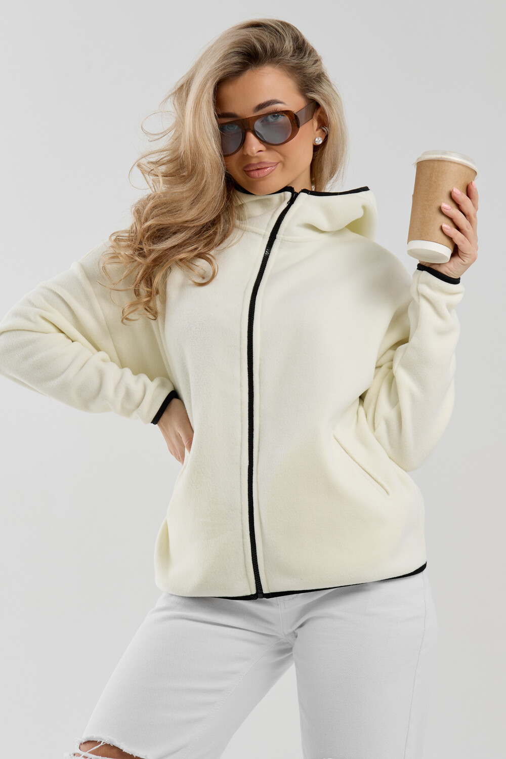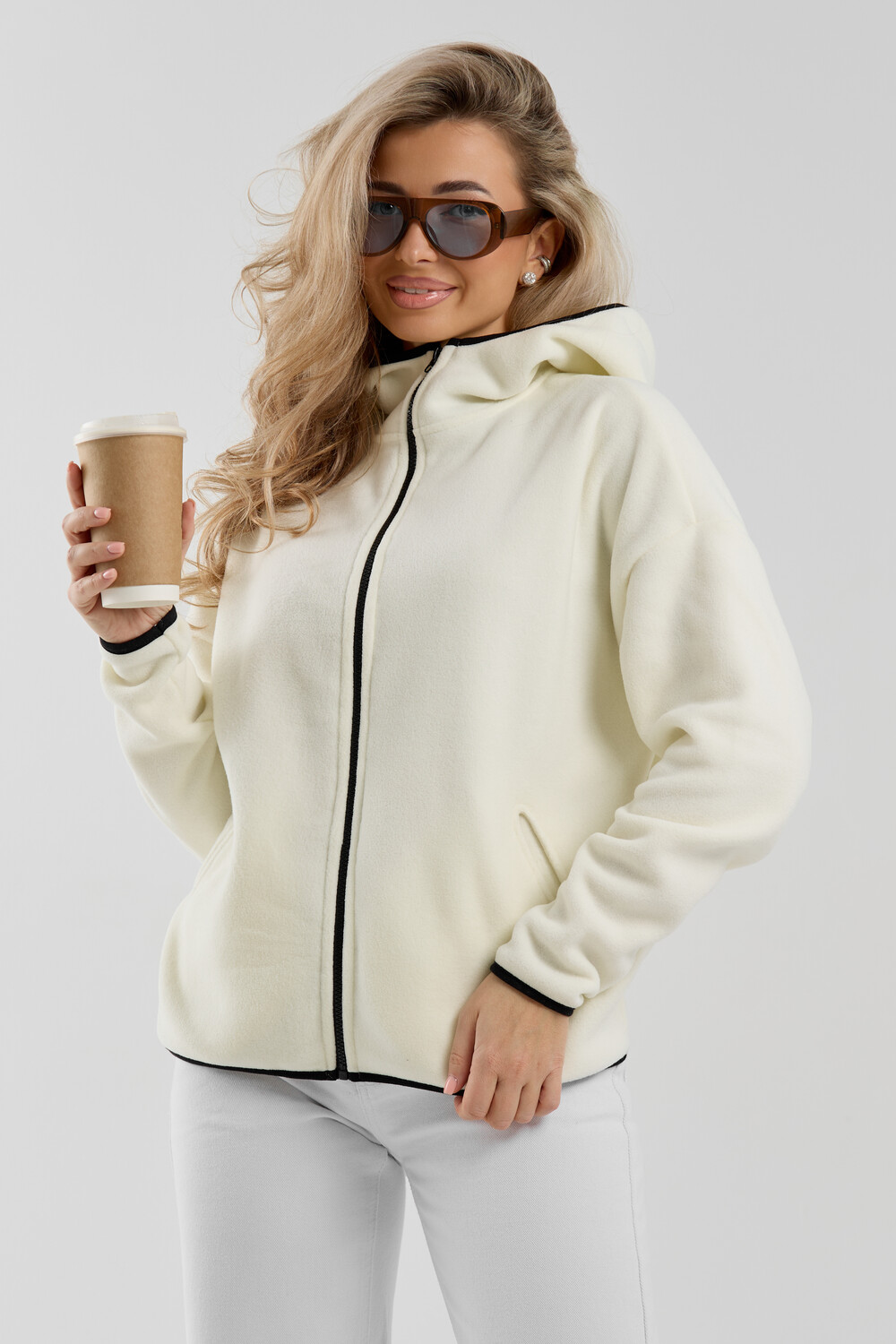 Флисовая кофта на молнии станет незаменимой вещью в вашем гардеробе. Модель выполнена из плотной, мягкой ткани , что делает ее очень теплой и приятной к телу. Благодаря высокому вороту, а также комфортному капюшону, она надежно защитит ваше горло от прохлады в любое время года будь то осень, весна, зима или прохладное лето. Качественная молния добавляет стильный акцент, а удобный замок обеспечивает легкое надевание и снятие. Флисовая кофточка помогает создавать стильные образы. Ее универсальный крой позволяет использовать ее как повседневную одежду для прогулок, так и для дома. Модный фасон подойдет для женщин любого телосложения. Модель представлена без яркого принта, что делает ее универсальной базой. Забудьте о зимних холодах толстовка подарит уют. Наша зипка, олимпийка, мастерка или джемпер с удобными большими прорезными карманами станет вашим спутником в создании спортивных или расслабленных аутфитов. Толстовка на молнии с высоким воротником и капюшоном подойдут для создания модных образов в стиле кэжуал, спорт и спортшик. Используйте ее как куртку для активного отдыха или как базовый лук на каждый день. Настоящий тренд сезона, который идеально впишется в ваш образ в любое время. Почувствуйте себя уютно в нашей плюшевой и стильной зипке или зип-кофте.