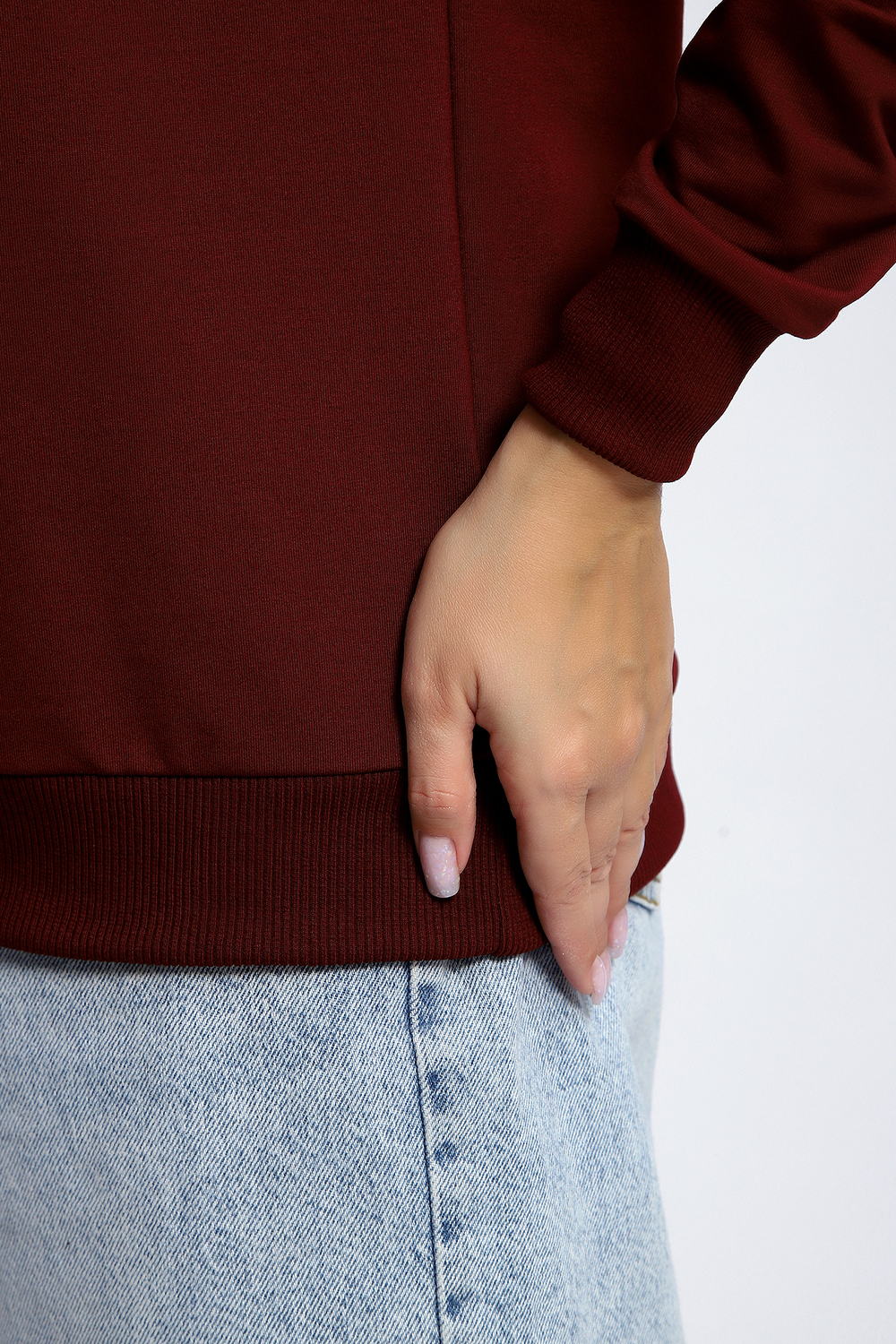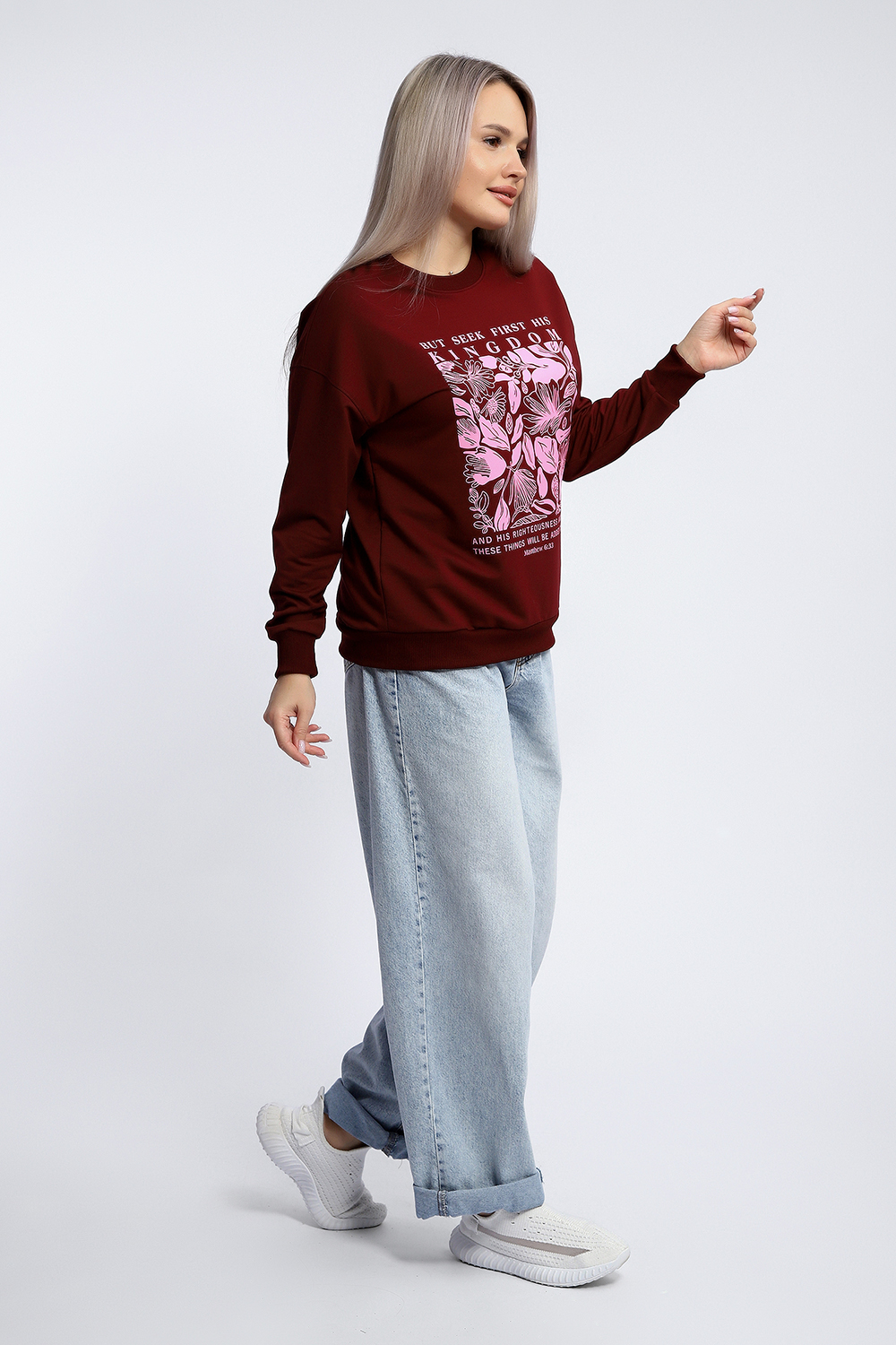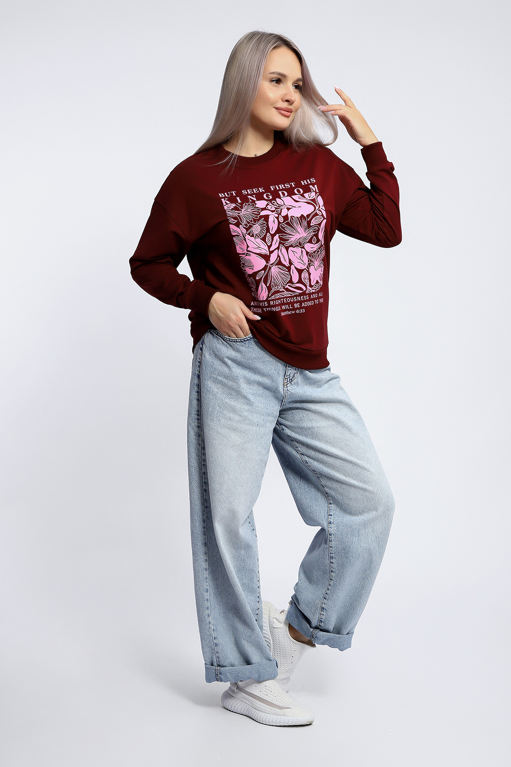 Толстовка свободного кроя оверсайз со спущенной линией плеча прекрасный вариант для прохладной погоды! Мягкое, эластичное кашкорсе в тон ткани использовано для отделки горловины, манжет и пояса. На полочке декоративный принт.