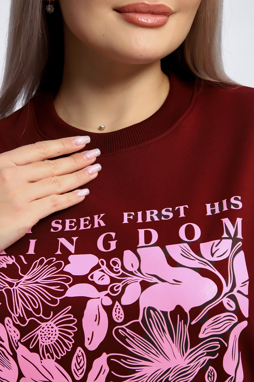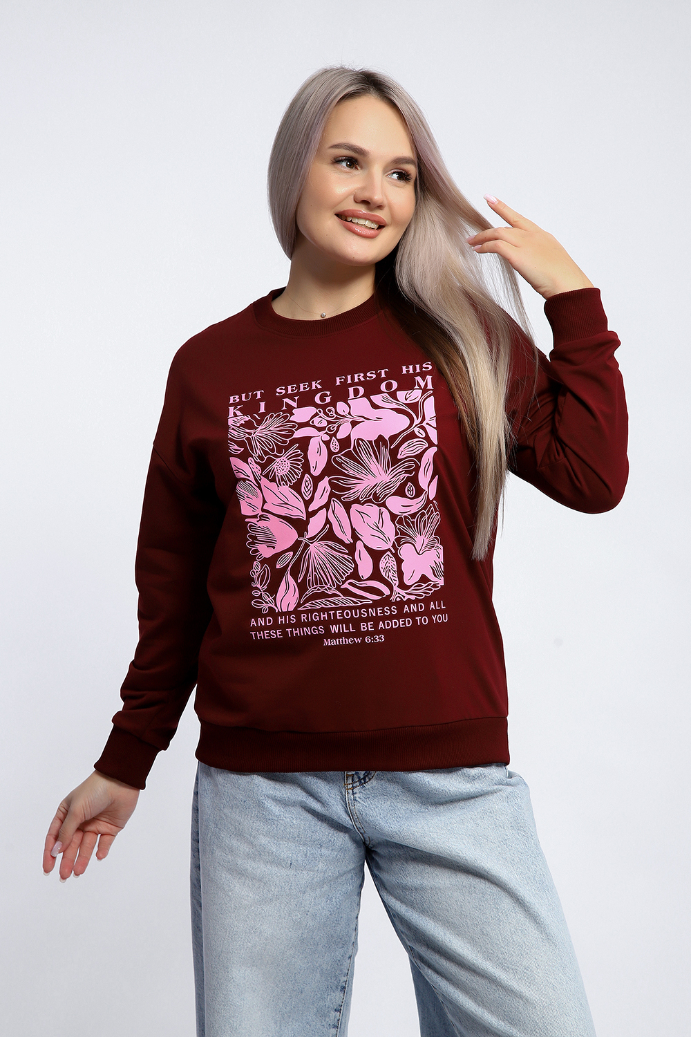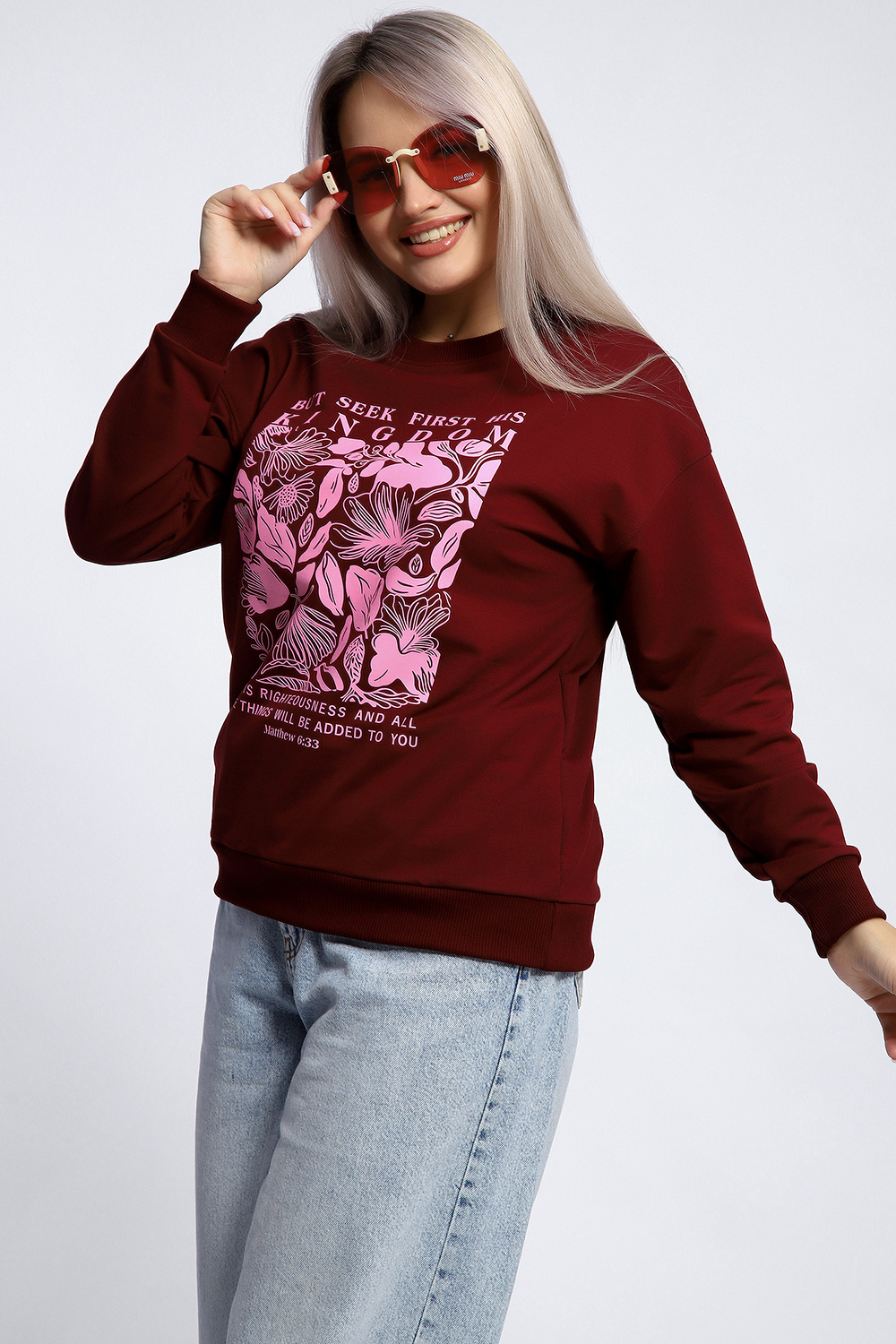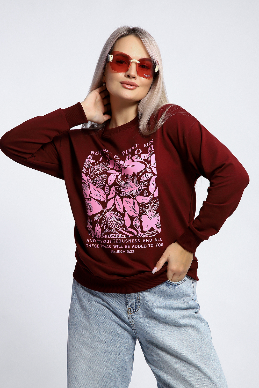 Толстовка свободного кроя оверсайз со спущенной линией плеча прекрасный вариант для прохладной погоды! Мягкое, эластичное кашкорсе в тон ткани использовано для отделки горловины, манжет и пояса. На полочке декоративный принт.