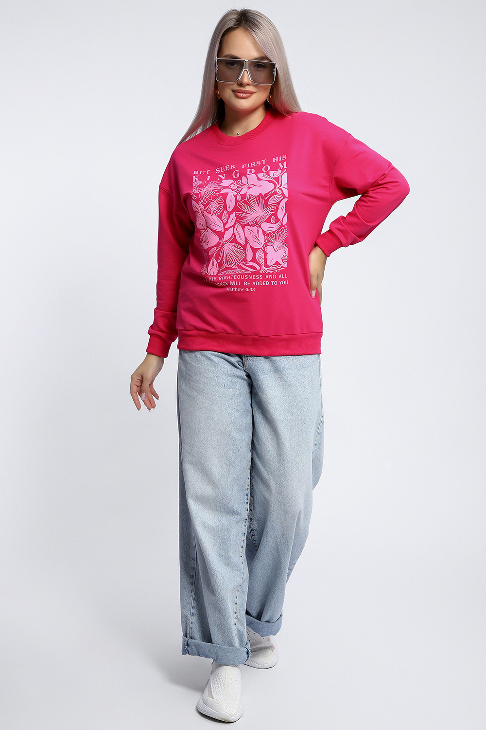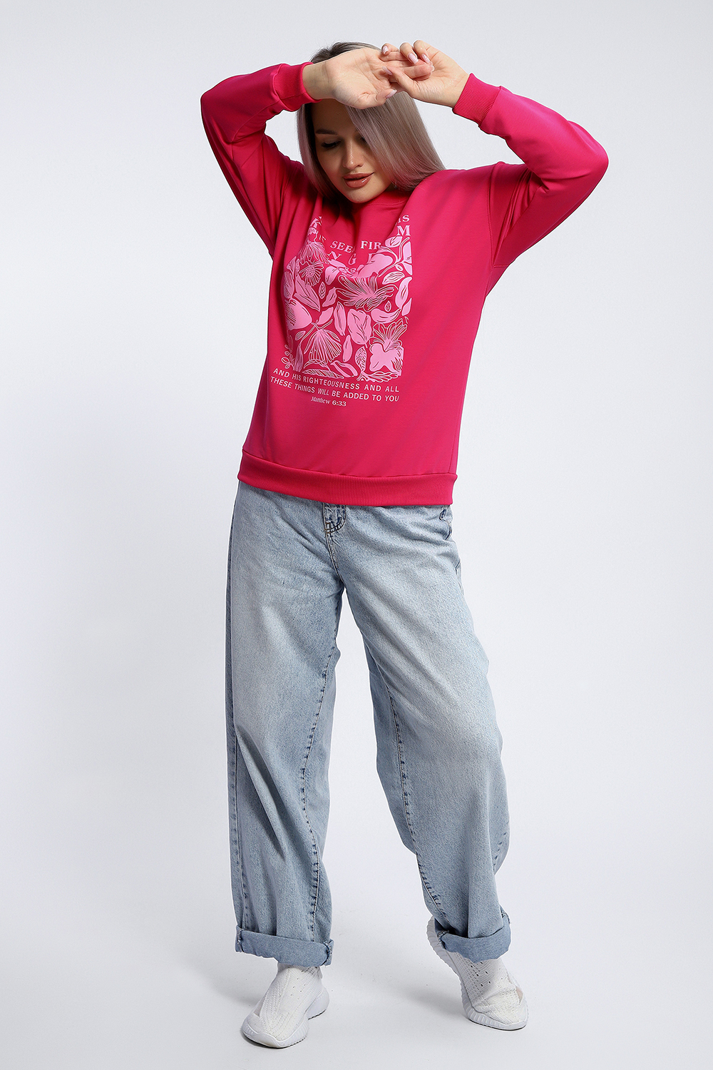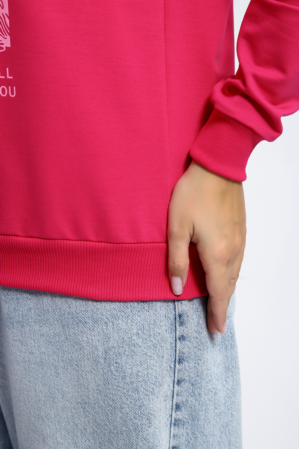 Толстовка свободного кроя оверсайз со спущенной линией плеча прекрасный вариант для прохладной погоды! Мягкое, эластичное кашкорсе в тон ткани использовано для отделки горловины, манжет и пояса. На полочке декоративный принт.