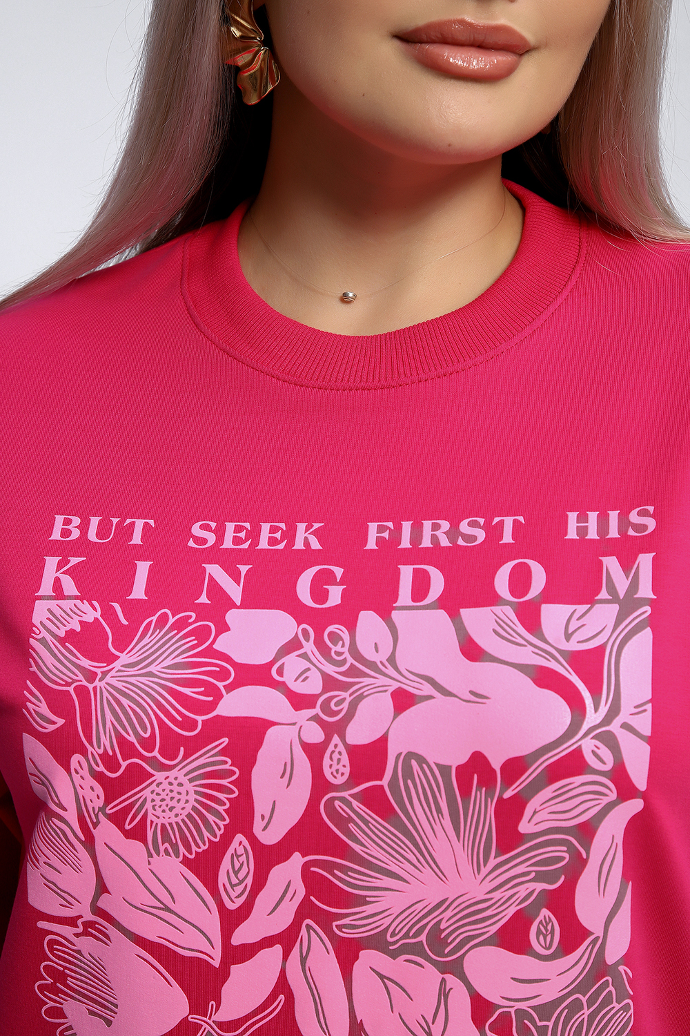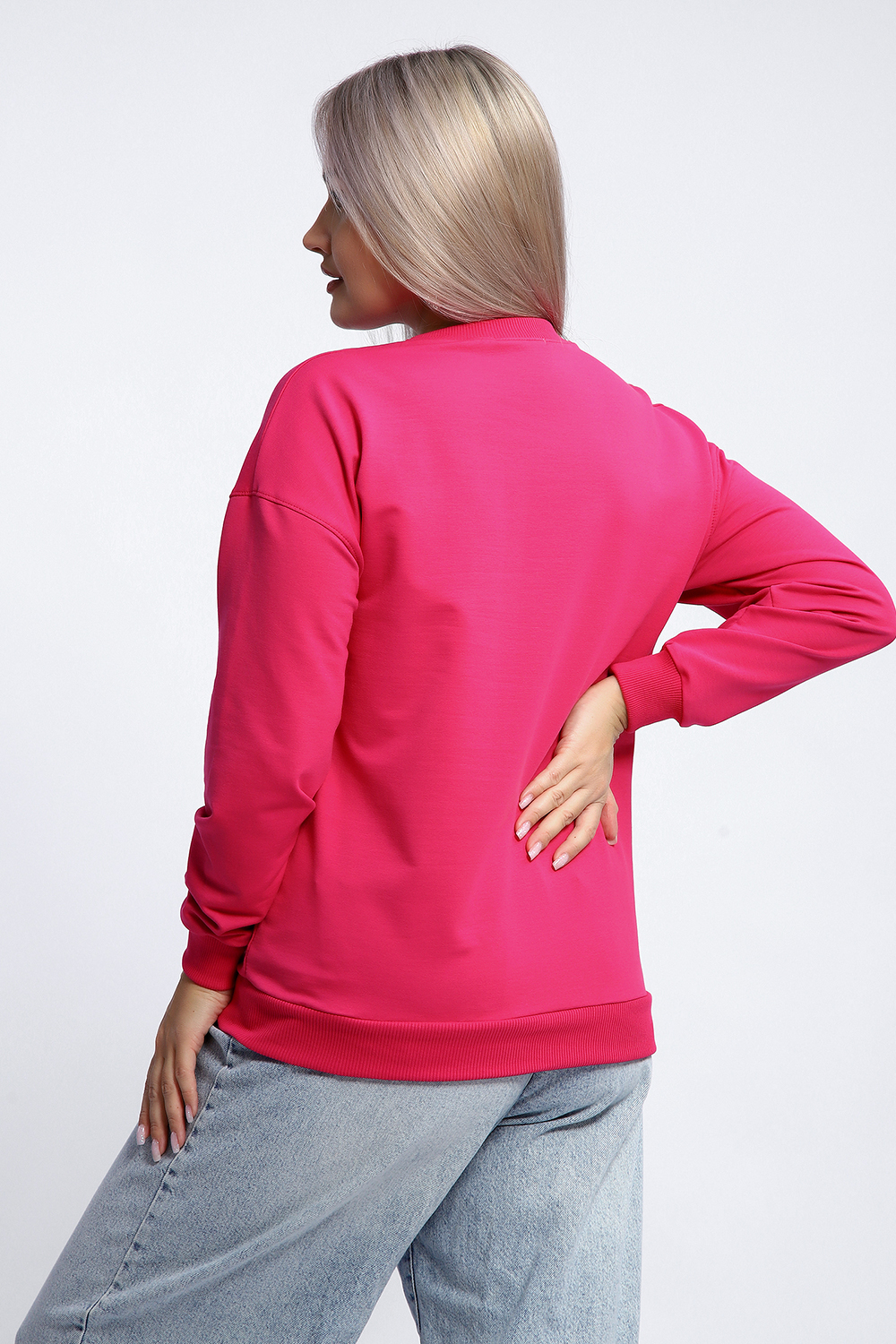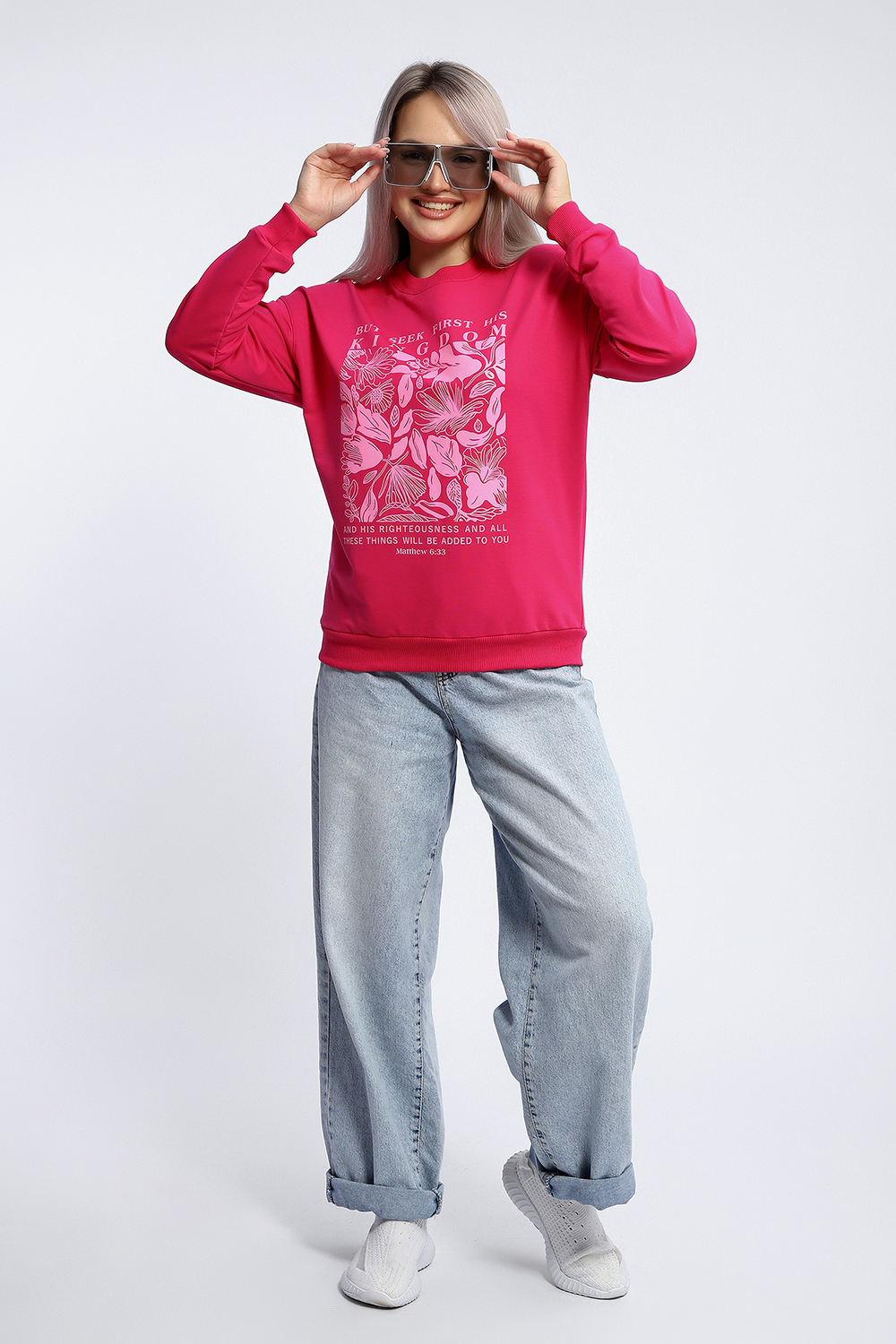 Толстовка свободного кроя оверсайз со спущенной линией плеча прекрасный вариант для прохладной погоды! Мягкое, эластичное кашкорсе в тон ткани использовано для отделки горловины, манжет и пояса. На полочке декоративный принт.