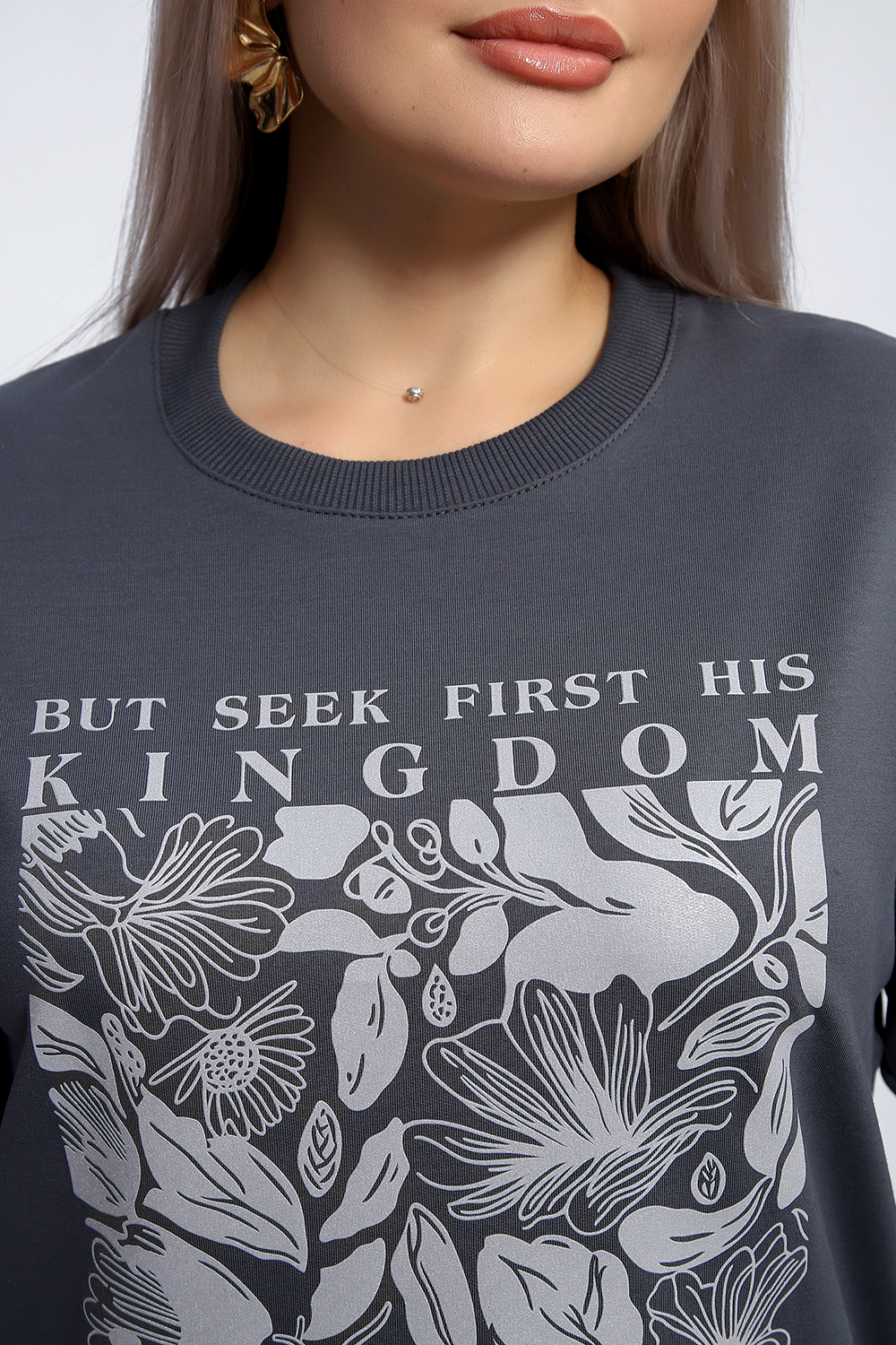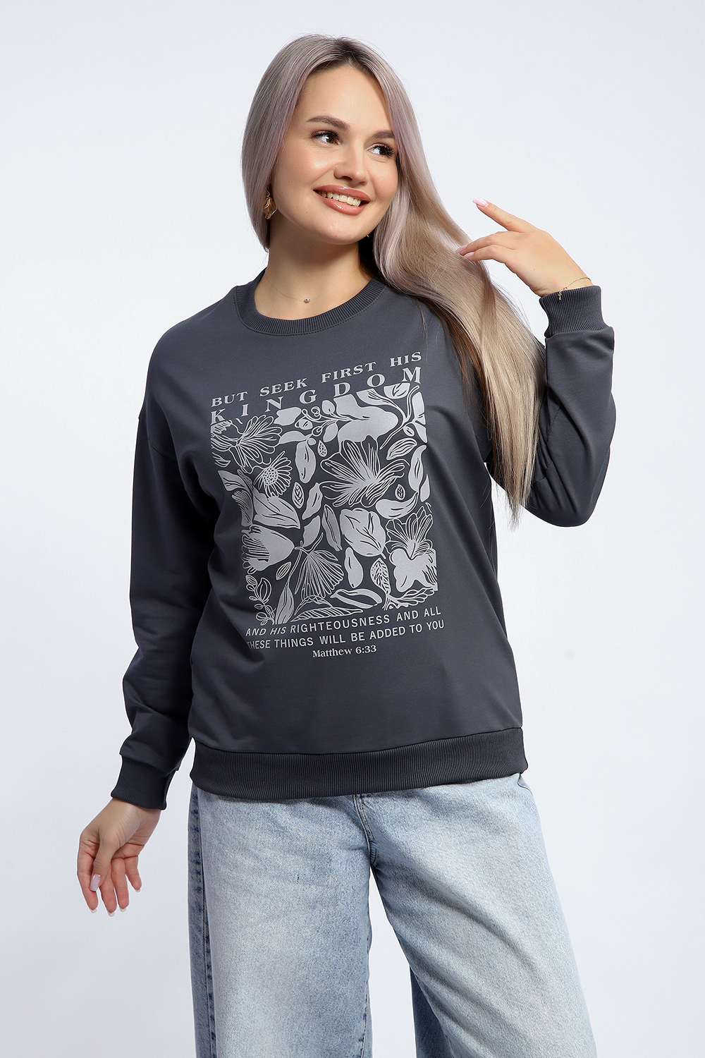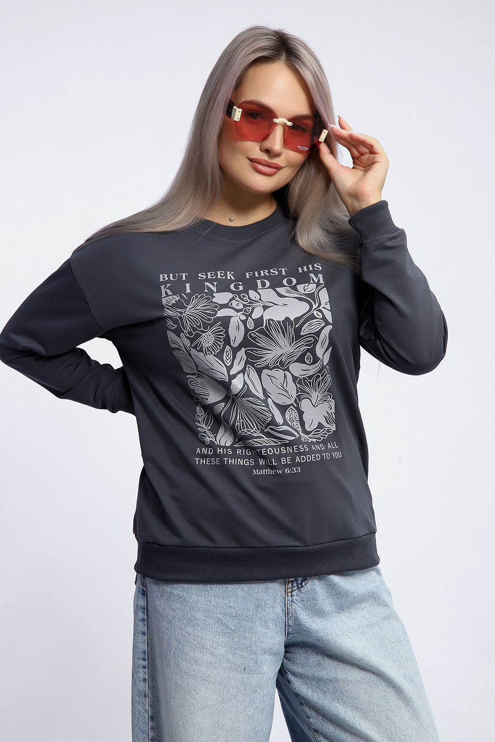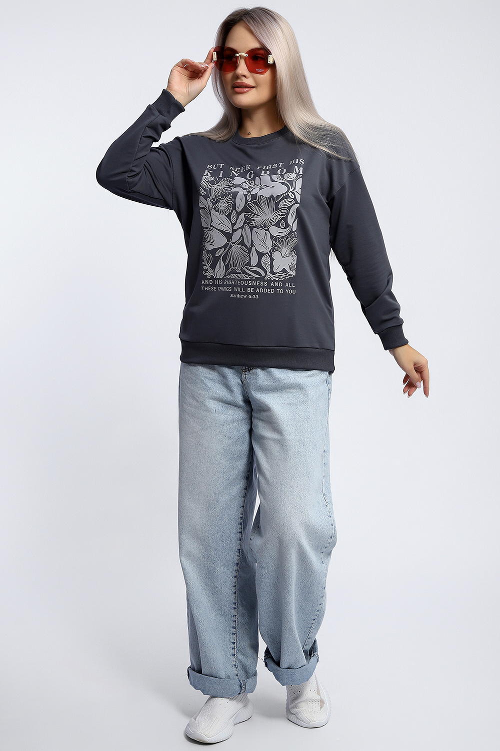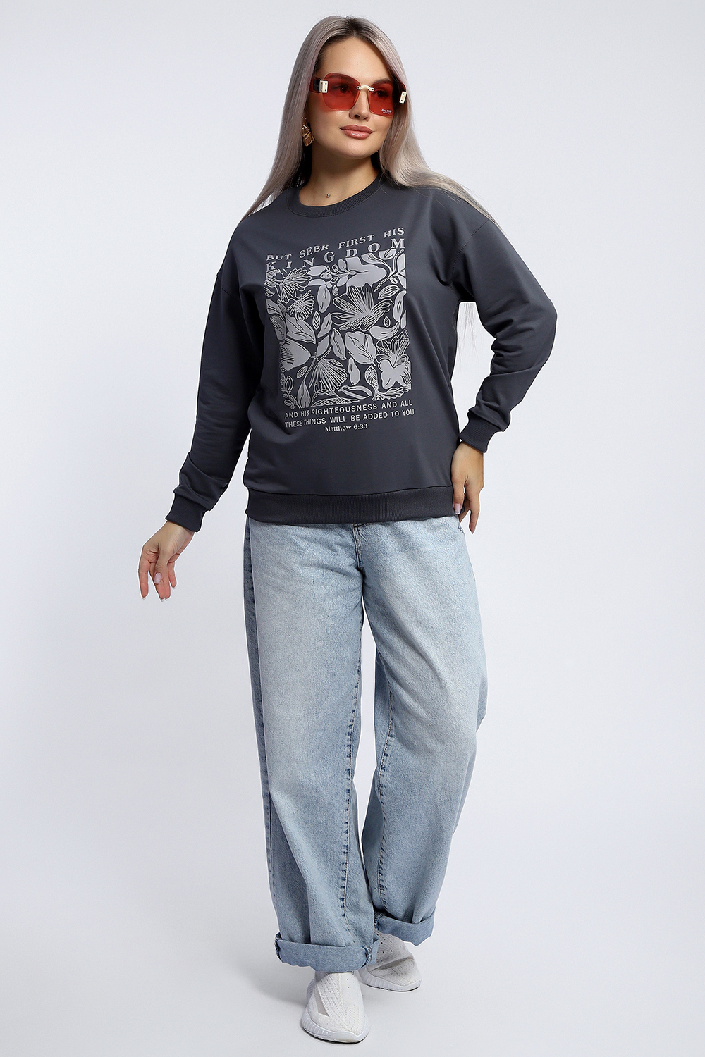 Толстовка свободного кроя оверсайз со спущенной линией плеча прекрасный вариант для прохладной погоды! Мягкое, эластичное кашкорсе в тон ткани использовано для отделки горловины, манжет и пояса. На полочке декоративный принт.
