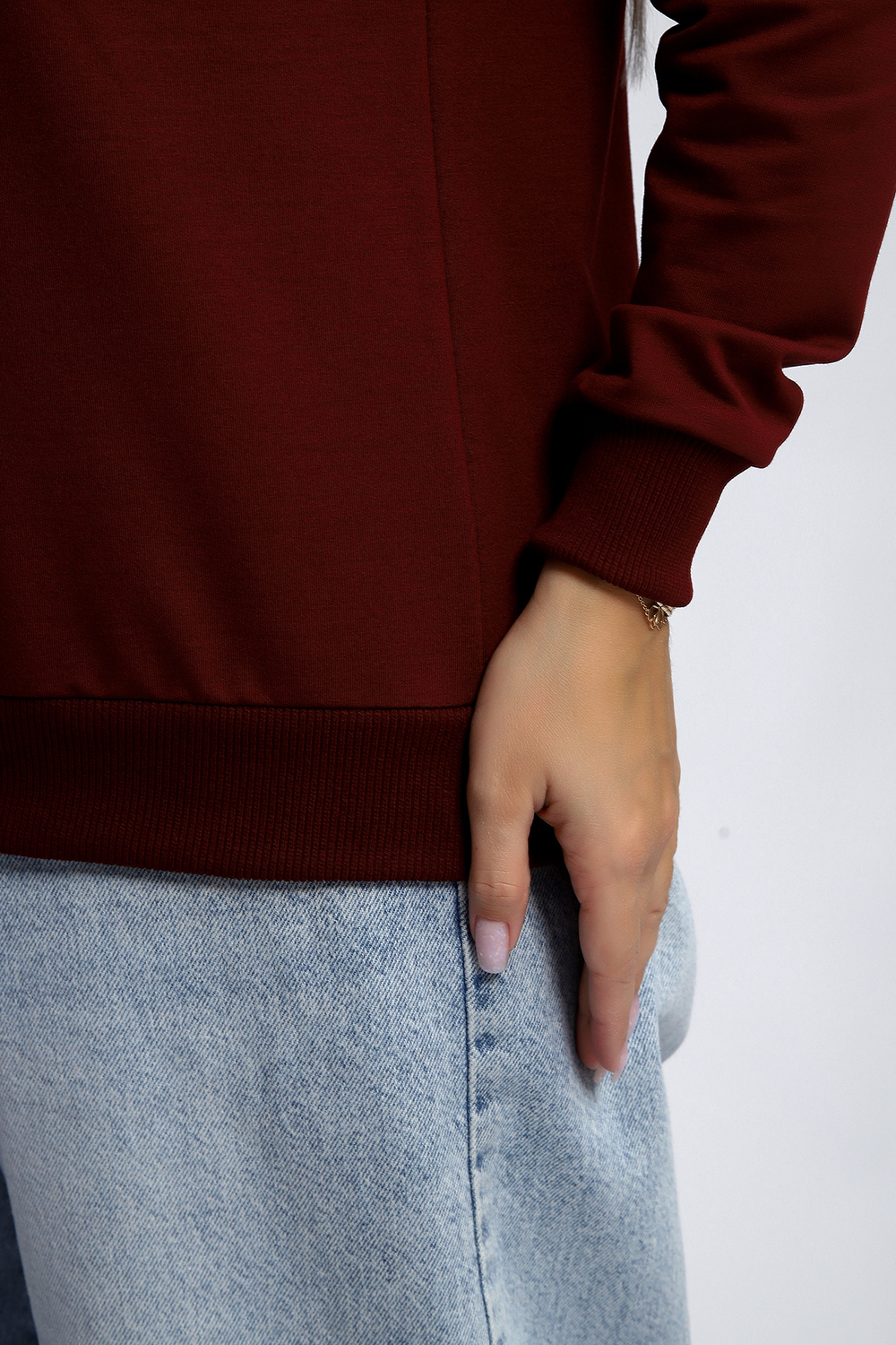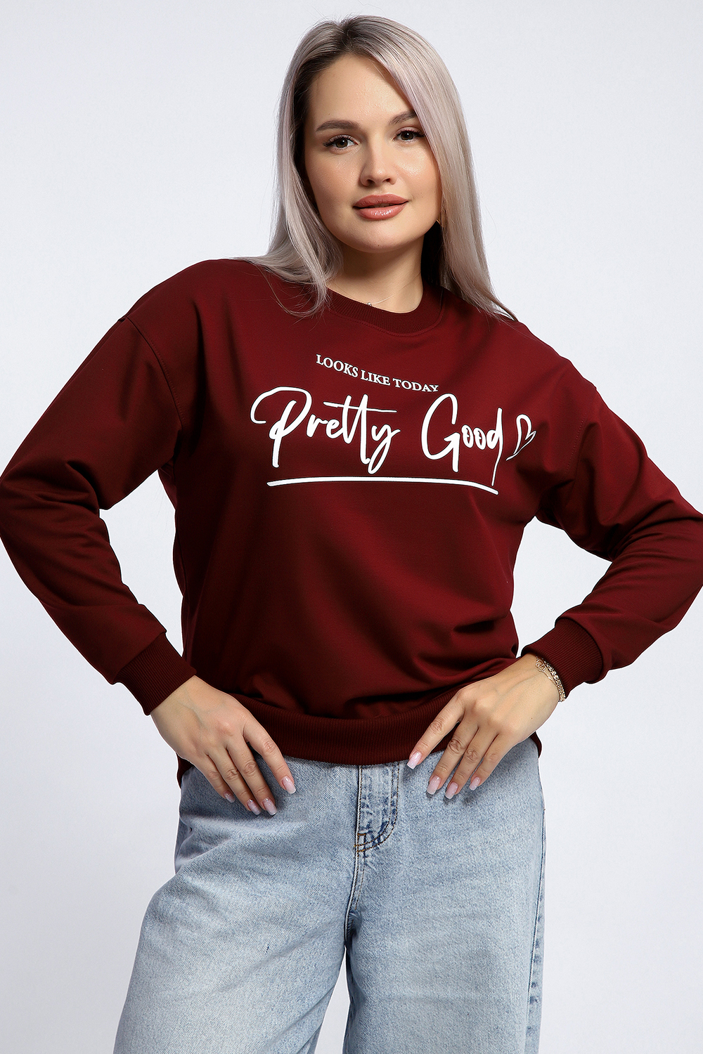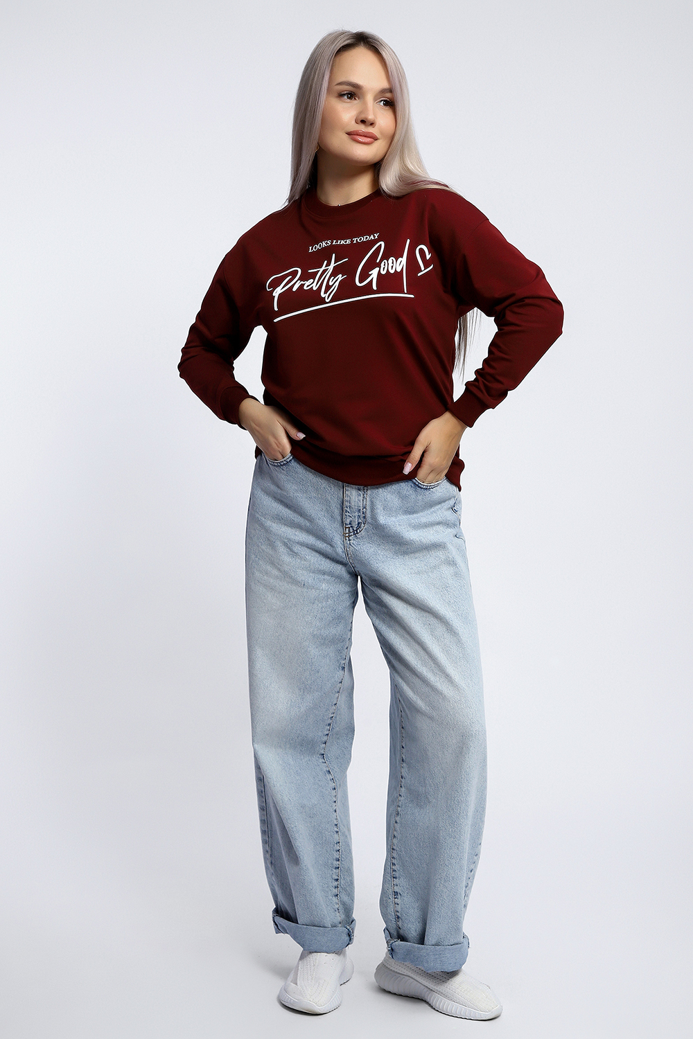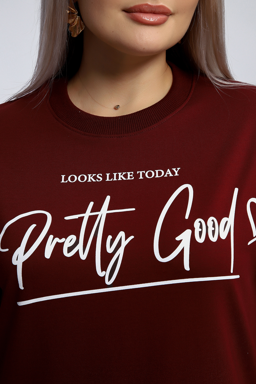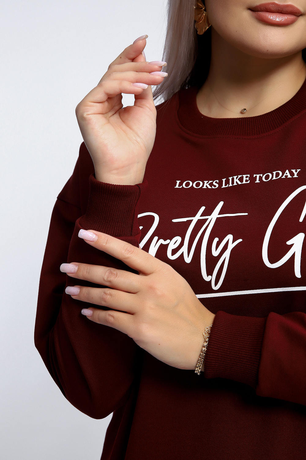 Толстовка свободного кроя оверсайз со спущенной линией плеча прекрасный вариант для прохладной погоды! Мягкое, эластичное кашкорсе в тон ткани использовано для отделки горловины, манжет и пояса. На полочке декоративный принт.