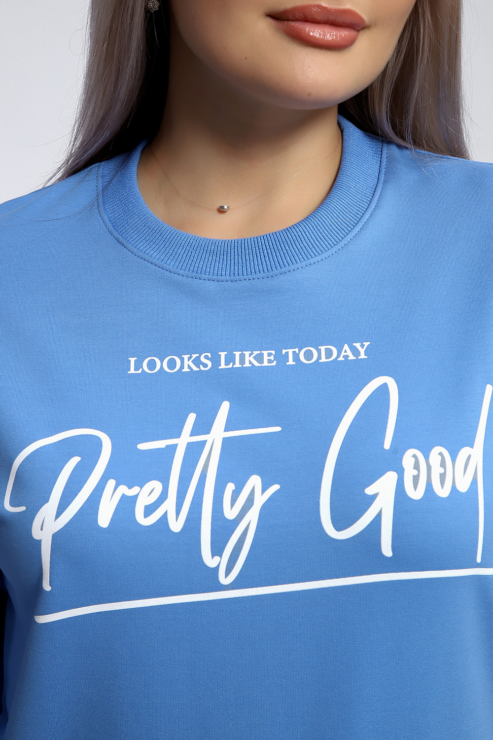 Толстовка свободного кроя оверсайз со спущенной линией плеча прекрасный вариант для прохладной погоды! Мягкое, эластичное кашкорсе в тон ткани использовано для отделки горловины, манжет и пояса. На полочке декоративный принт.