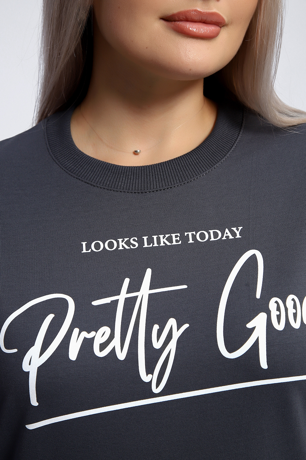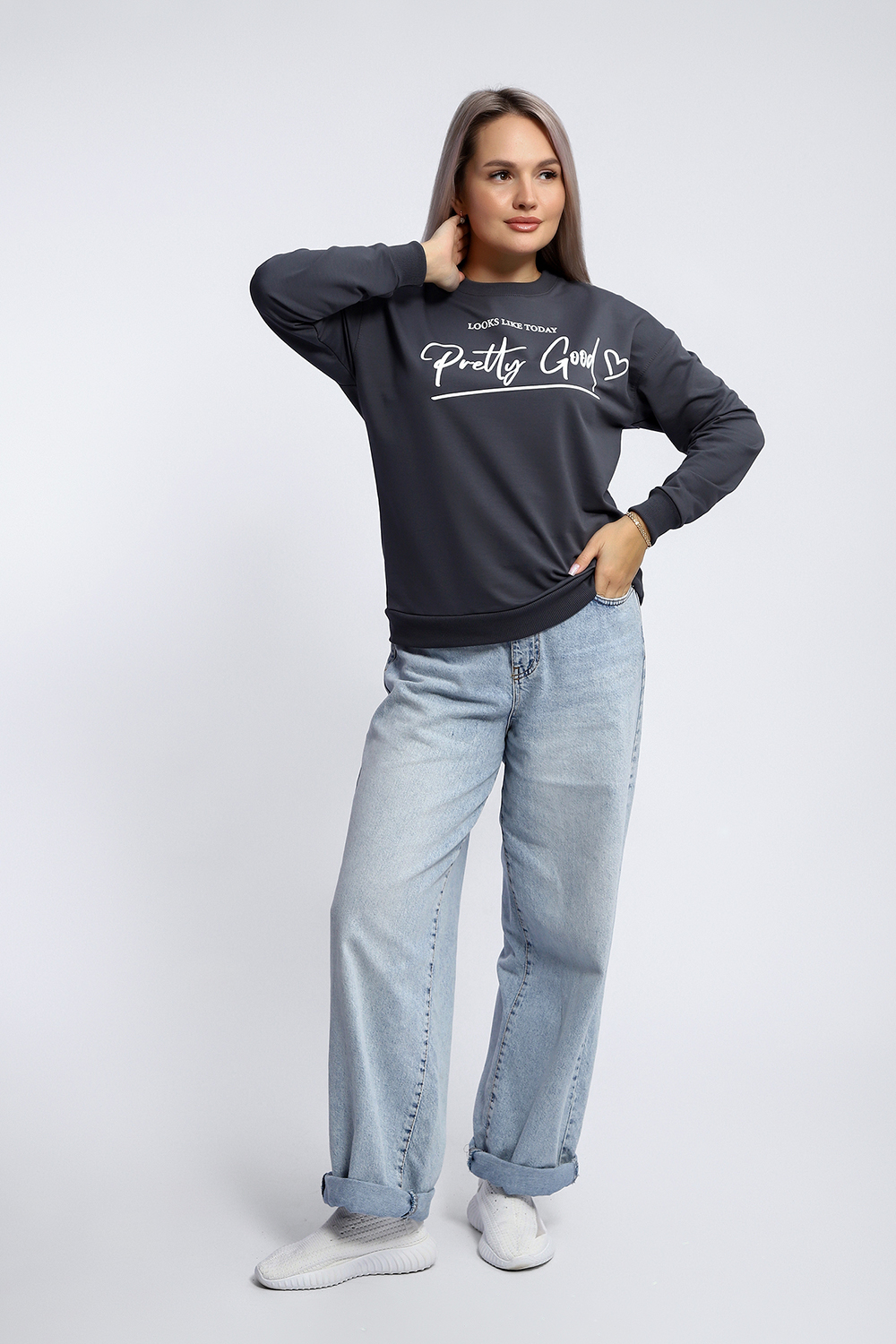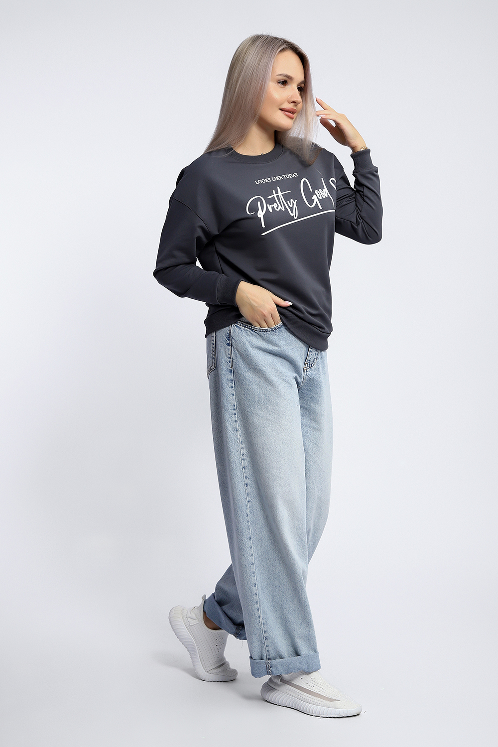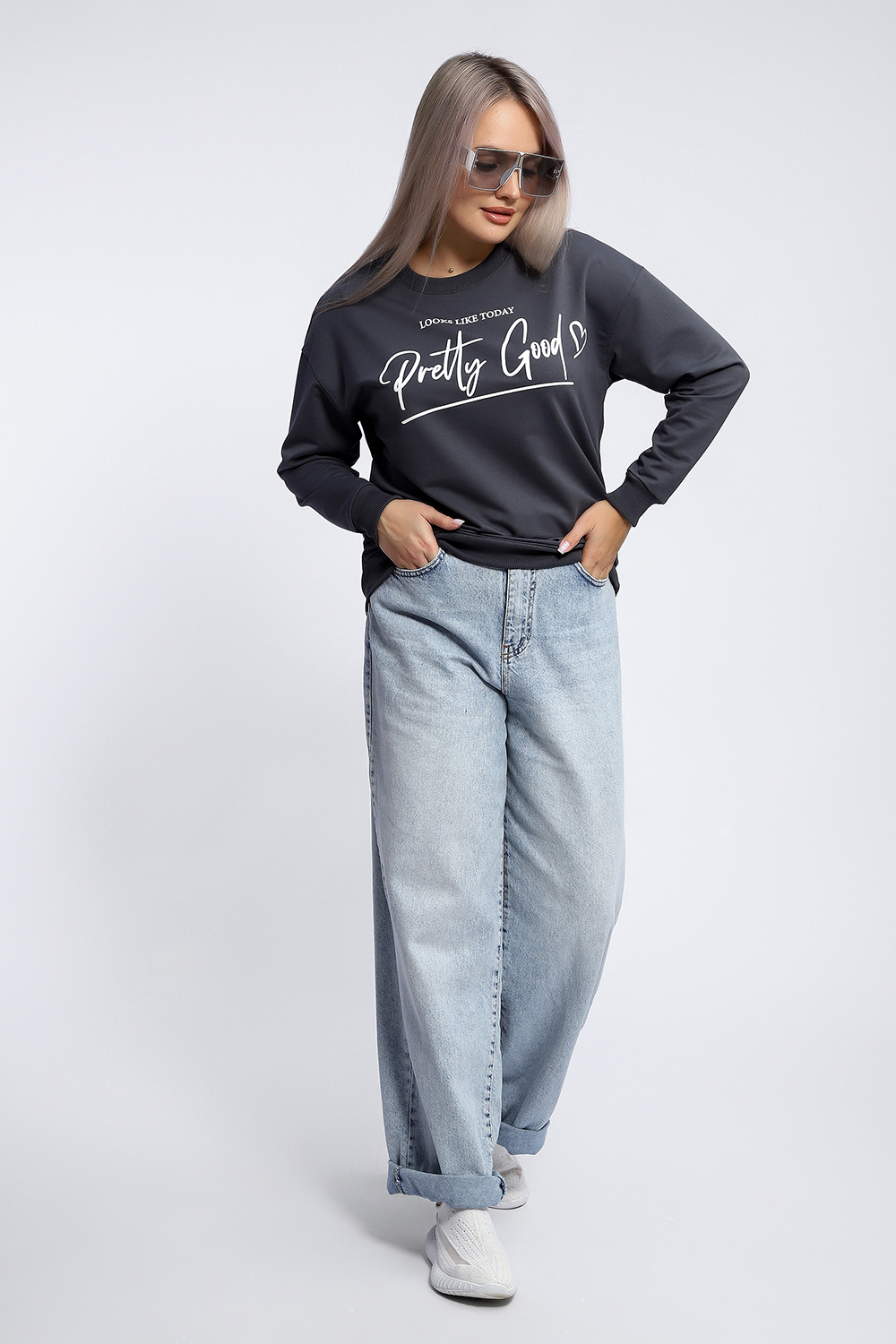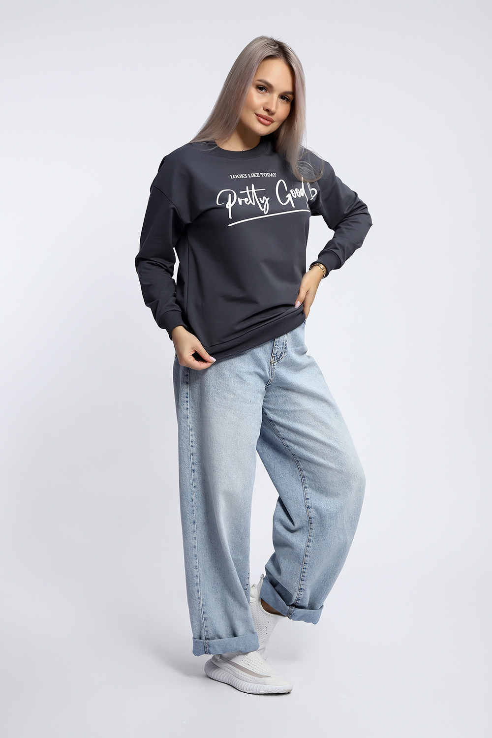 Толстовка свободного кроя оверсайз со спущенной линией плеча прекрасный вариант для прохладной погоды! Мягкое, эластичное кашкорсе в тон ткани использовано для отделки горловины, манжет и пояса. На полочке декоративный принт.