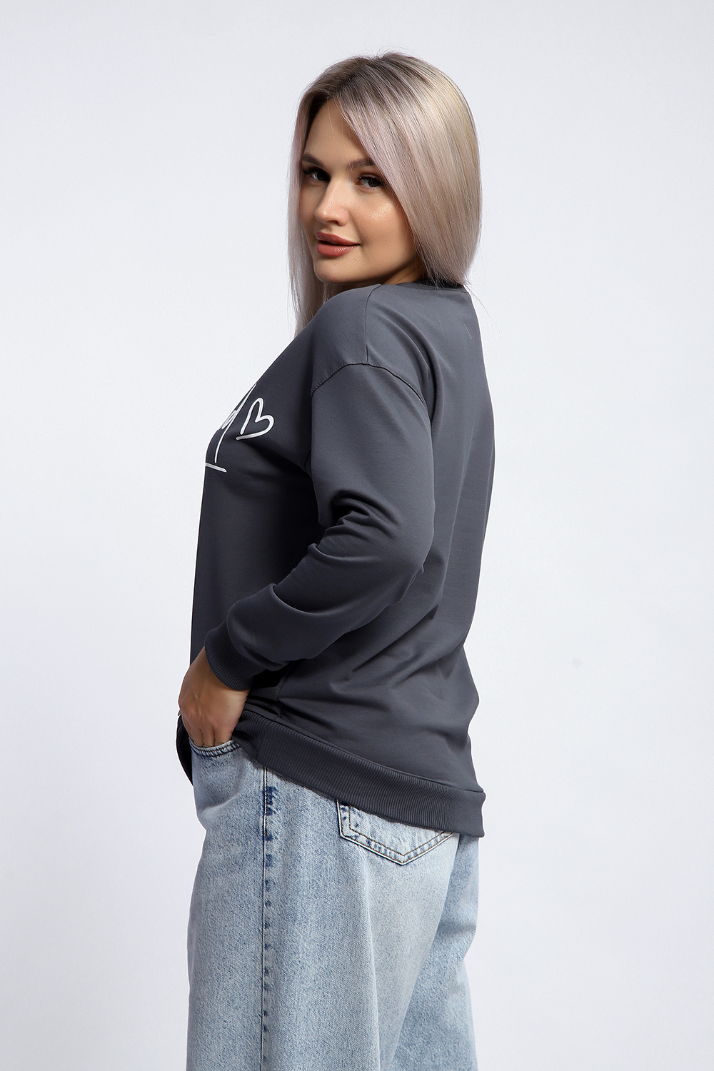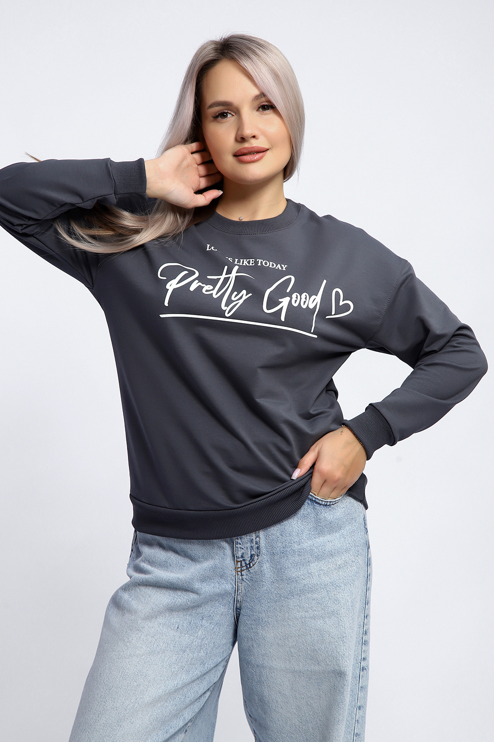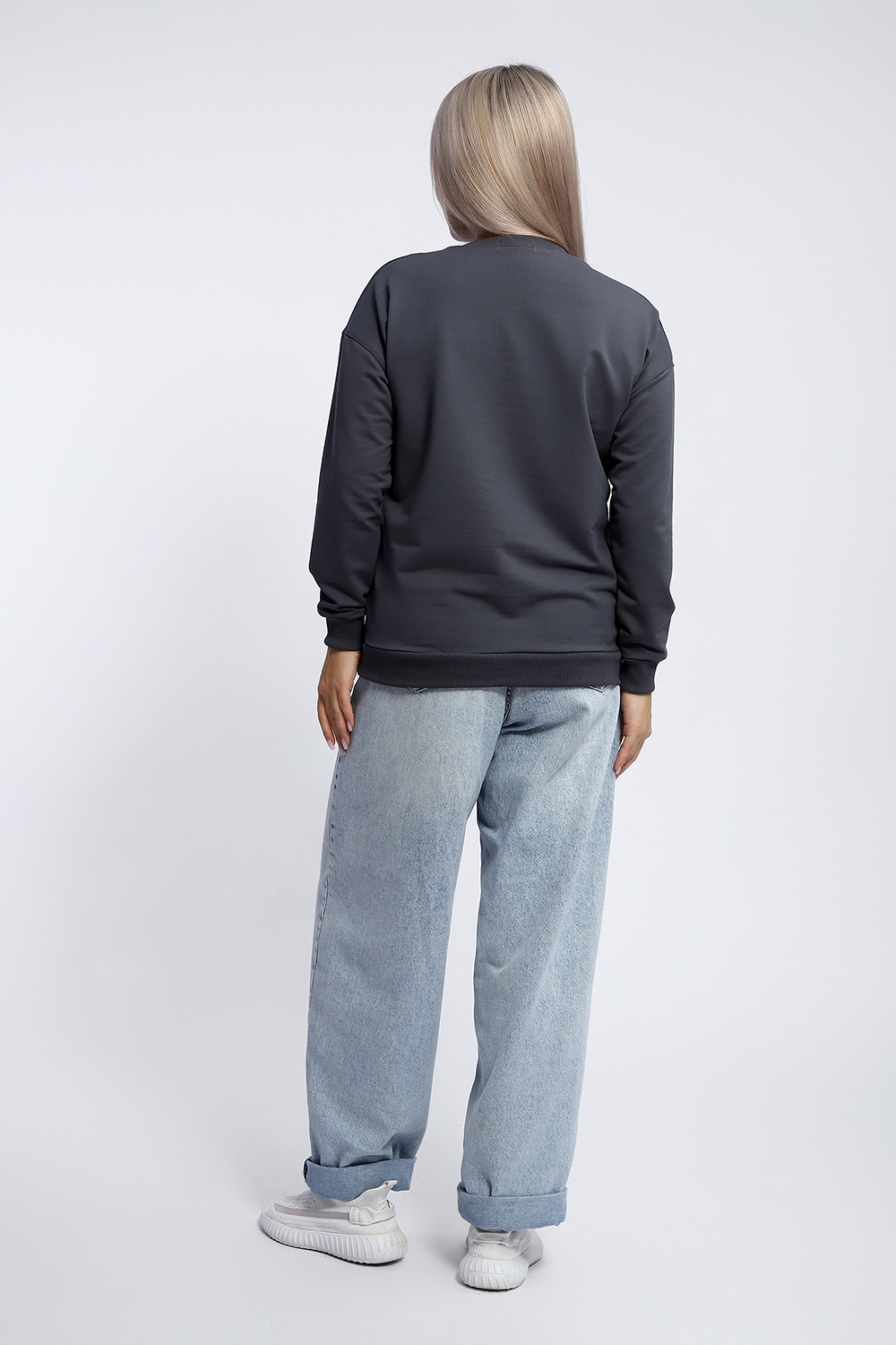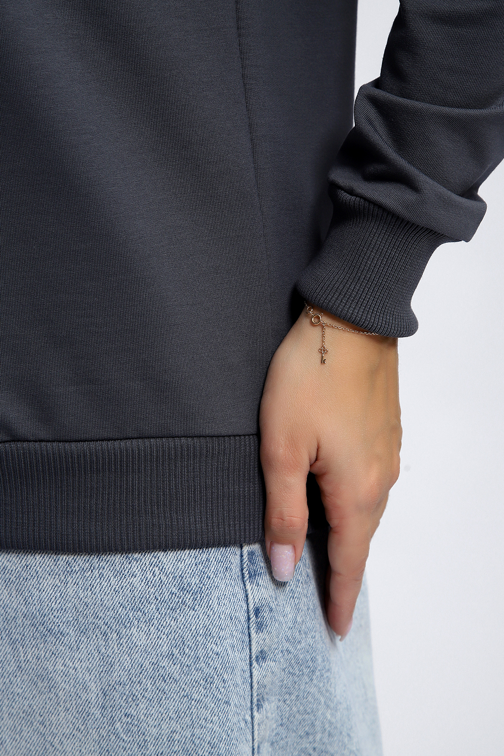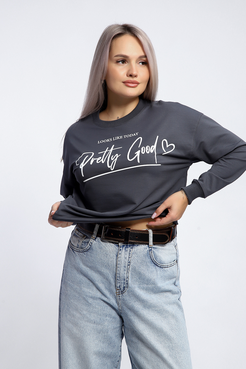 Толстовка свободного кроя оверсайз со спущенной линией плеча прекрасный вариант для прохладной погоды! Мягкое, эластичное кашкорсе в тон ткани использовано для отделки горловины, манжет и пояса. На полочке декоративный принт.