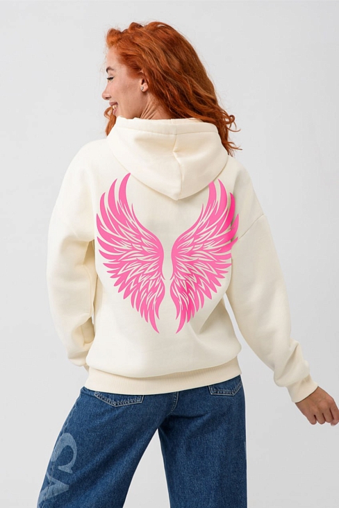 Женская толстовка 8578 оверсайз / молочный+ангел