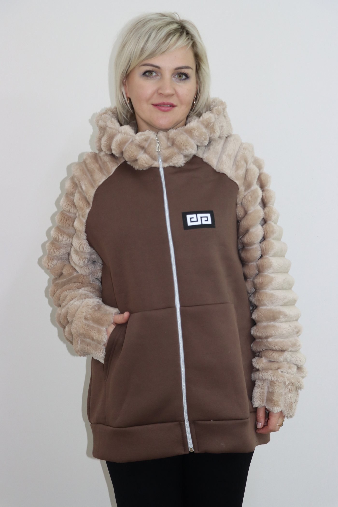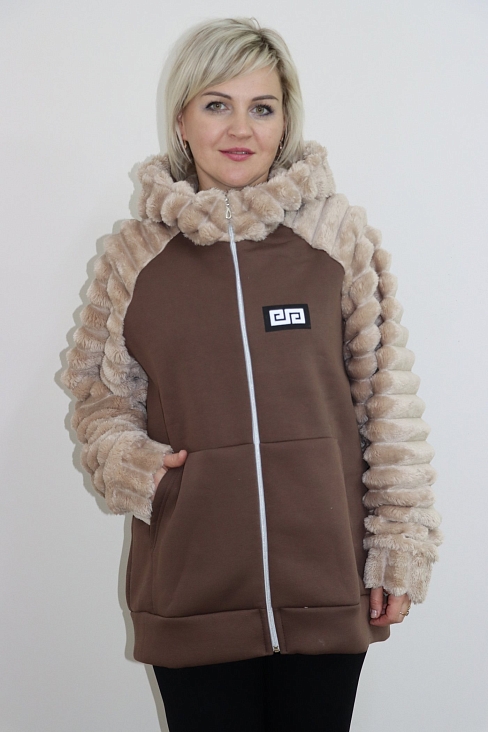 Женская толстовка Т1340 из комбинированной ткани - футера и велсофта. Теплая женская толстовка на молнии согреет Вас холодными днями, идеальна для прогулок и занятий спортом.