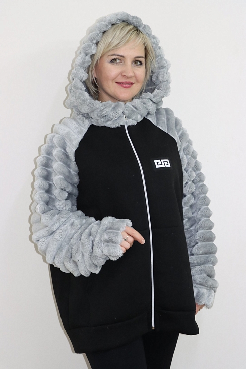 Женская толстовка Т1340 из комбинированной ткани - футера и велсофта. Теплая женская толстовка на молнии согреет Вас холодными днями, идеальна для прогулок и занятий спортом.